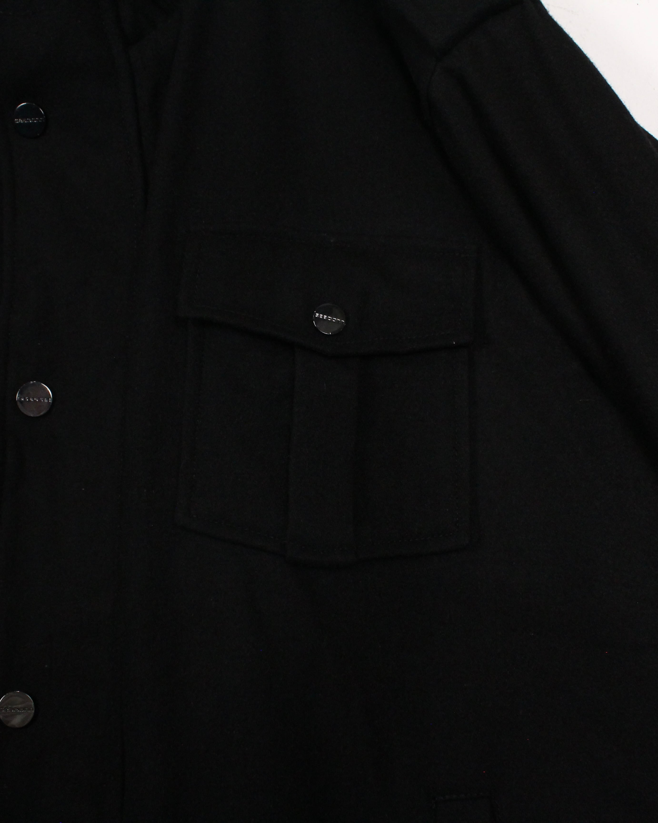 モノトーンの中にストリートの重厚感を溶け込ませた“Sean John”のブラックウールジャケット。