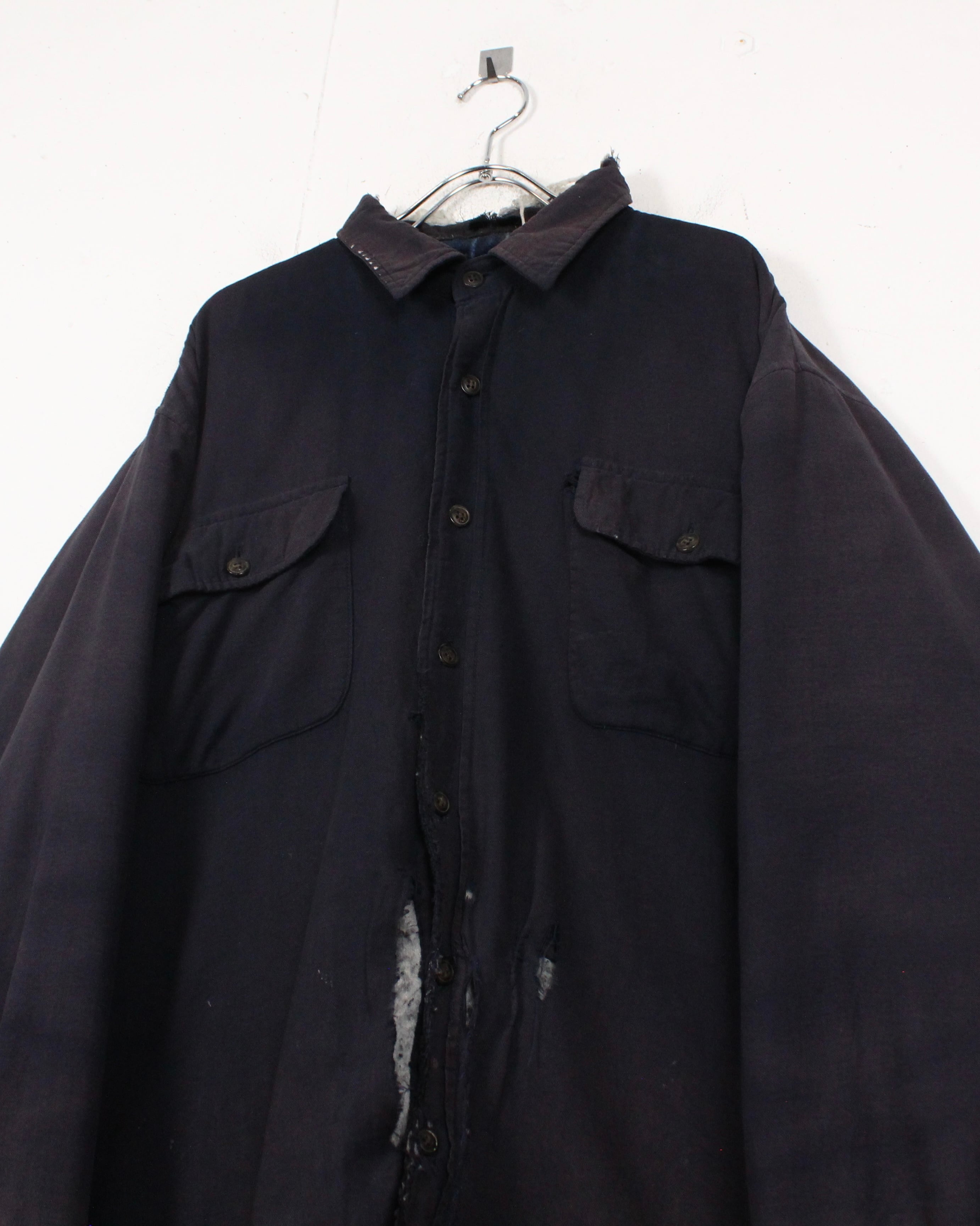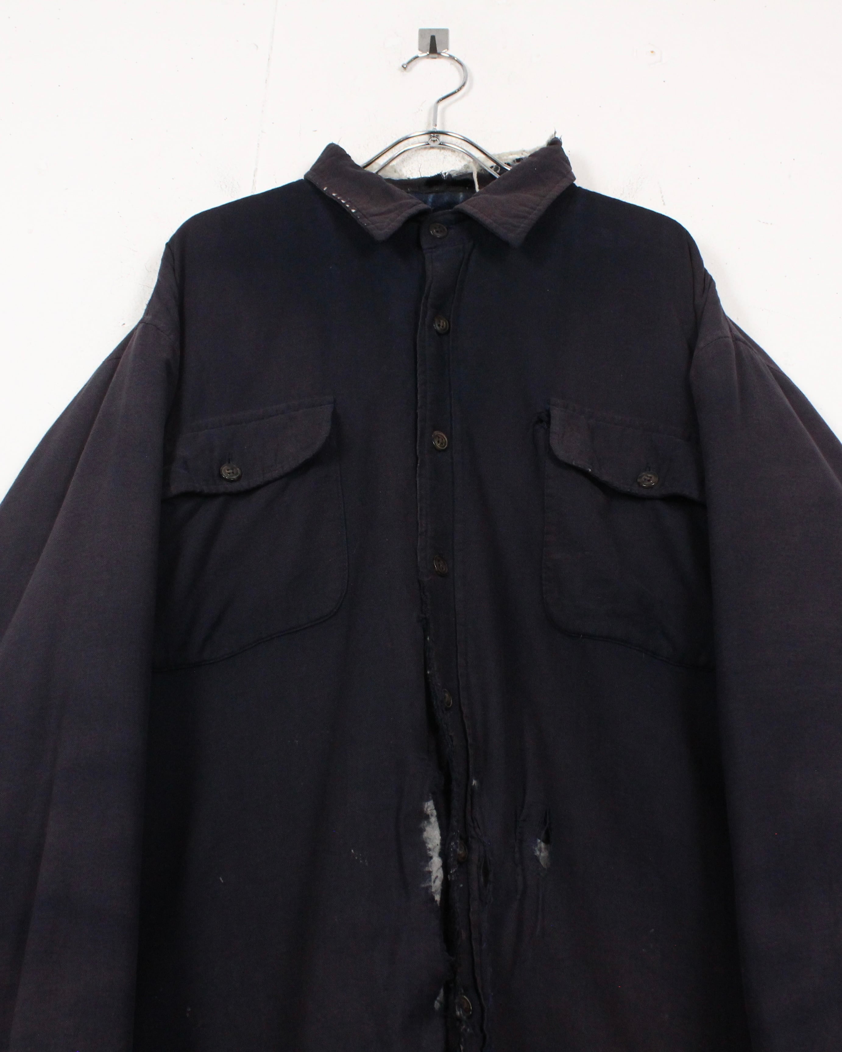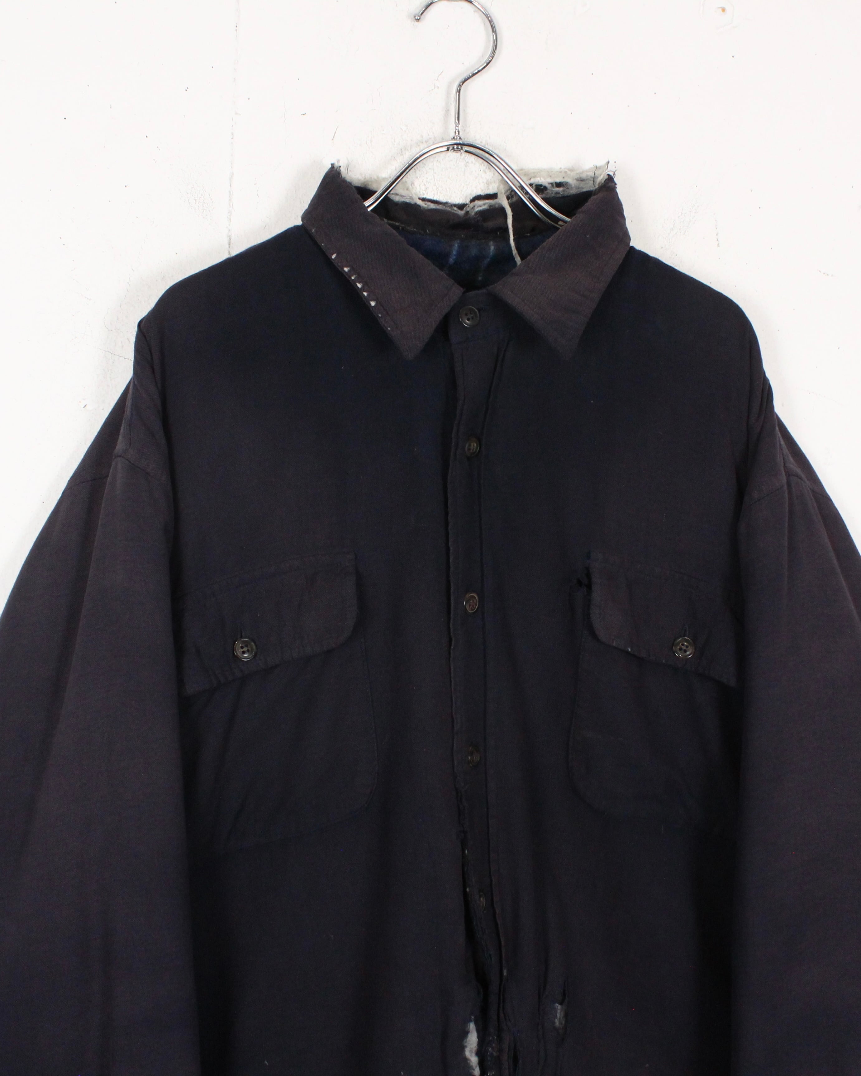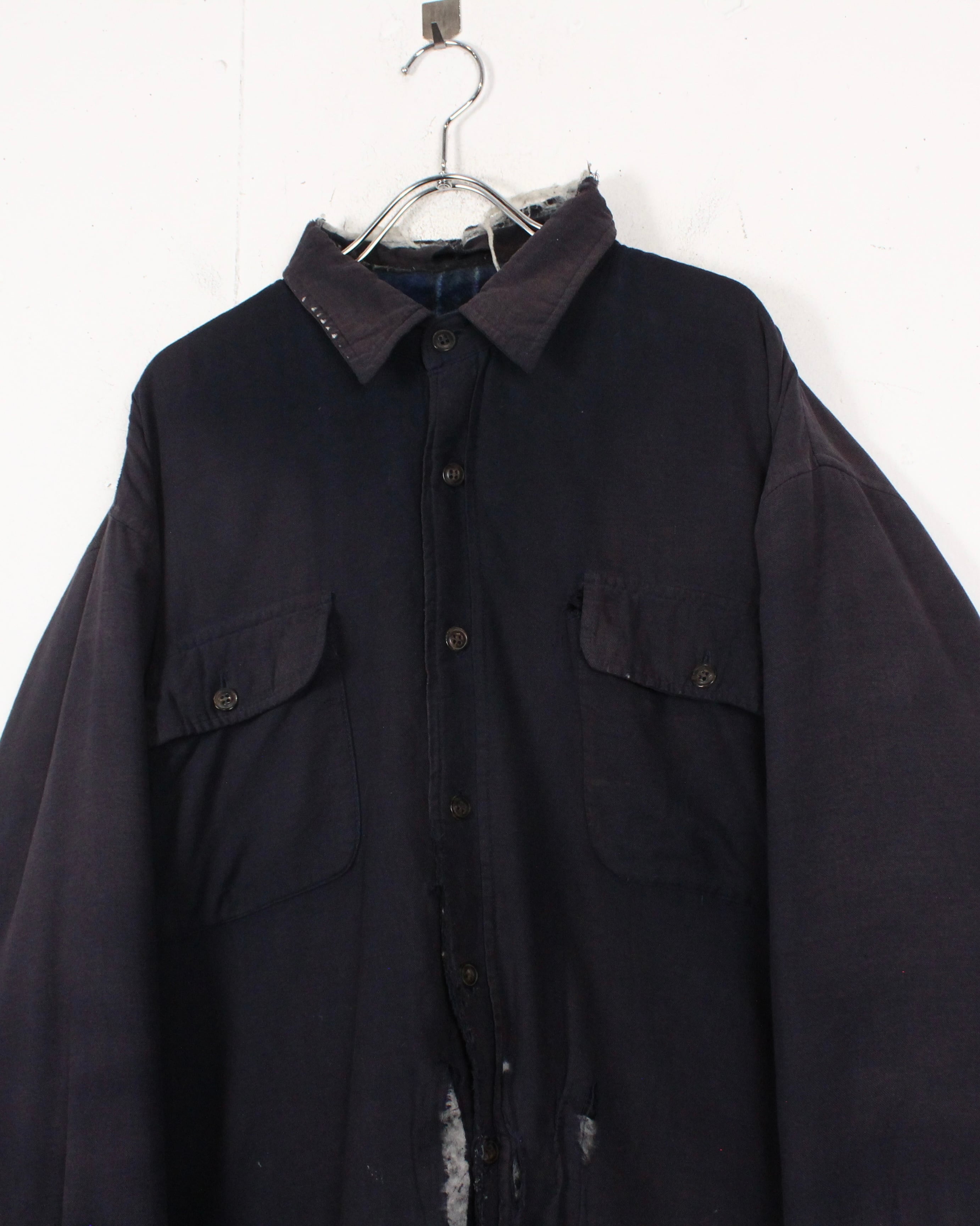 全体に広がる退色は長年の着用を重ねて生まれたリアルな経年変化で、袖に走るチェック生地のリペア跡がさらに温度感とクラフト感を引き立てています。