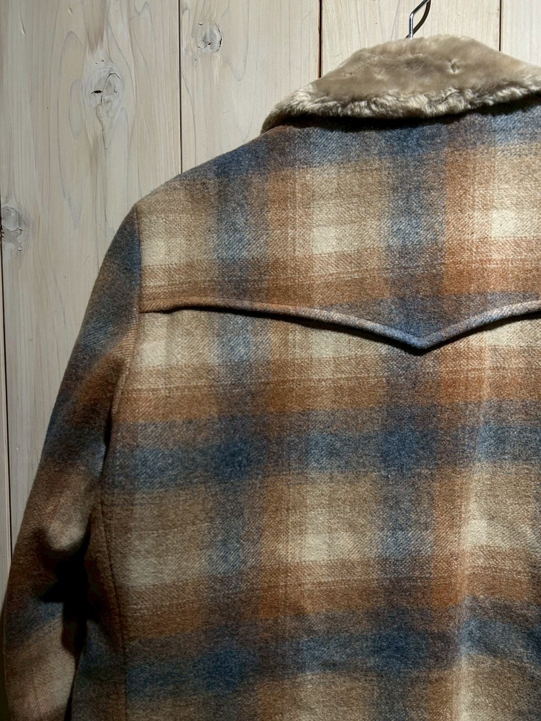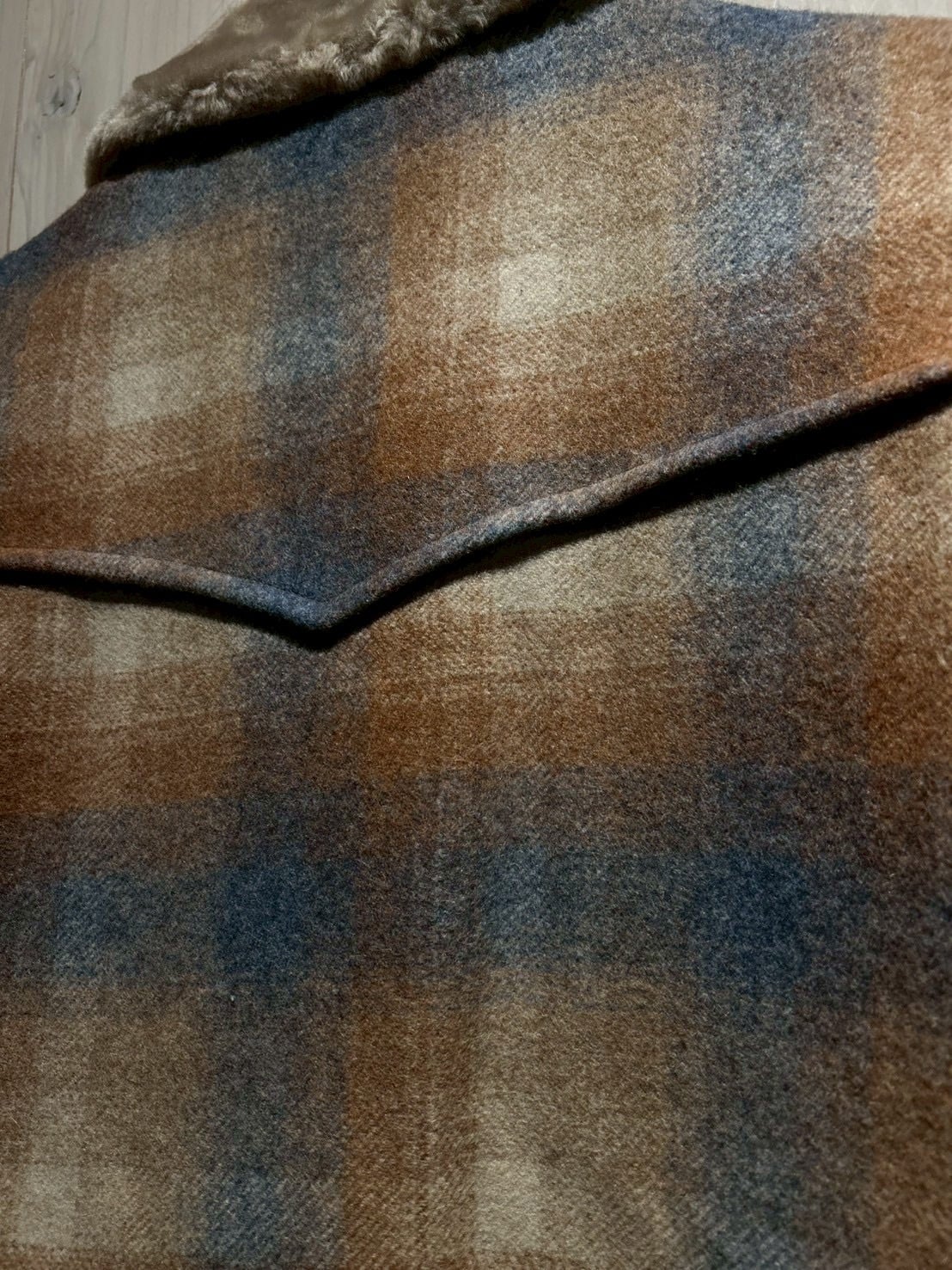 ボディにはペンドルトン特有のウール生地を使用。ウエスタンヨークの切り替えに、ブルー × キャメル × クリームが溶け合うように配置されたチェックは淡いグラデーションで、目を奪われる美しさです。