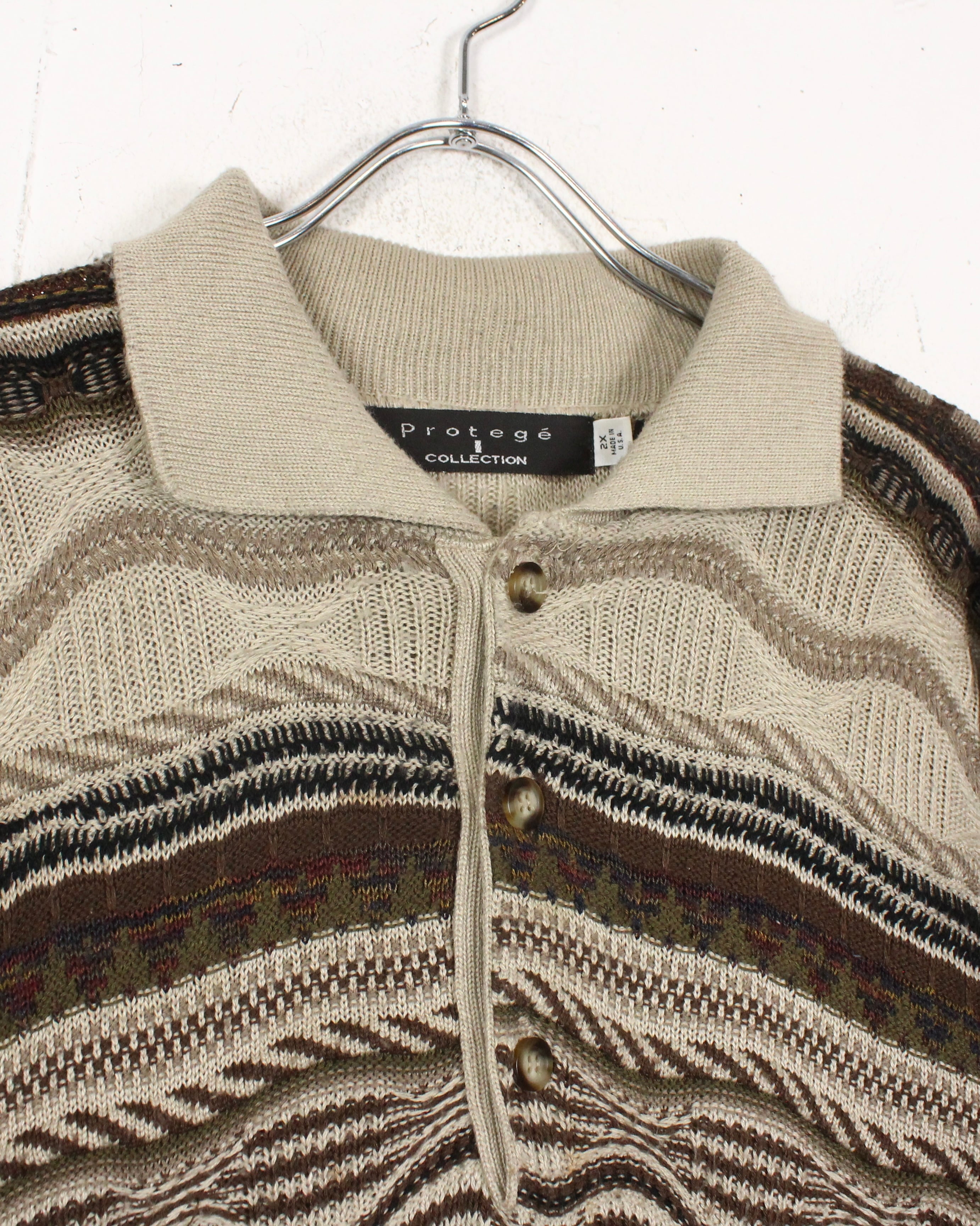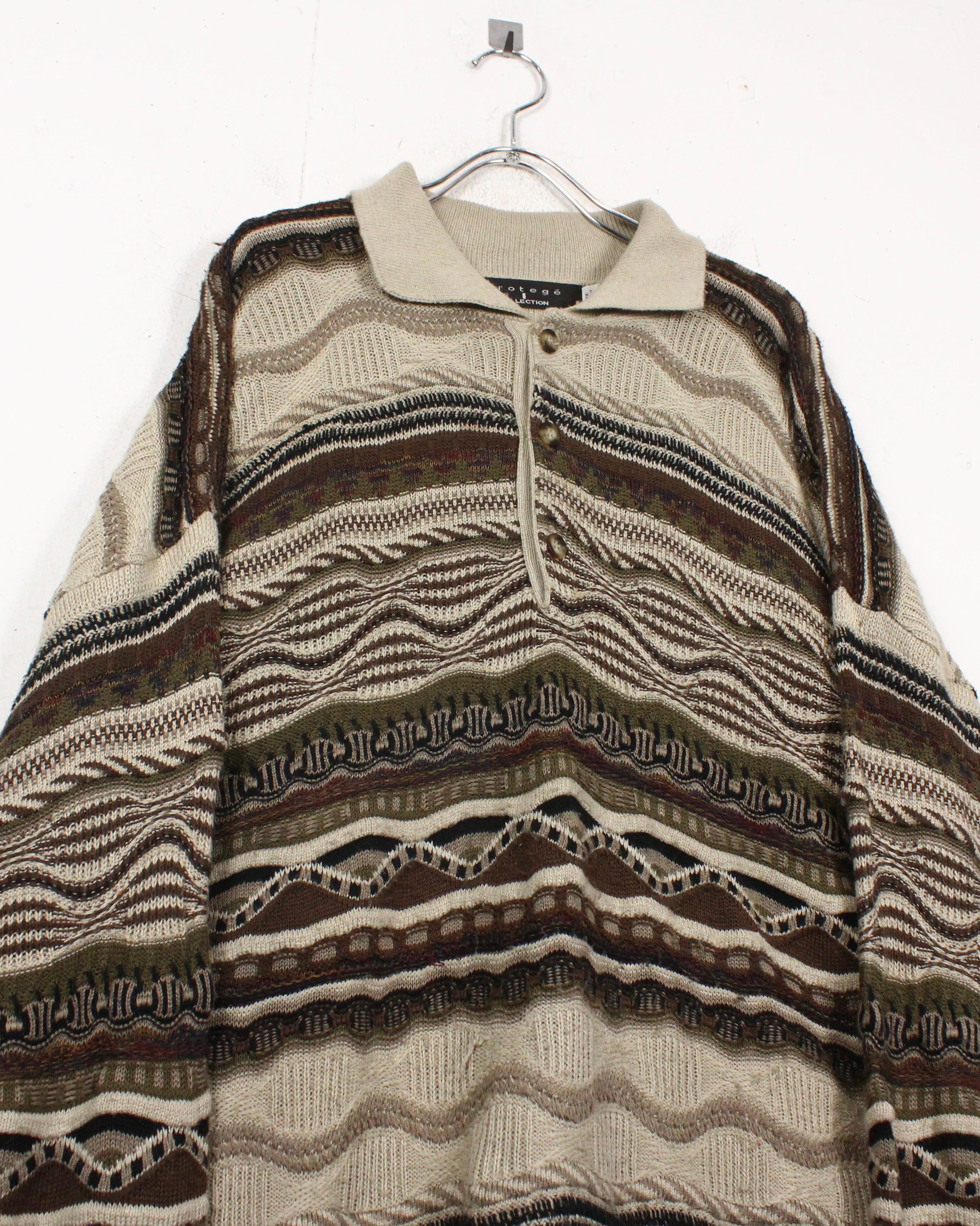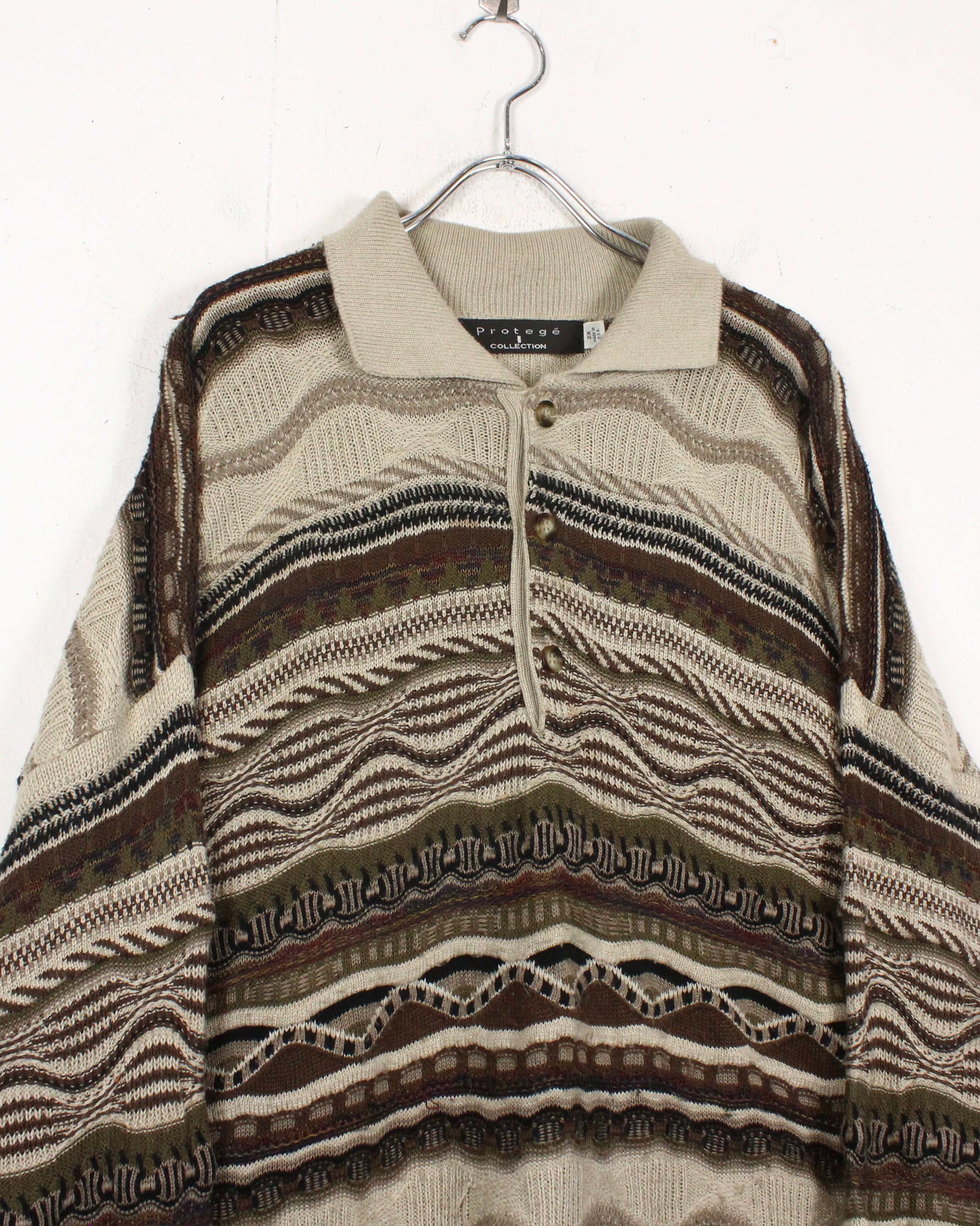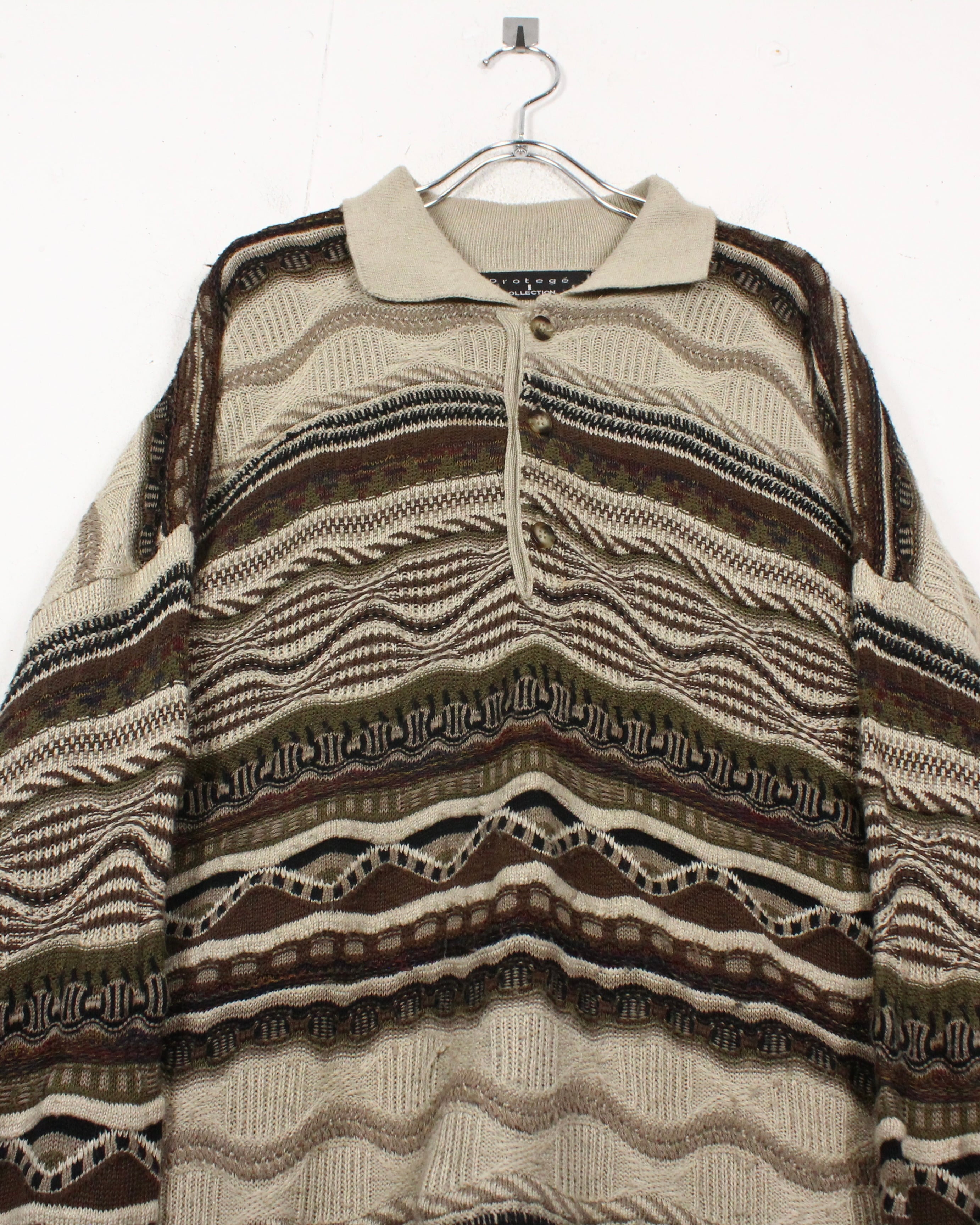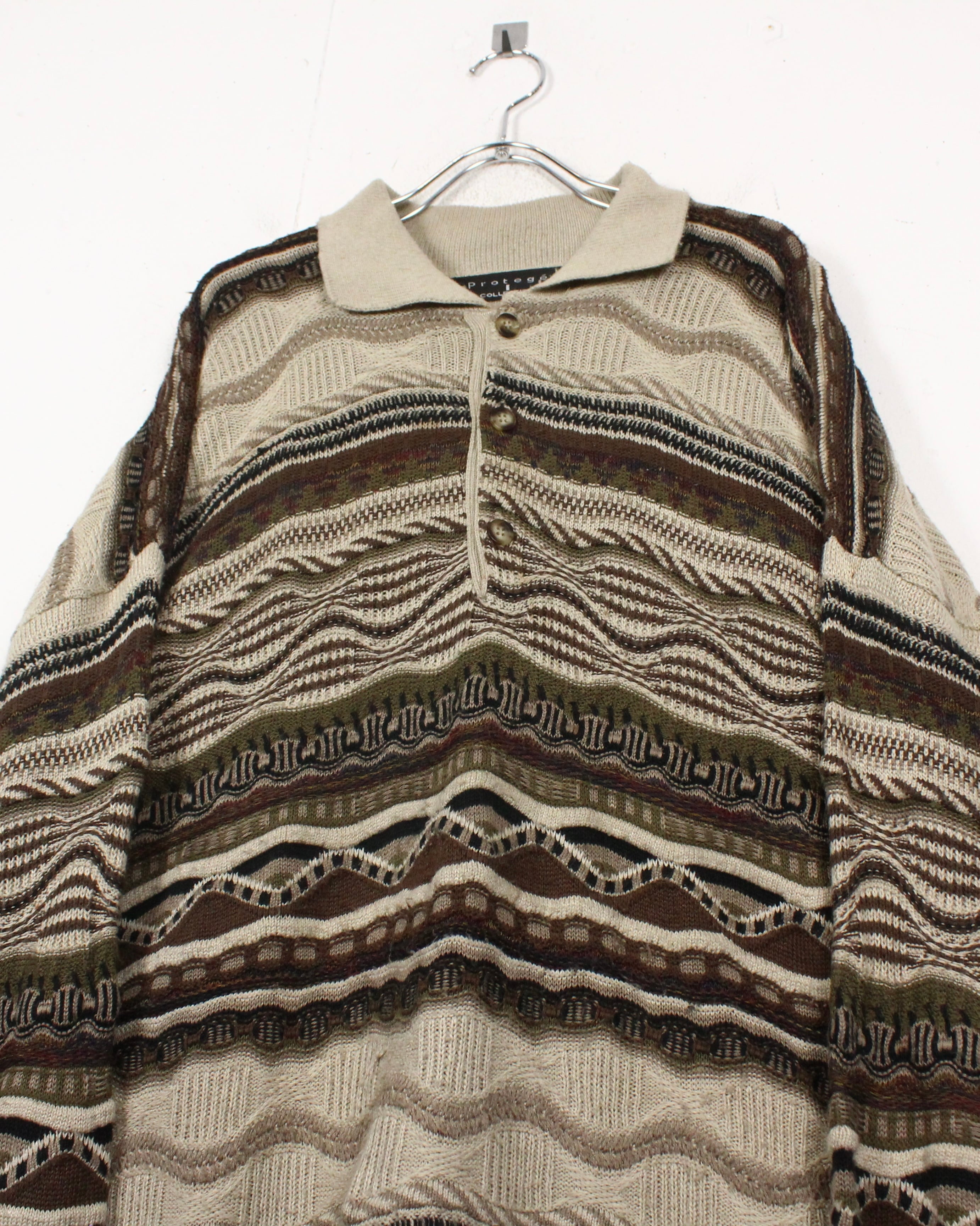 なかでもポロ型の3Dニットは市場でも非常に稀少。ボリュームある立体編みのニットでポロ襟を採用する個体は数が少なく、このジャンルを集めている方でも滅多に出会えないはず。