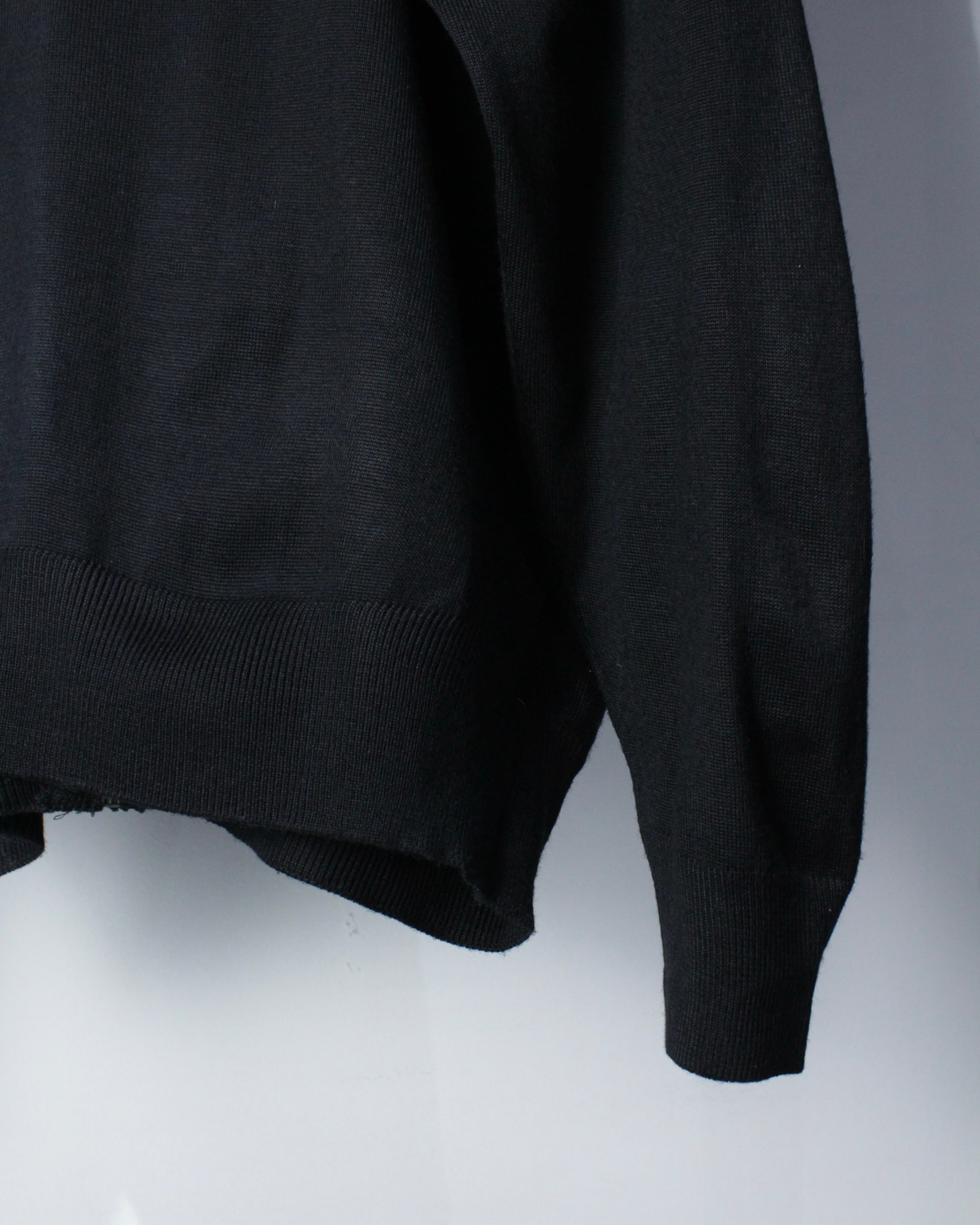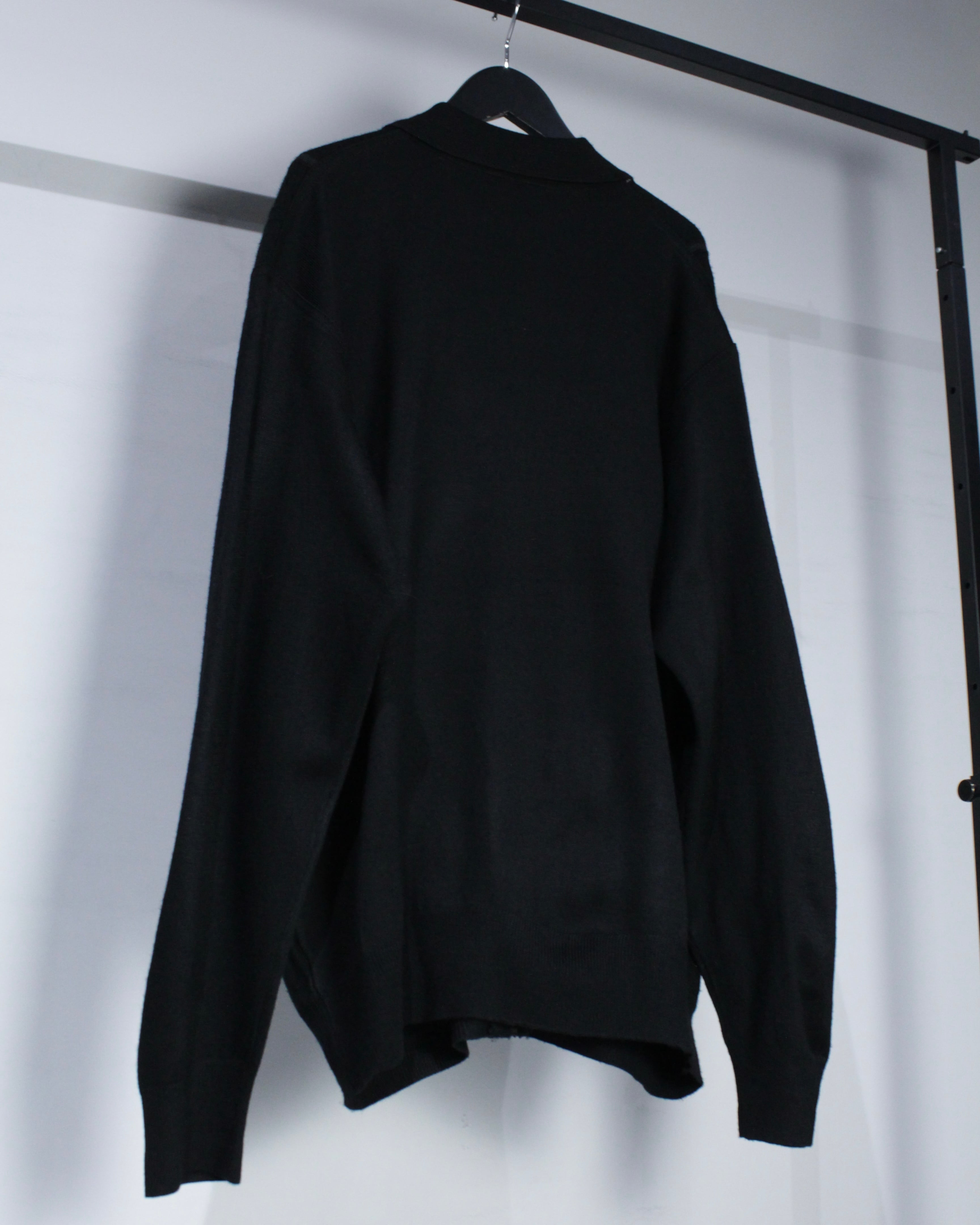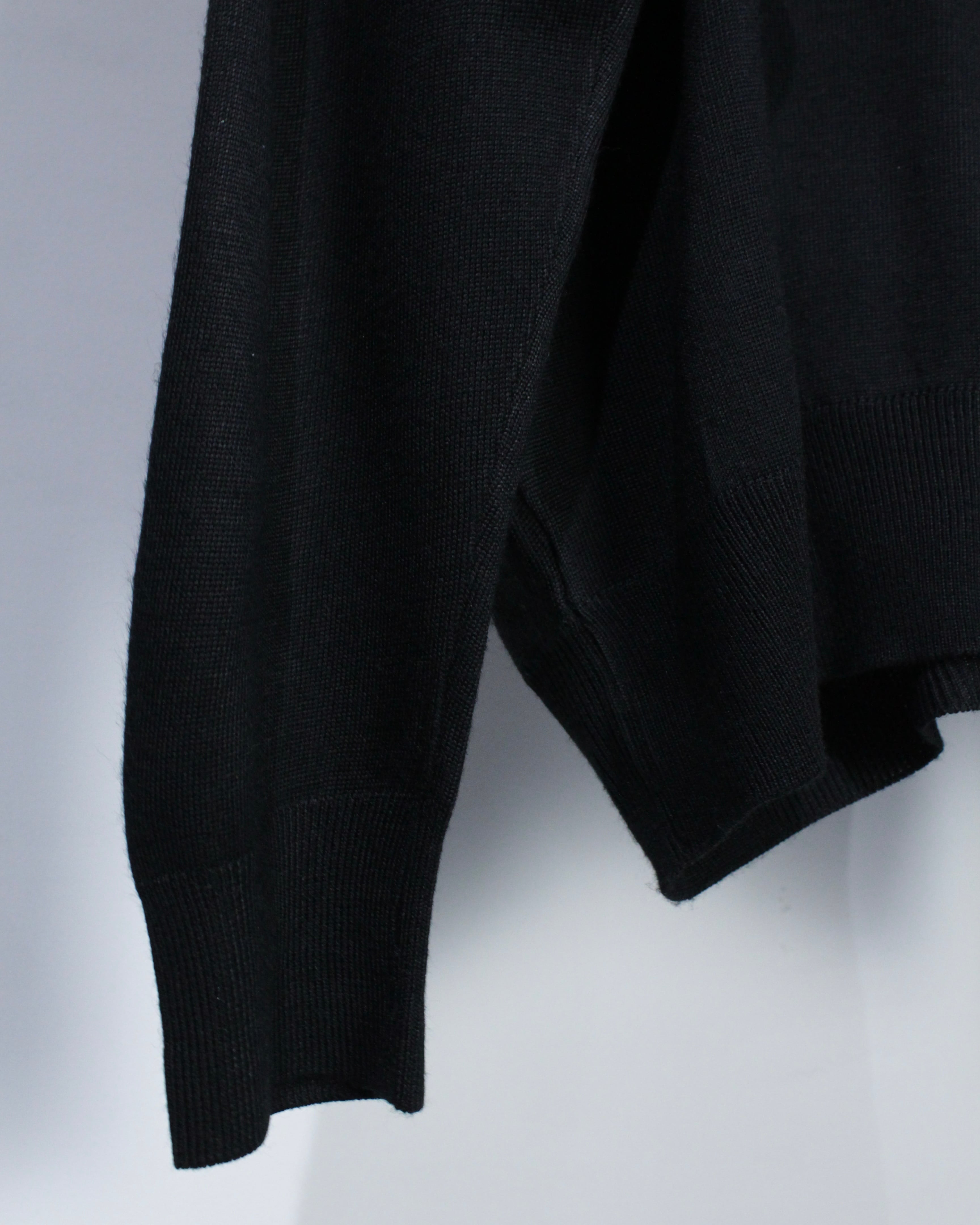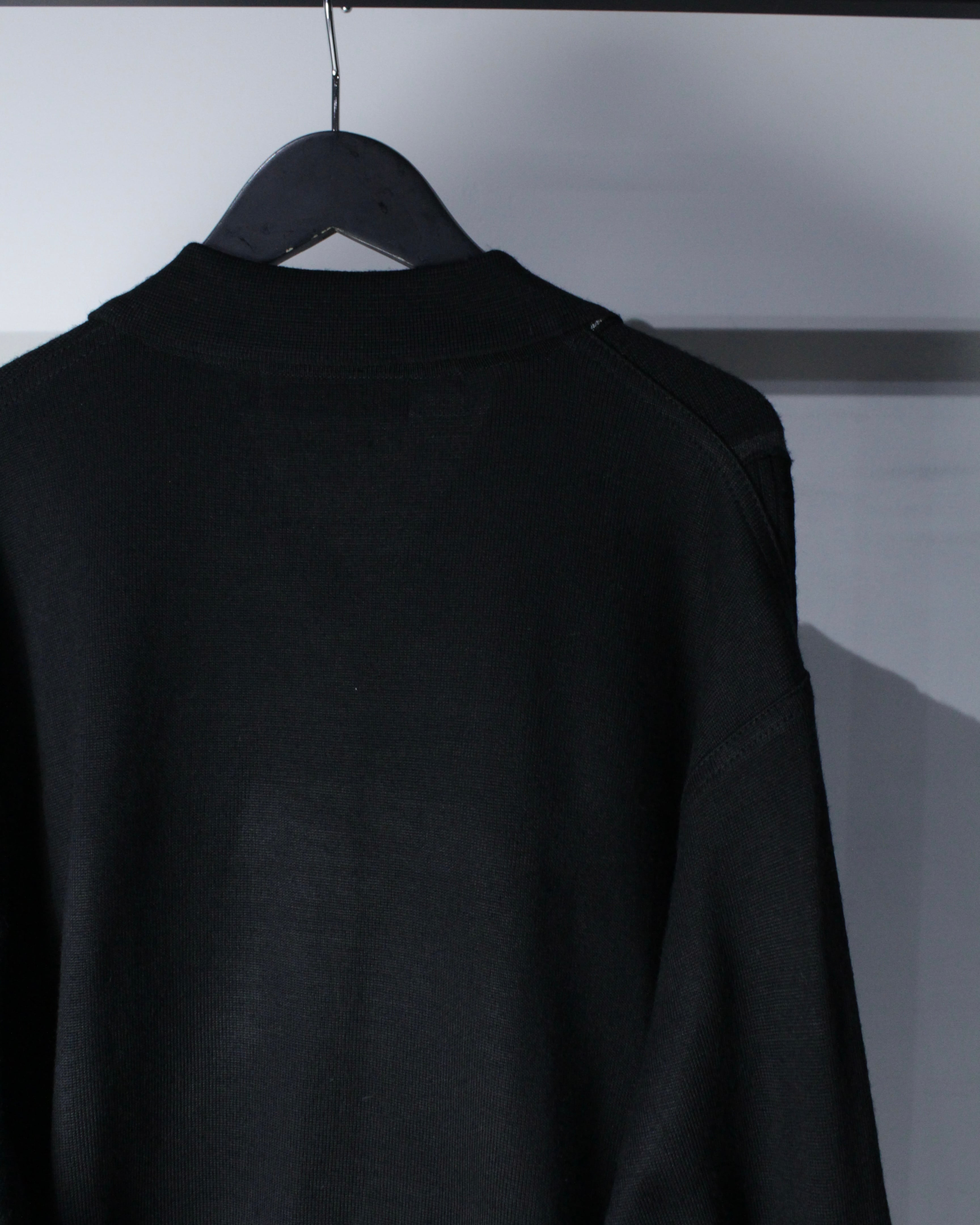 ミニマルな面構えながら、編み地の切り替えとラインのコントラストが立体感を生み、モードなムードを纏った1着に仕上がっています。