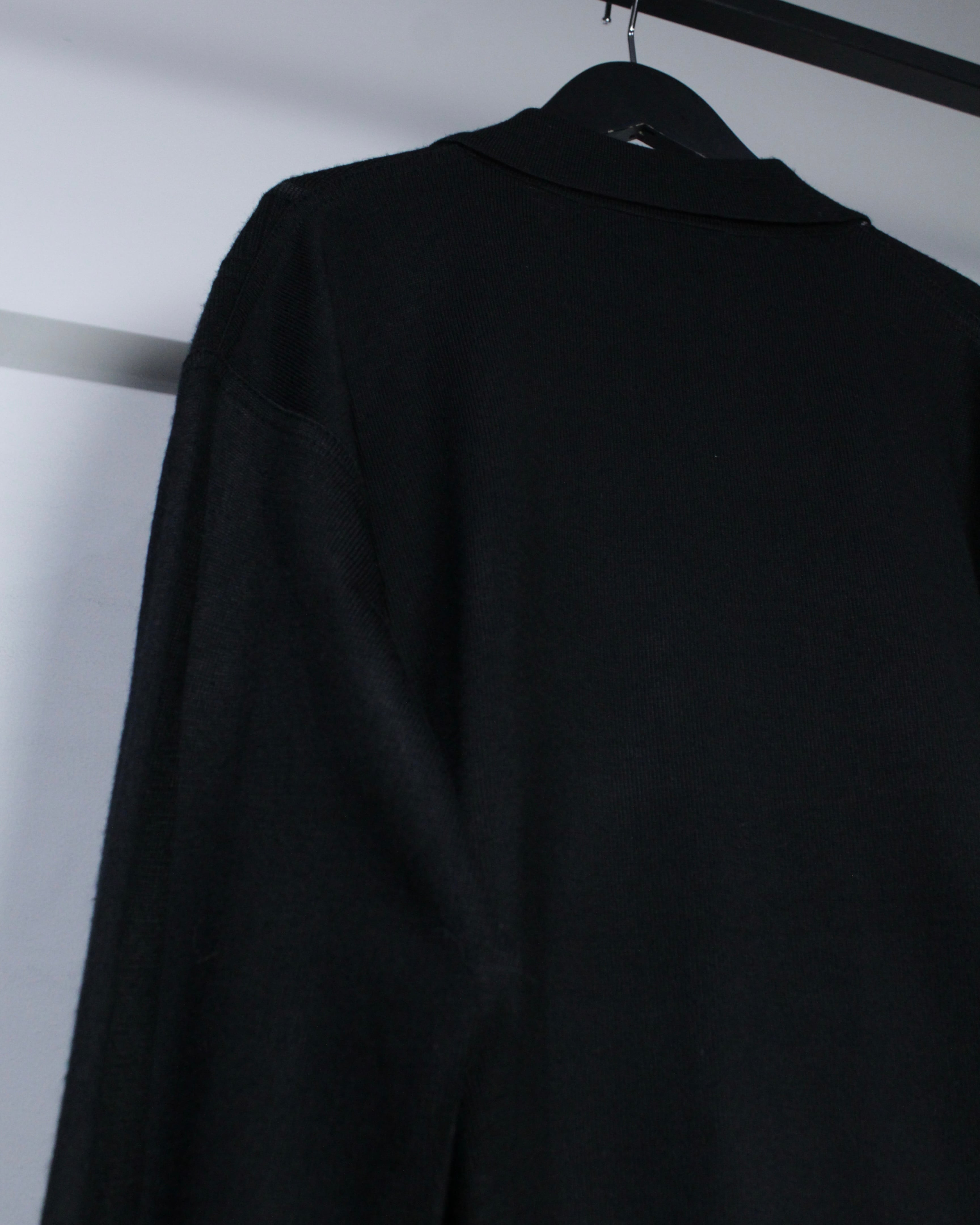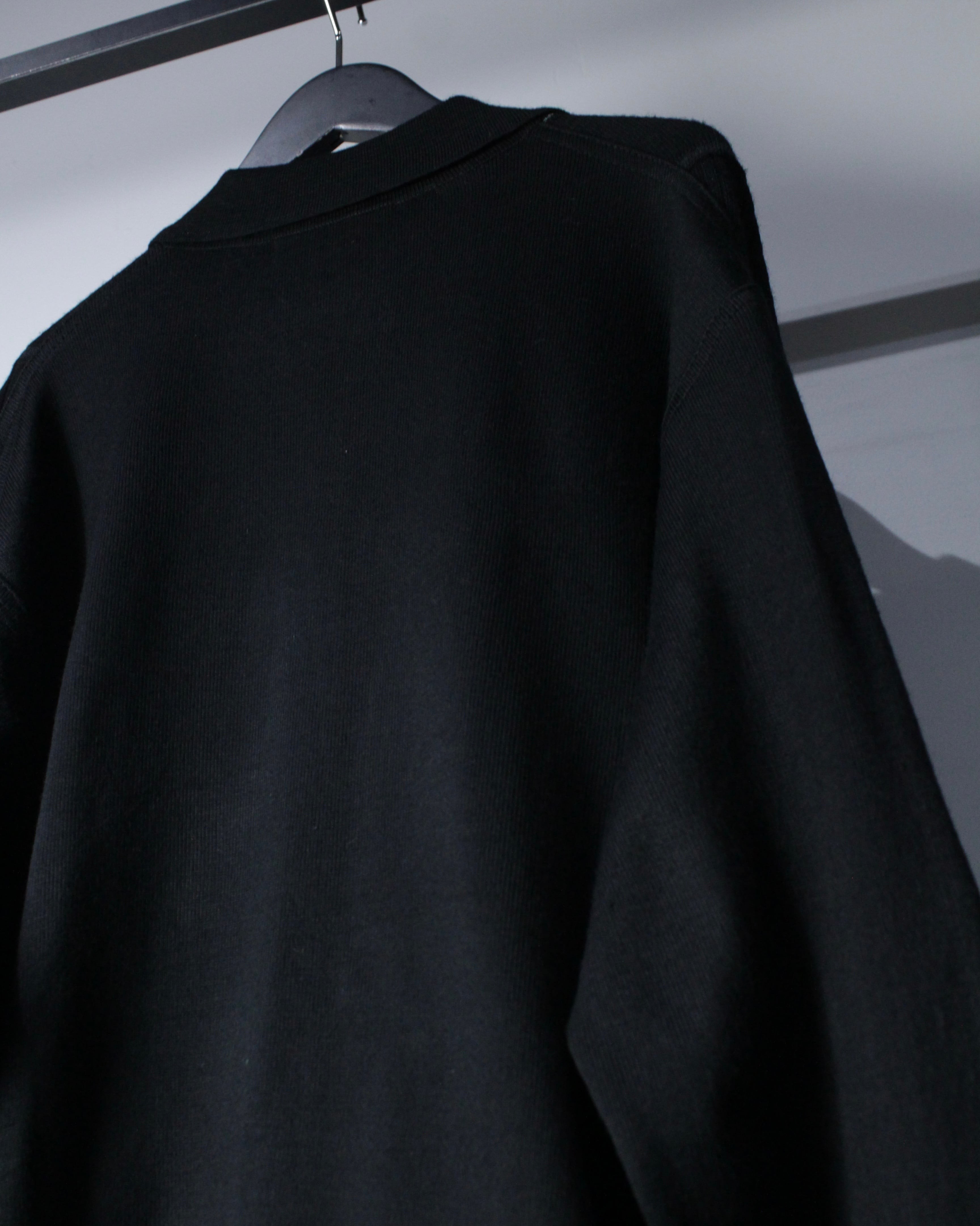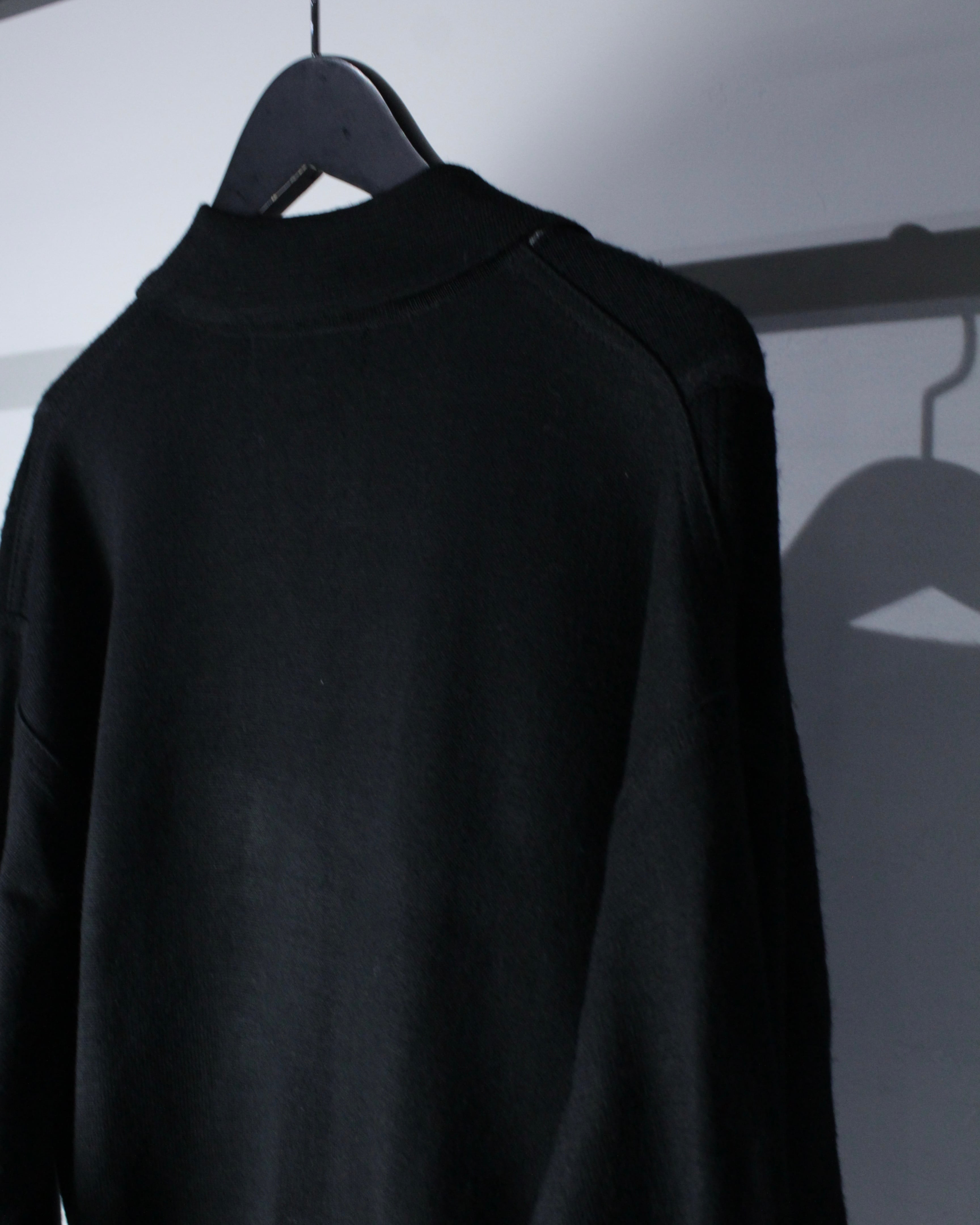 アウターのインナー使いにも最適な厚みで、ブルゾン、レザー、コートなど幅広いスタイリングに順応。シンプルながらしっかり活躍してくれるニットジャケットの逸品です。