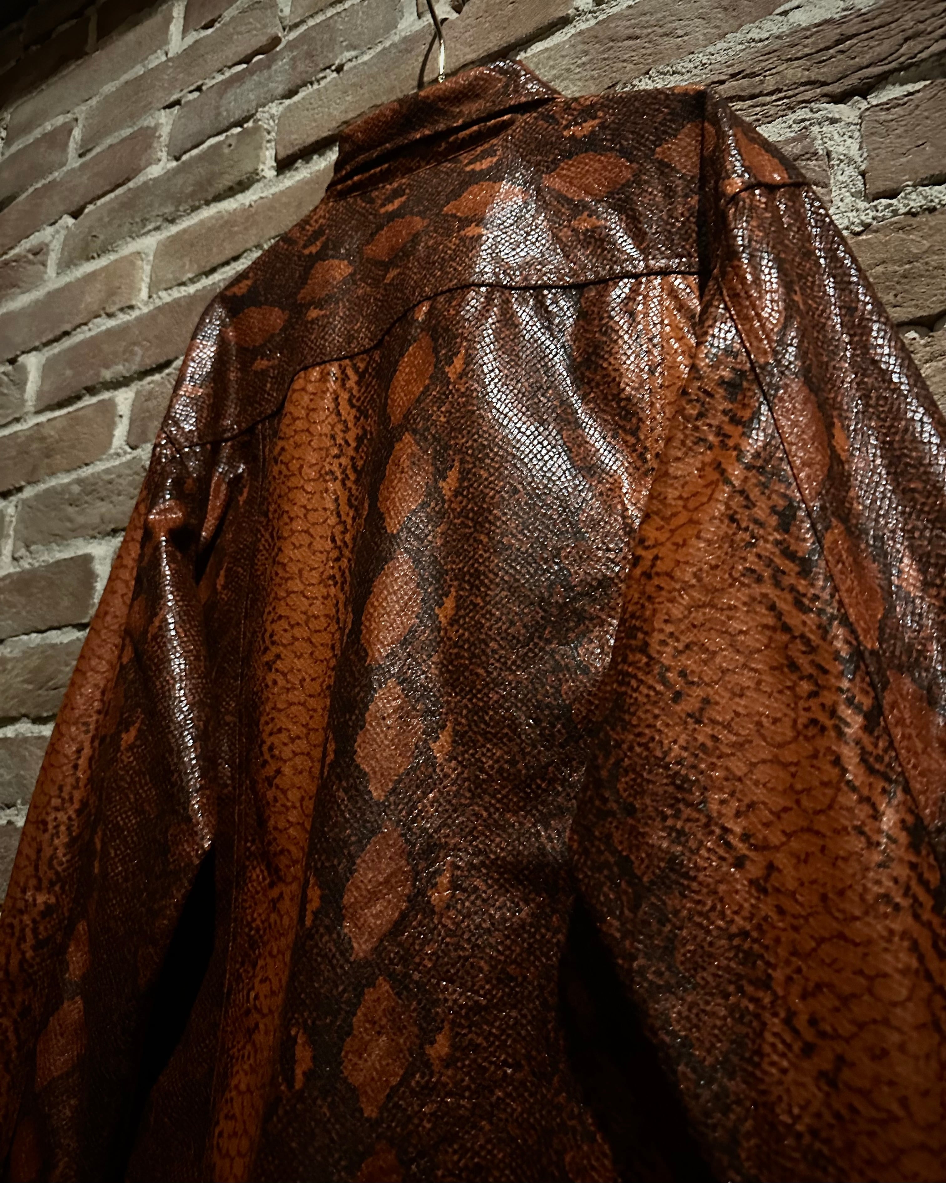 パイソン柄 × トラッカーという異なる文脈が美しく噛み合った、デザイン・ファッション性・実用性を兼ね備えた1着です。