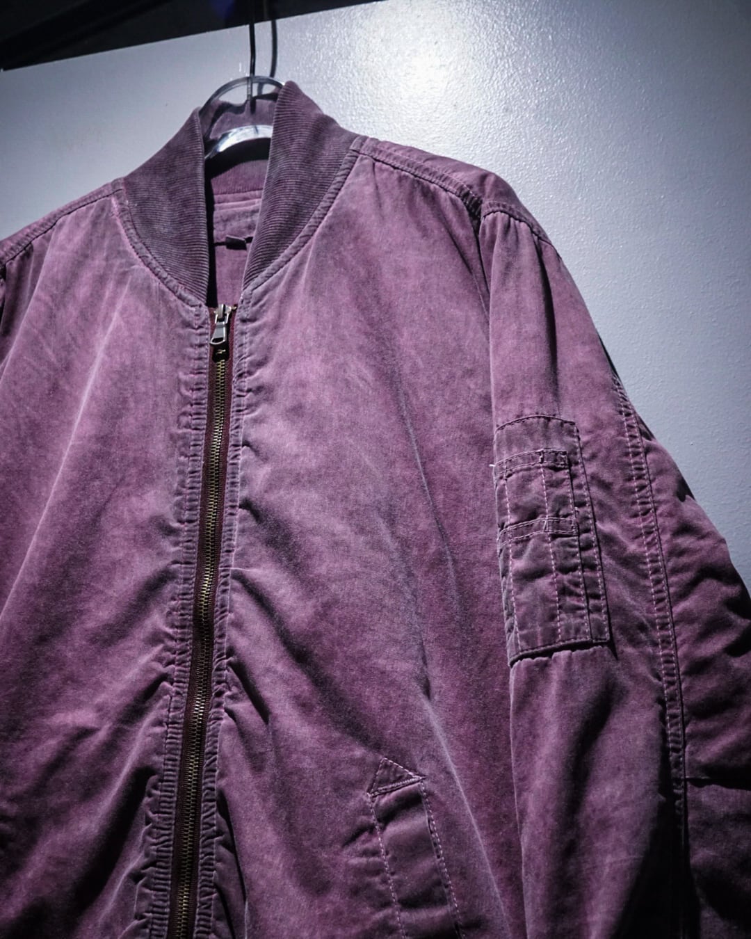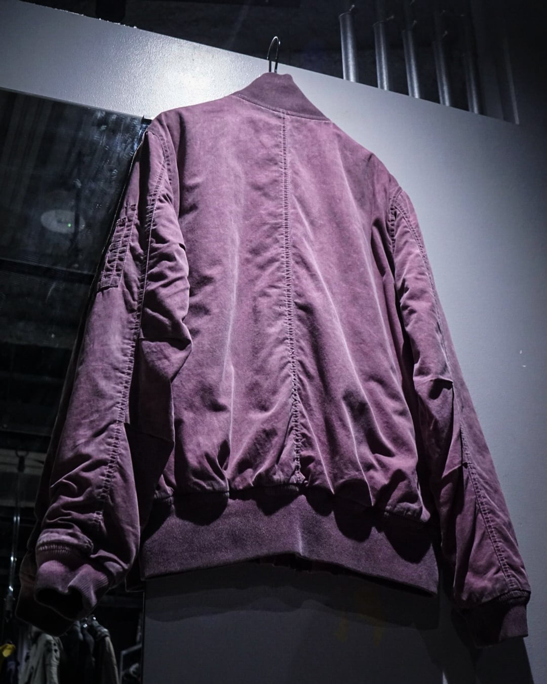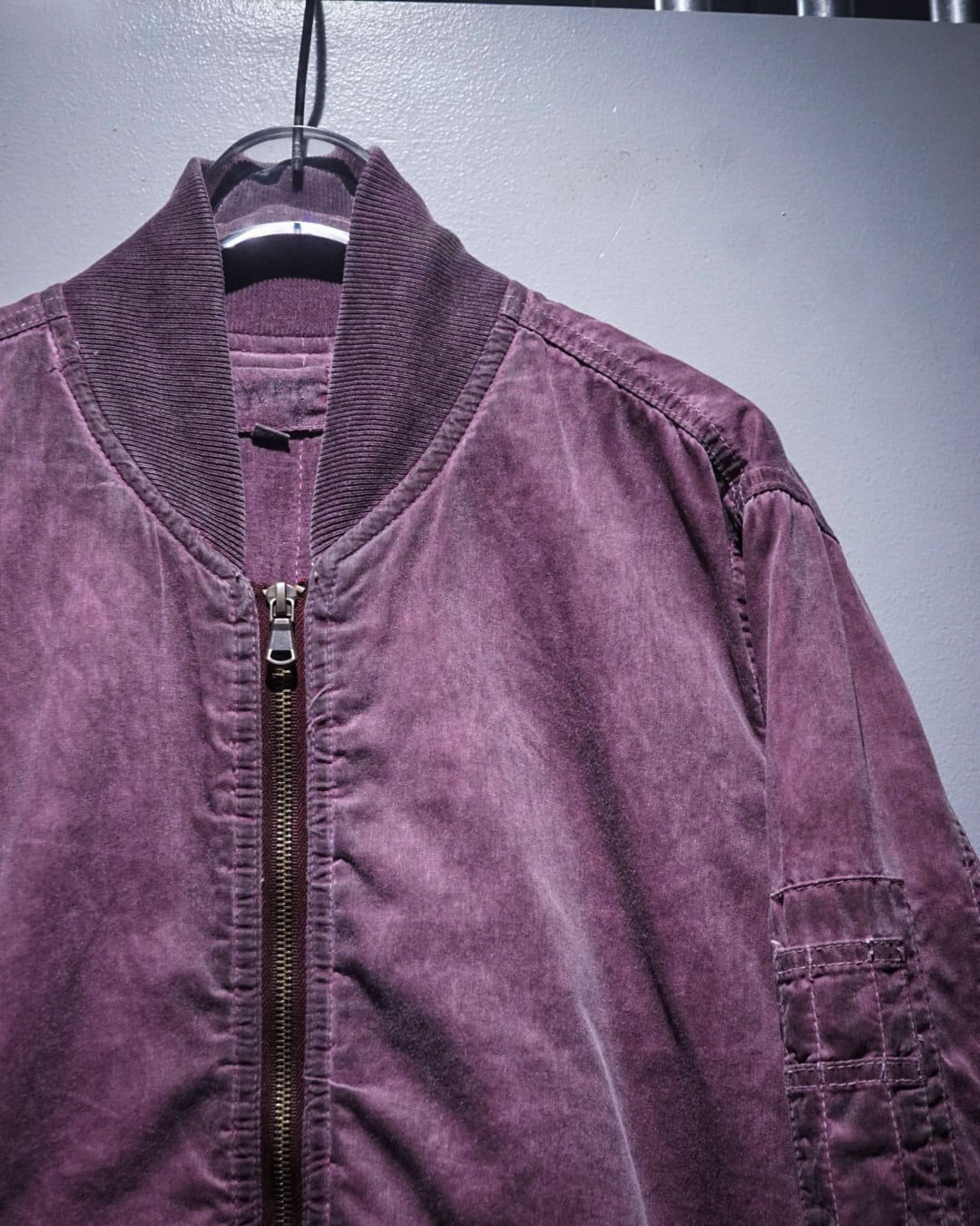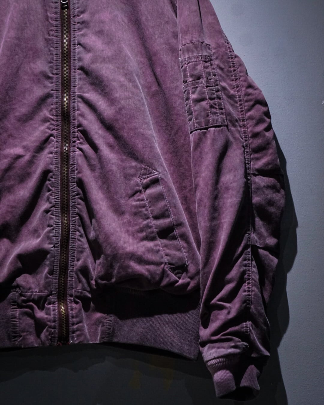 コットンボディ特有のくったりとした質感と、長年の着用によって生まれた絶妙なフェードが魅力のコットンMA-1ジャケット。