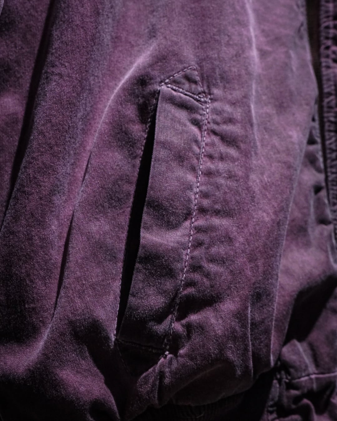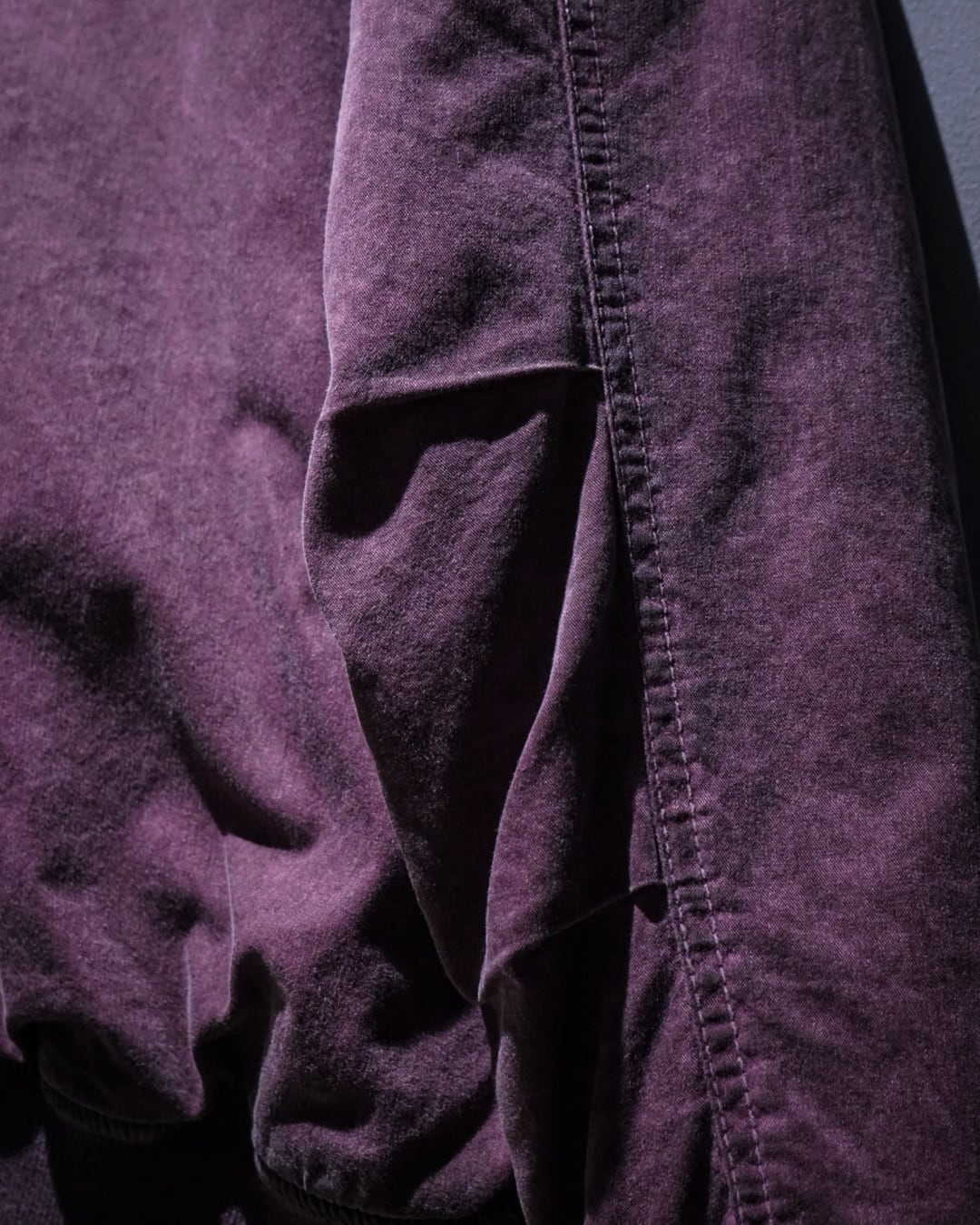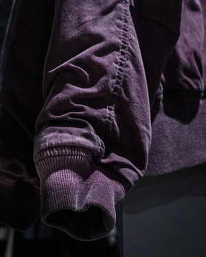 通常ナイロンで作られるMA-1をコットンで仕上げることで、空気を含んだような柔らかい膨らみと、素材感特有の色落ちが非常に良い雰囲気を醸し出します。