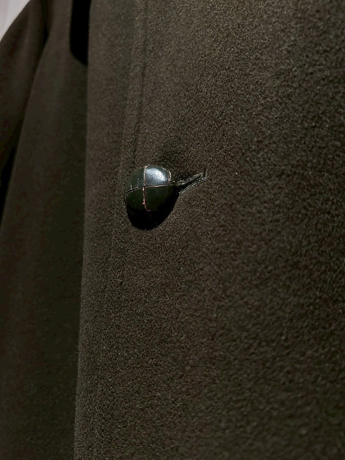 深みのあるオリーブカラーのウールボディはしっとりとした質感と上品な落ち感が魅力。