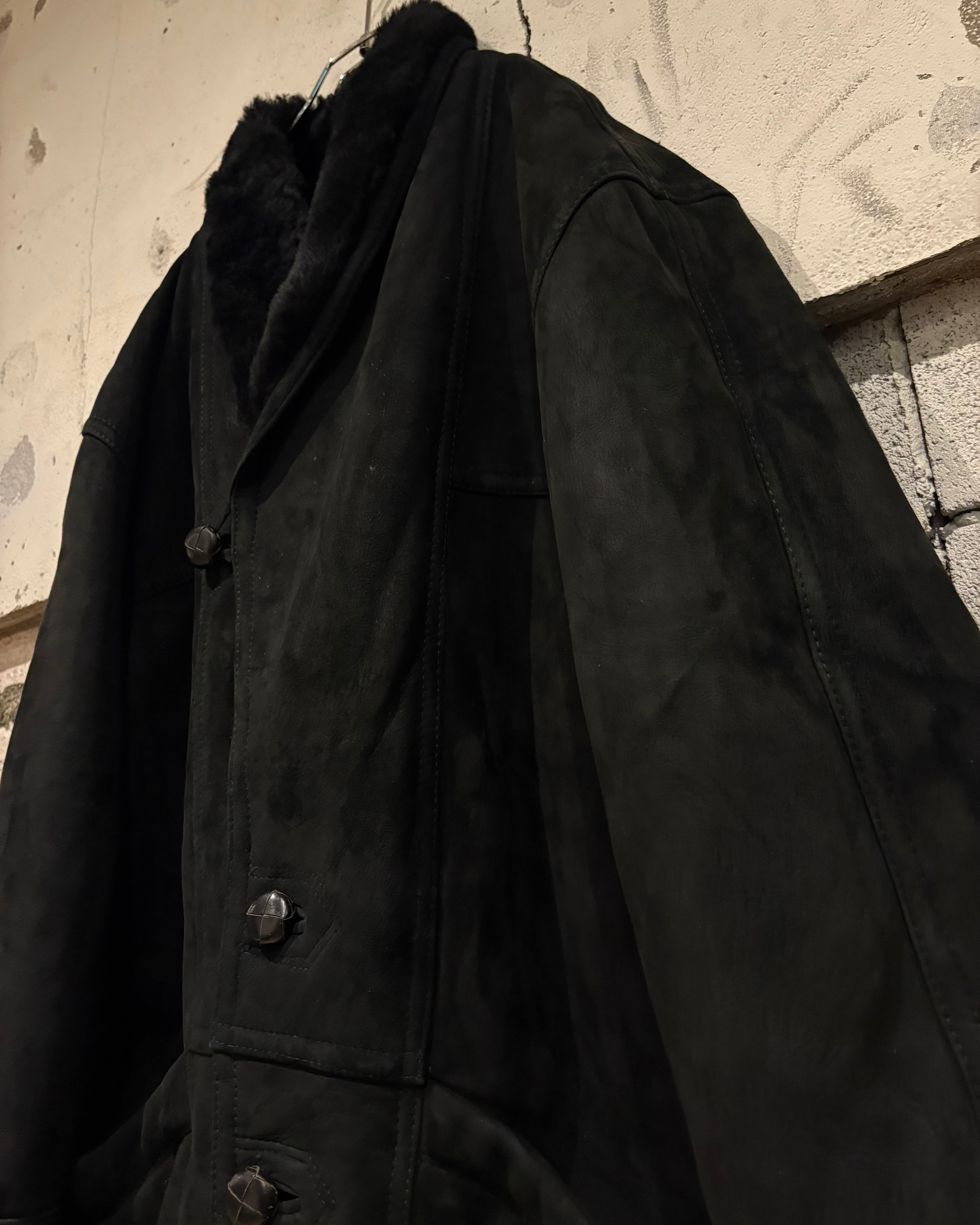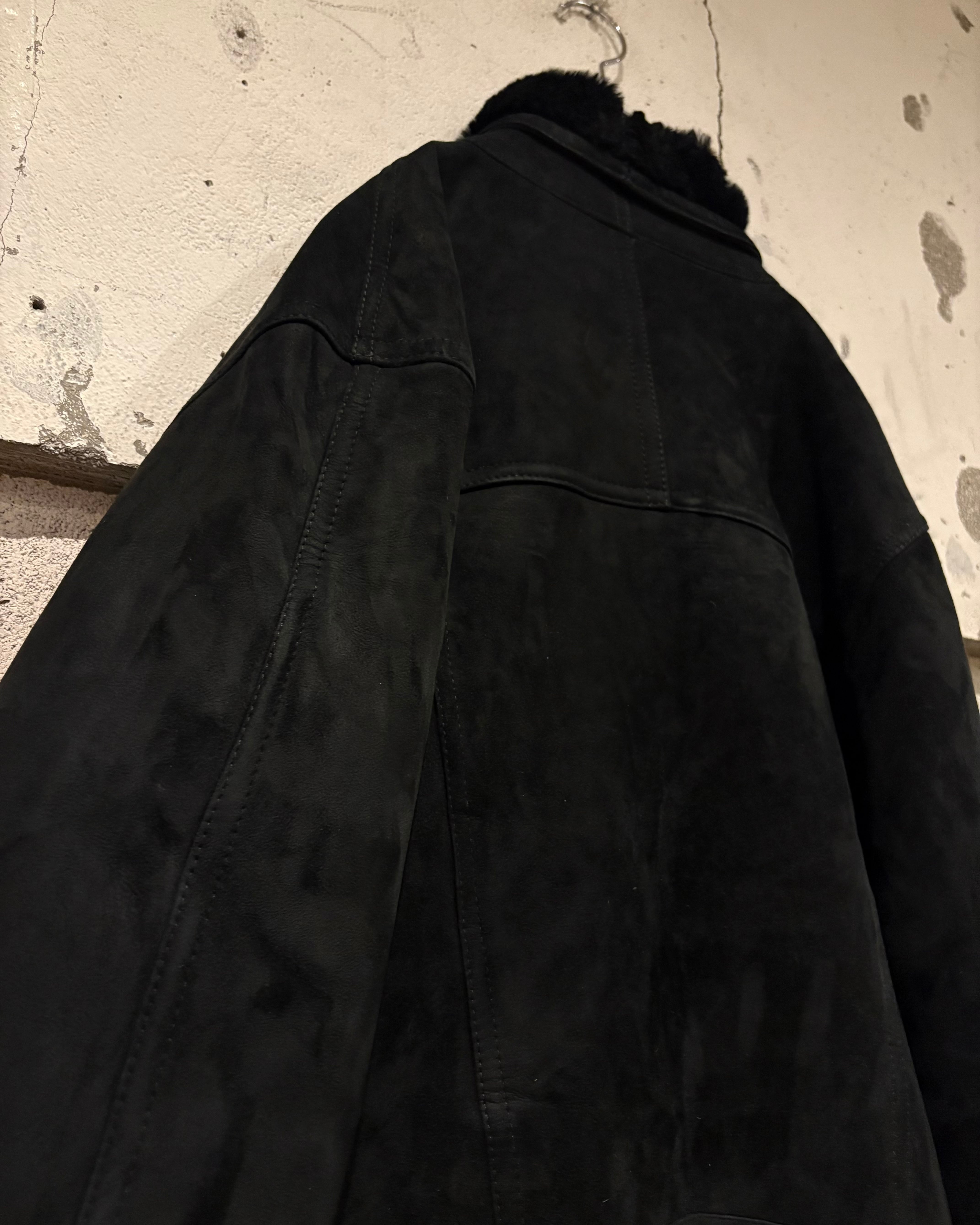 ムートンというカテゴリはタイトな物が多い中、こちらはルーズサイジング。腰まですっぽり覆うレングスで、完全防寒アウターとしての役割も果たしつつ、スタイリングの格を一段押し上げる美しいシルエットに仕上げられています。