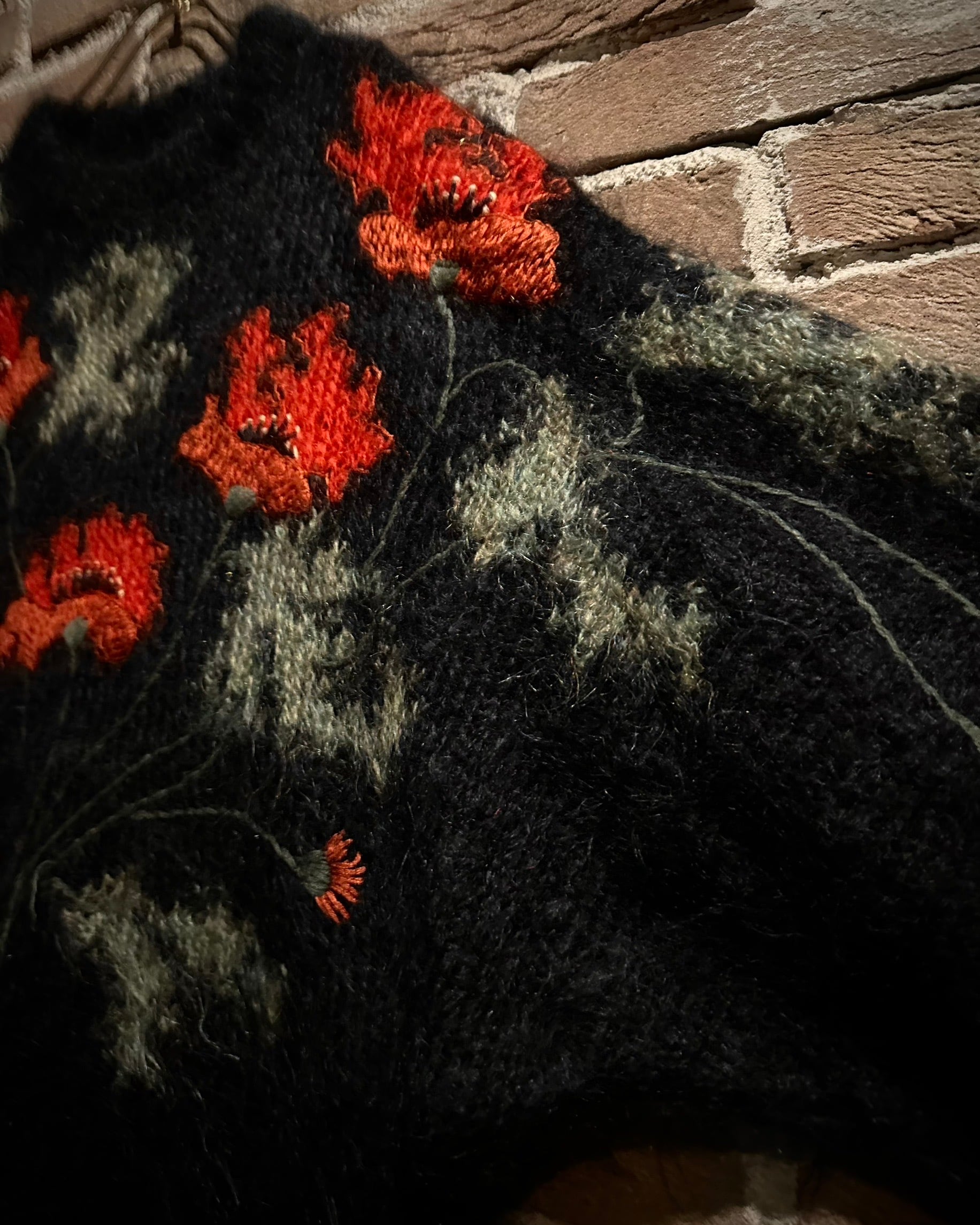 ブラックのボディをベースに、真紅の花が咲き誇るヴィンテージモヘアニット。