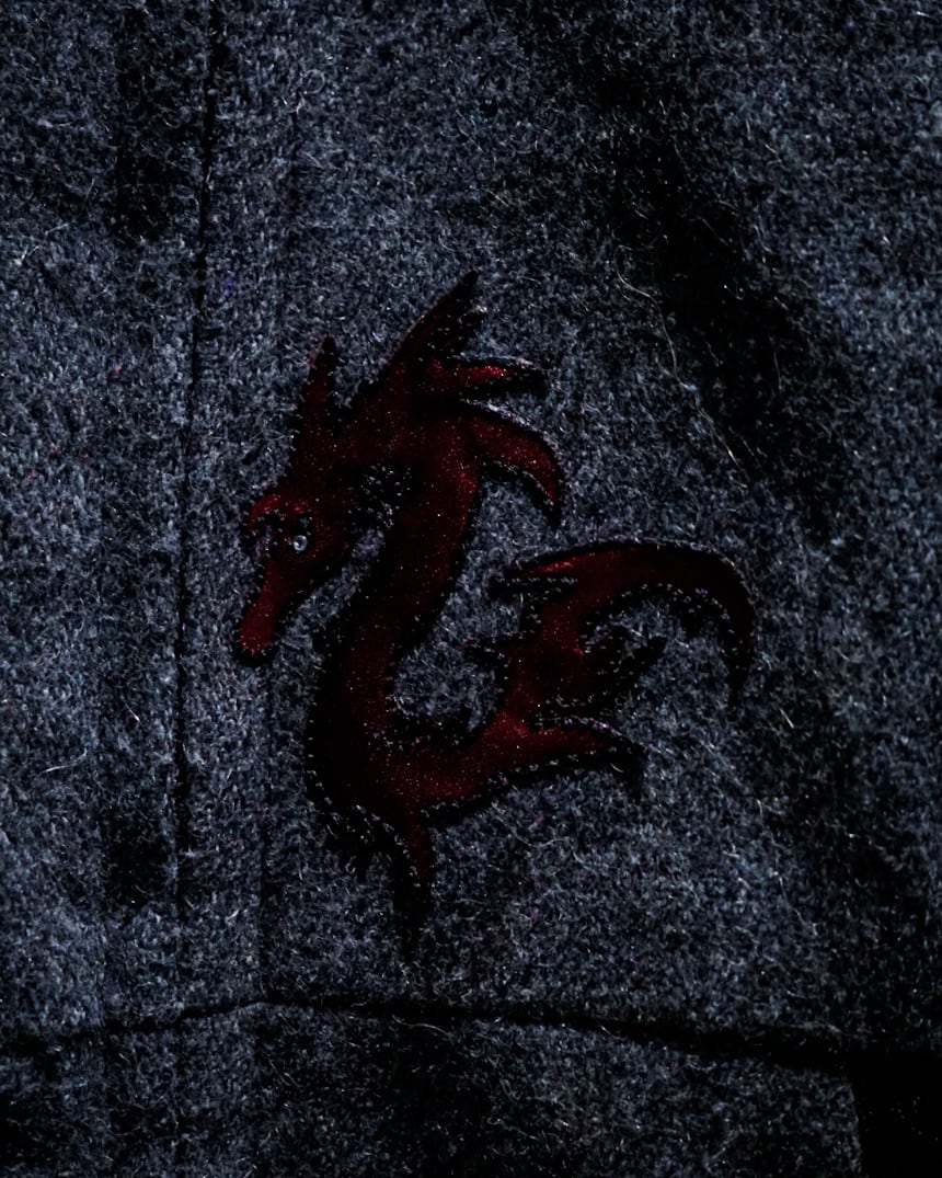 フロントには“NO FEAR”の刺繍ロゴ、裾付近にはレッドのドラゴン刺繍、そして背面にも大判ロゴが入る、ストリートの空気感を濃厚に纏った逸品。