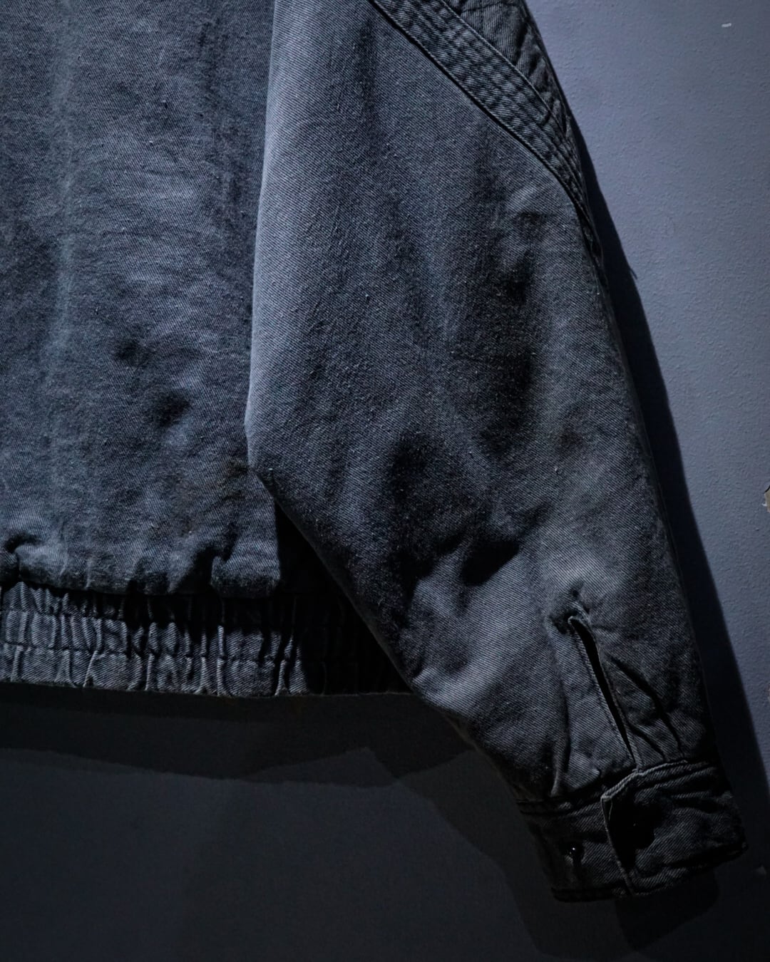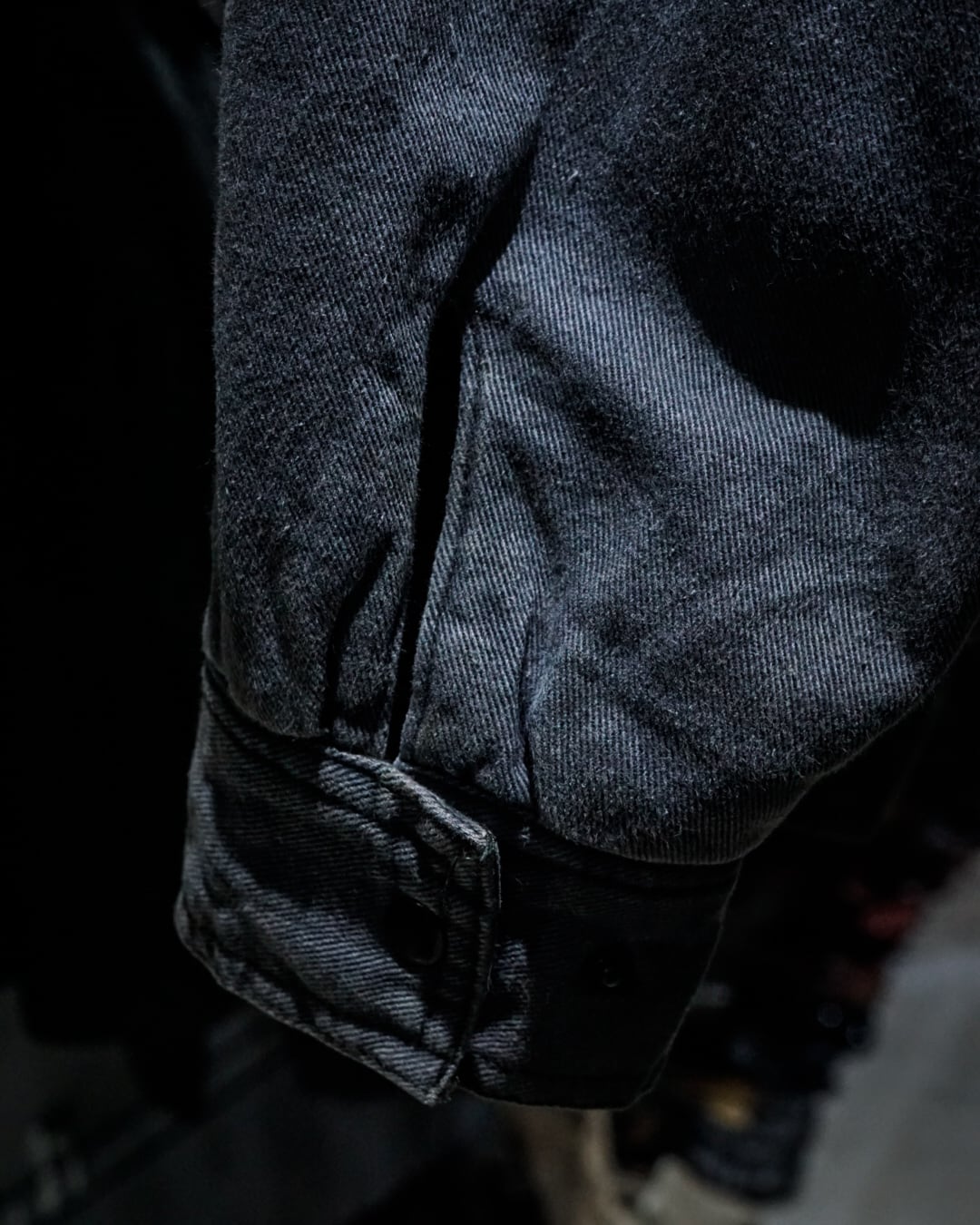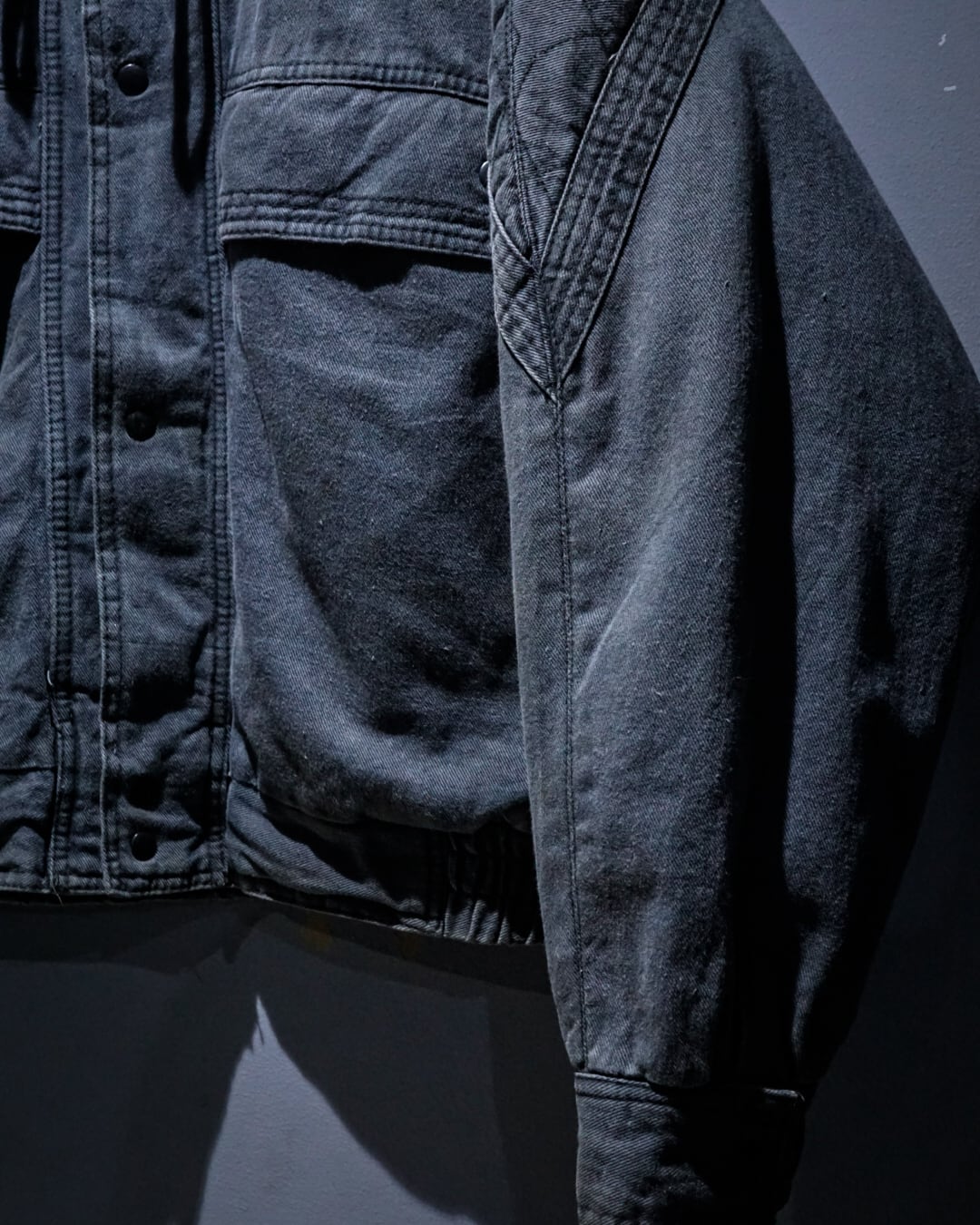 ボディはフェードによるくすんだグレーが絶妙で、デニムのようなタフなコットンシェルに走る色落ちの具合が抜群に雰囲気を漂わせています。