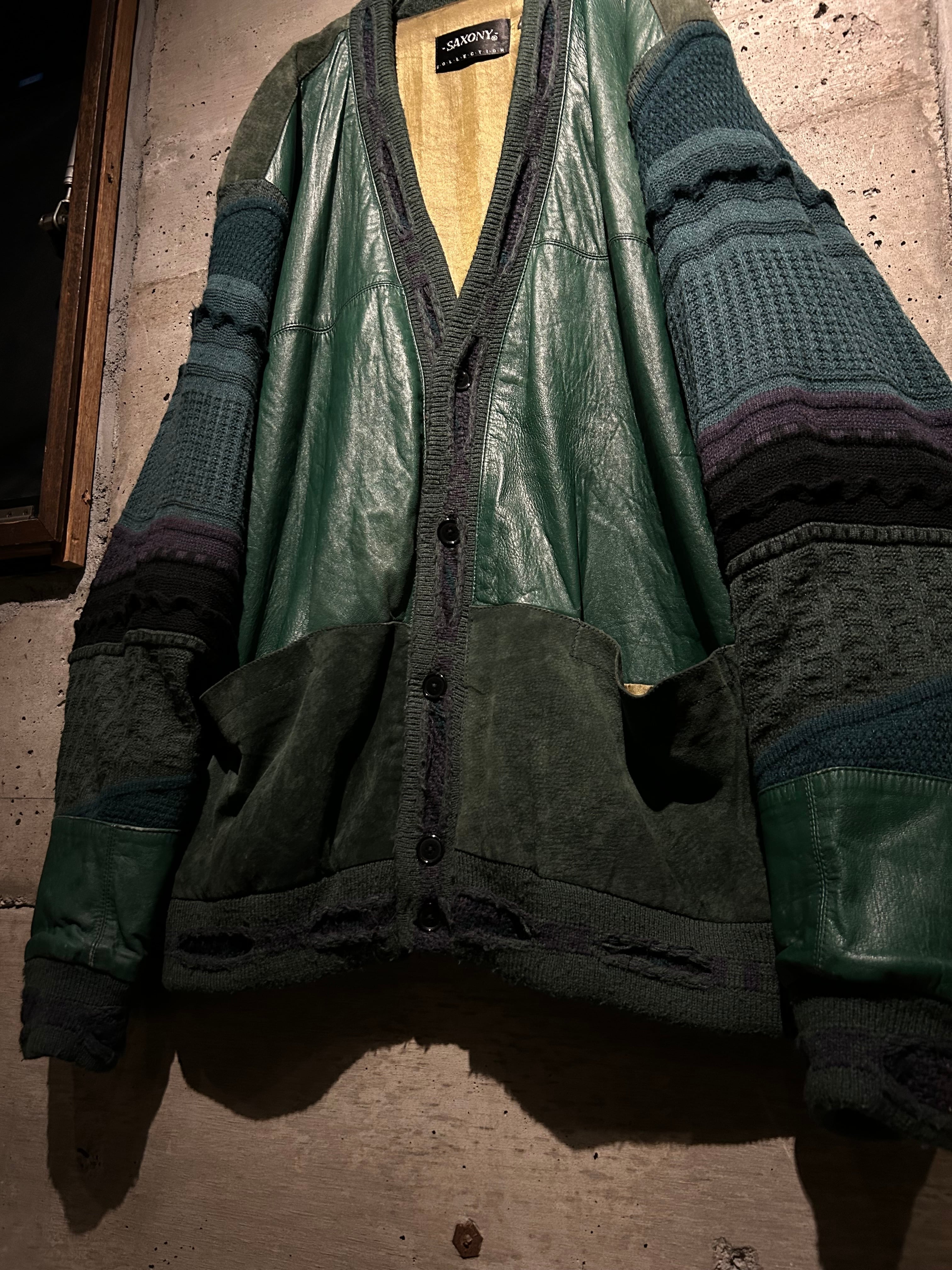 “SAXONY“より、レザーとニットを巧みに掛け合わせたスペシャルなカーディガンジャケットをご紹介いたします。