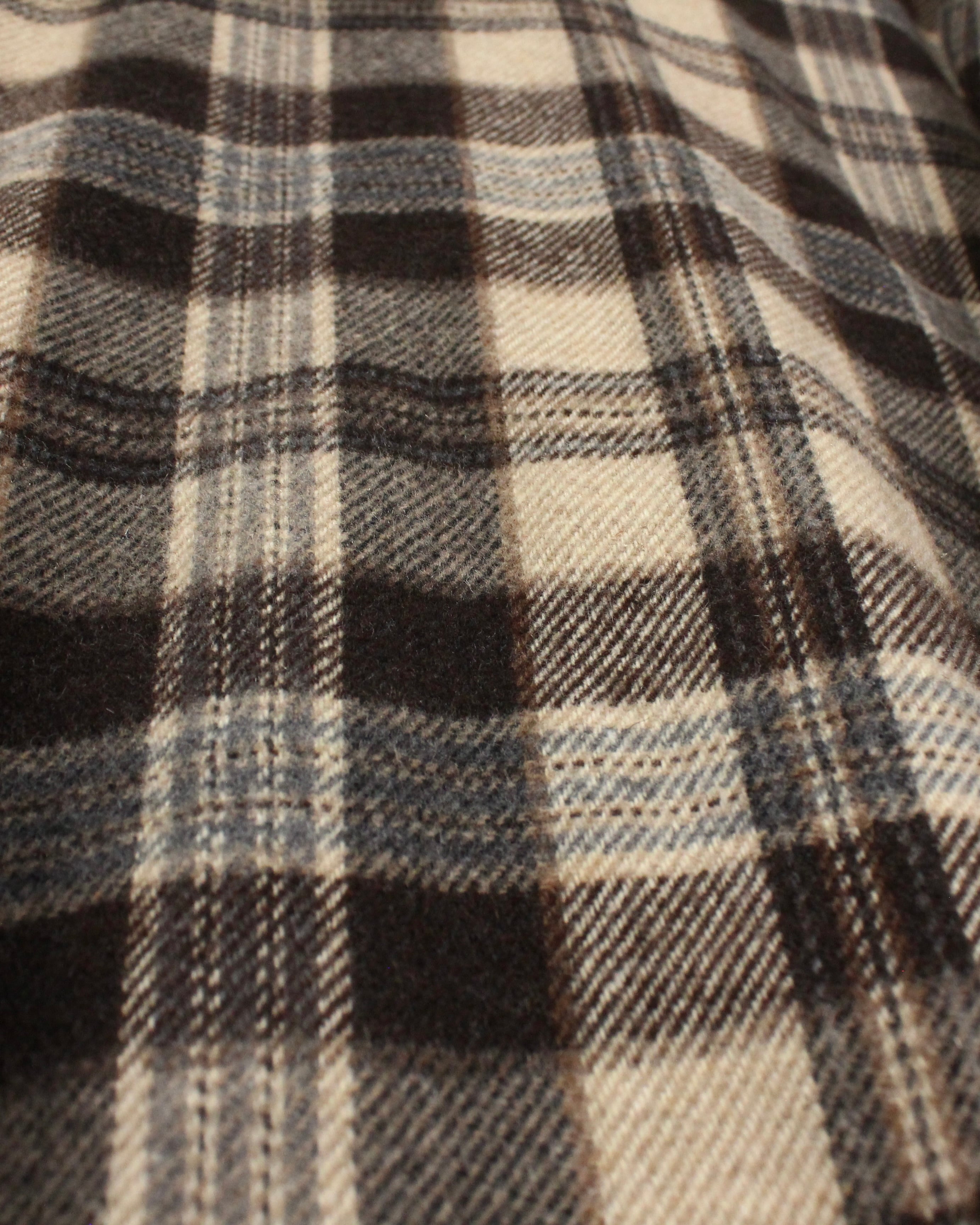 厚手のインナーとも合わせやすく、ライトアウターとして長いシーズン対応可能。フランネル特有の柔らかさとチェックの奥行きが、どんなスタイリングにも深みを与えてくれるかと。