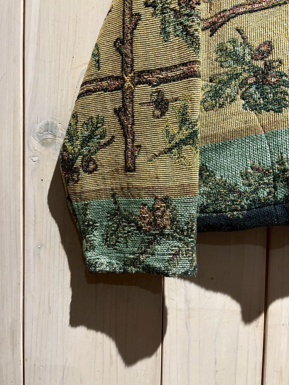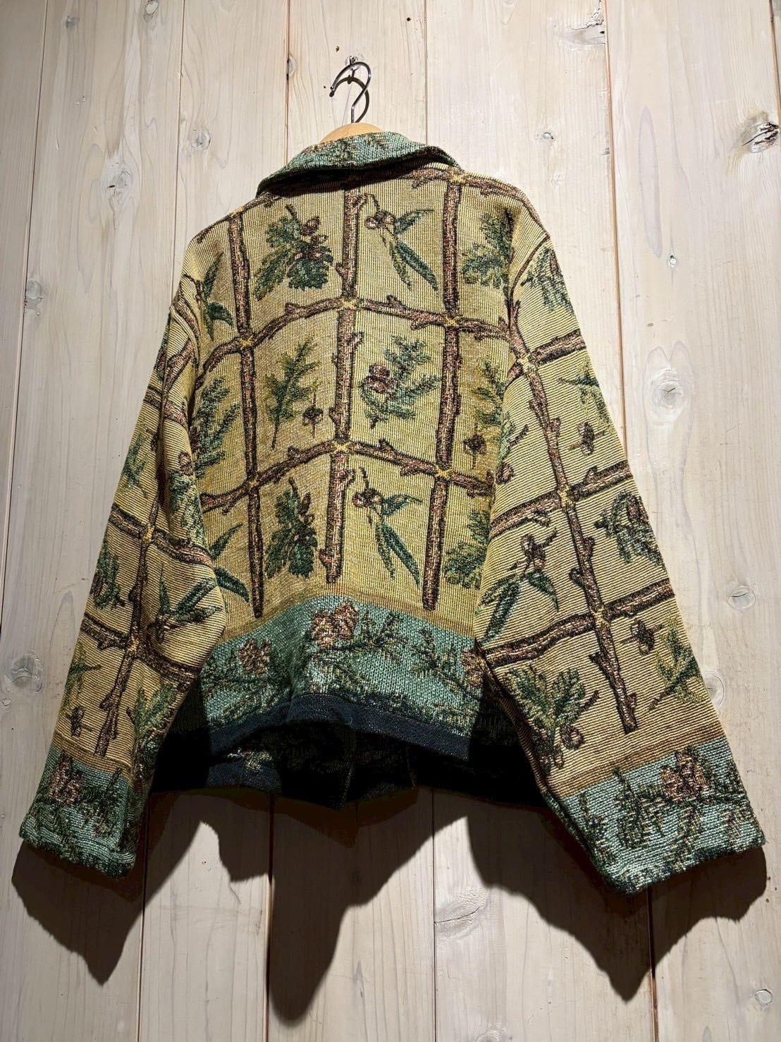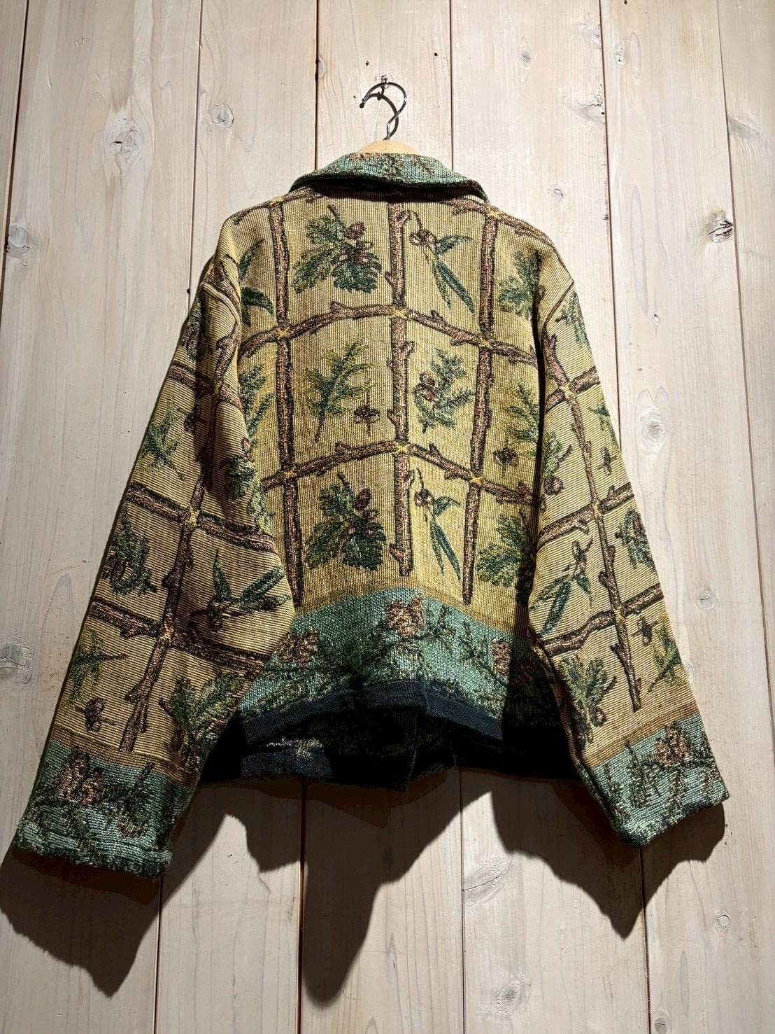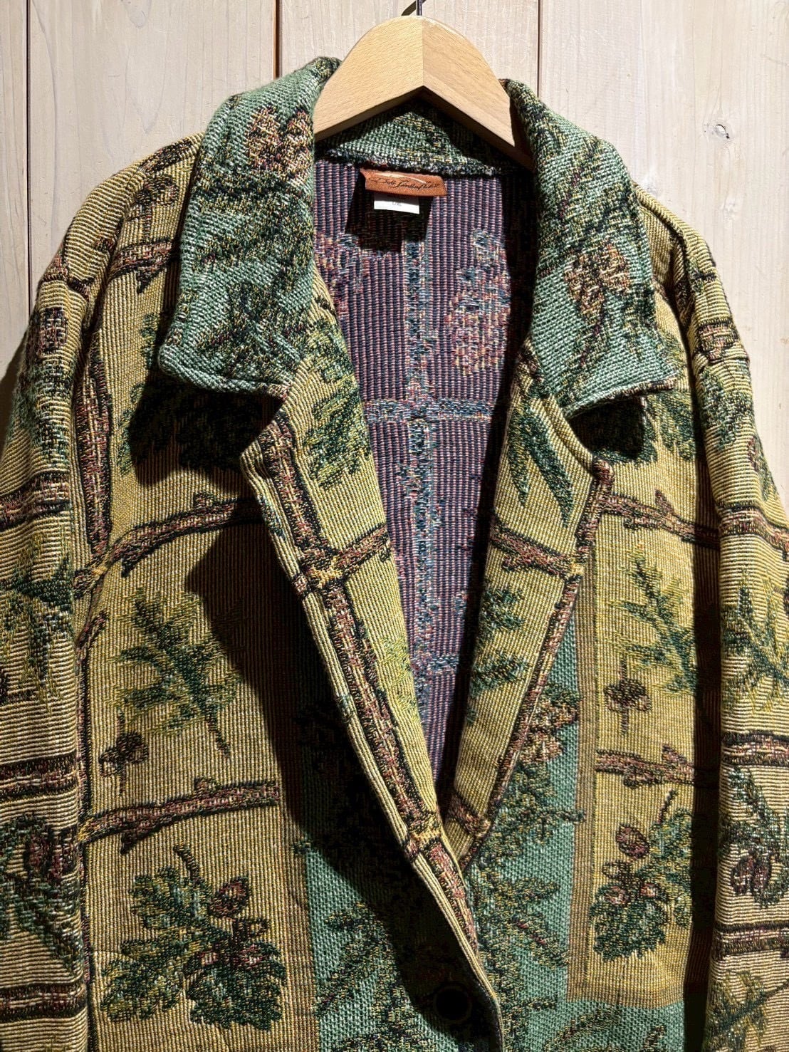 ゴブランジャケットは古着でも定番ですが、テーラード型となると稀少。さらに短丈気味に仕上げられており、スタイルアップと共に幅広いボトムスとの相性も抜群です。