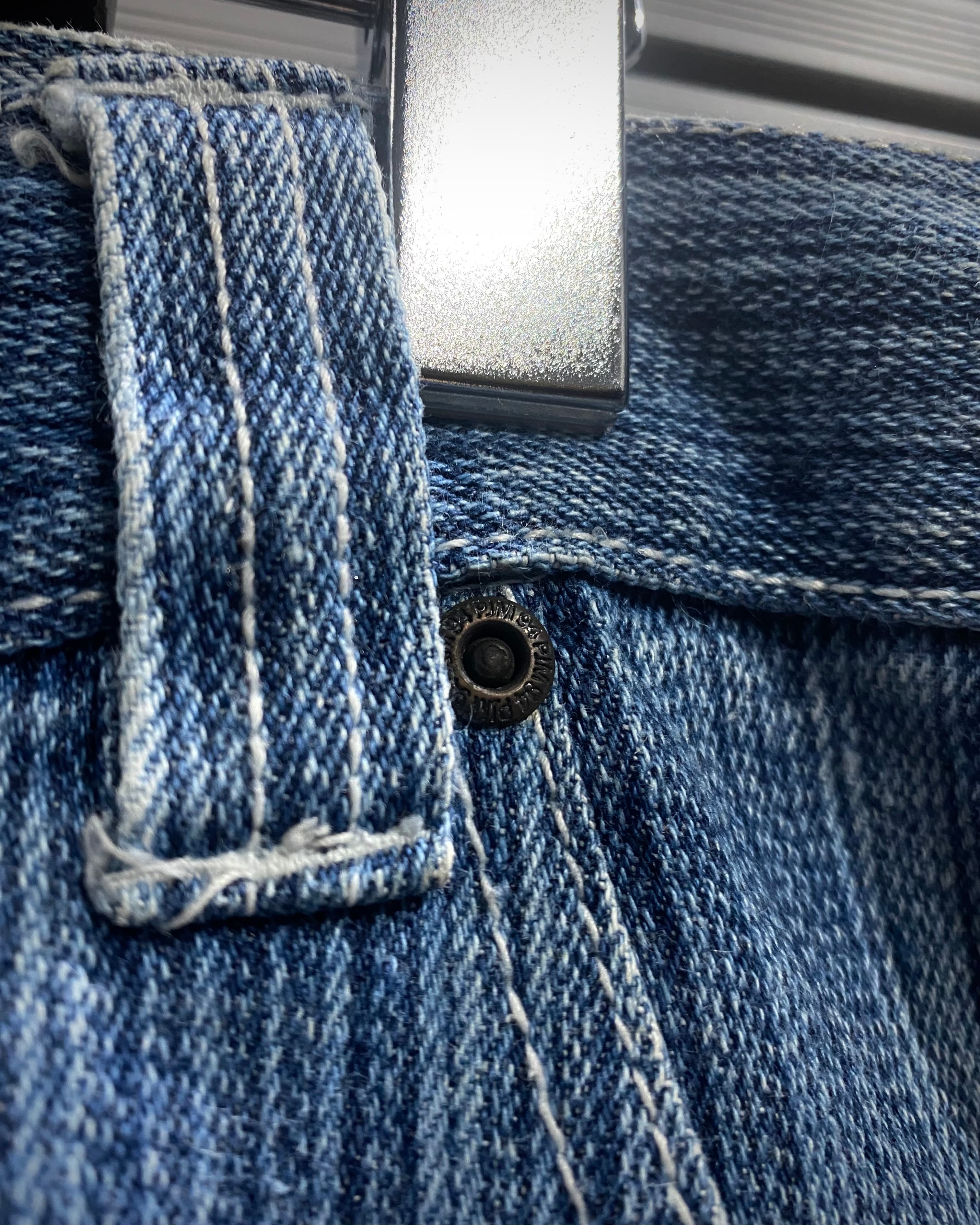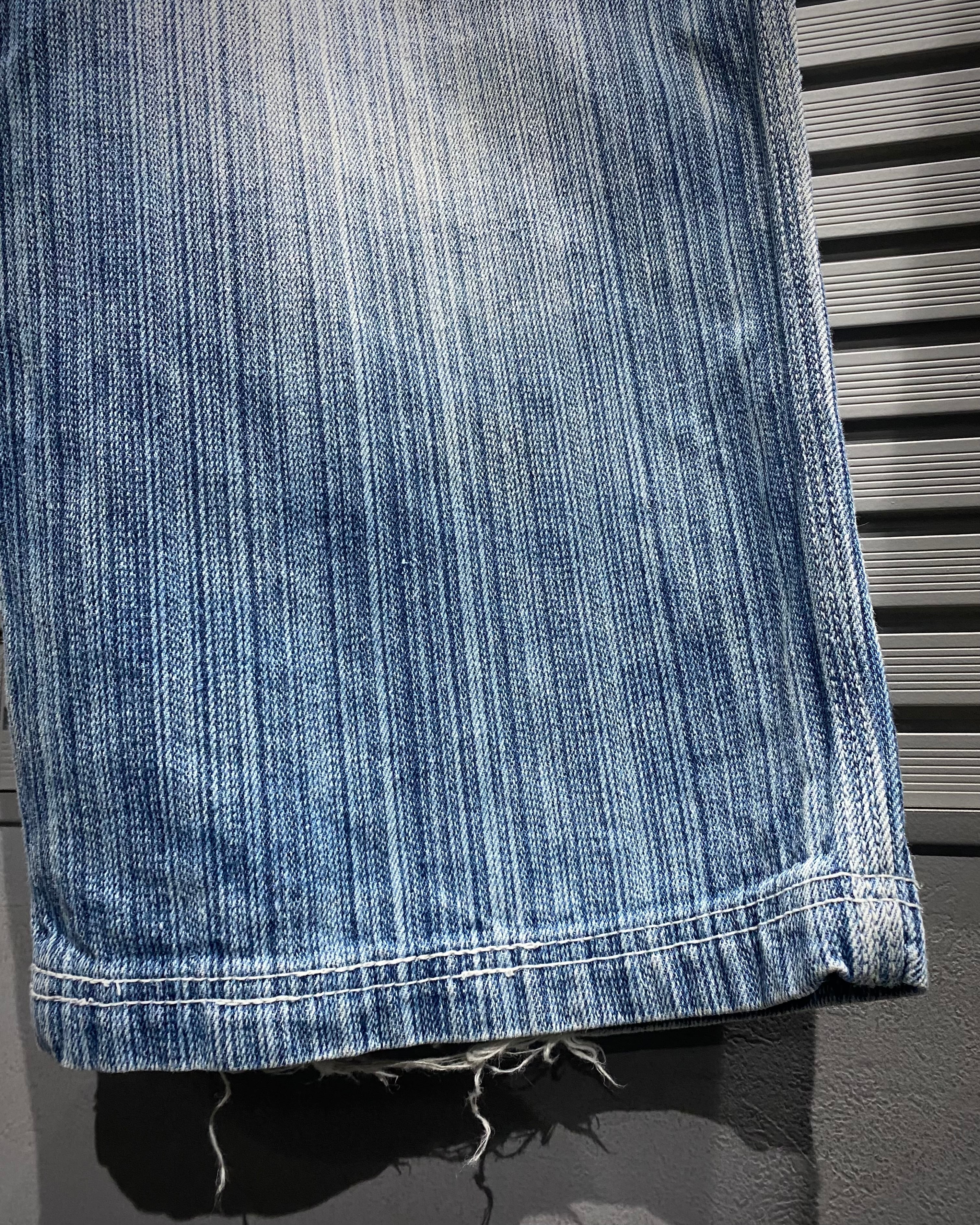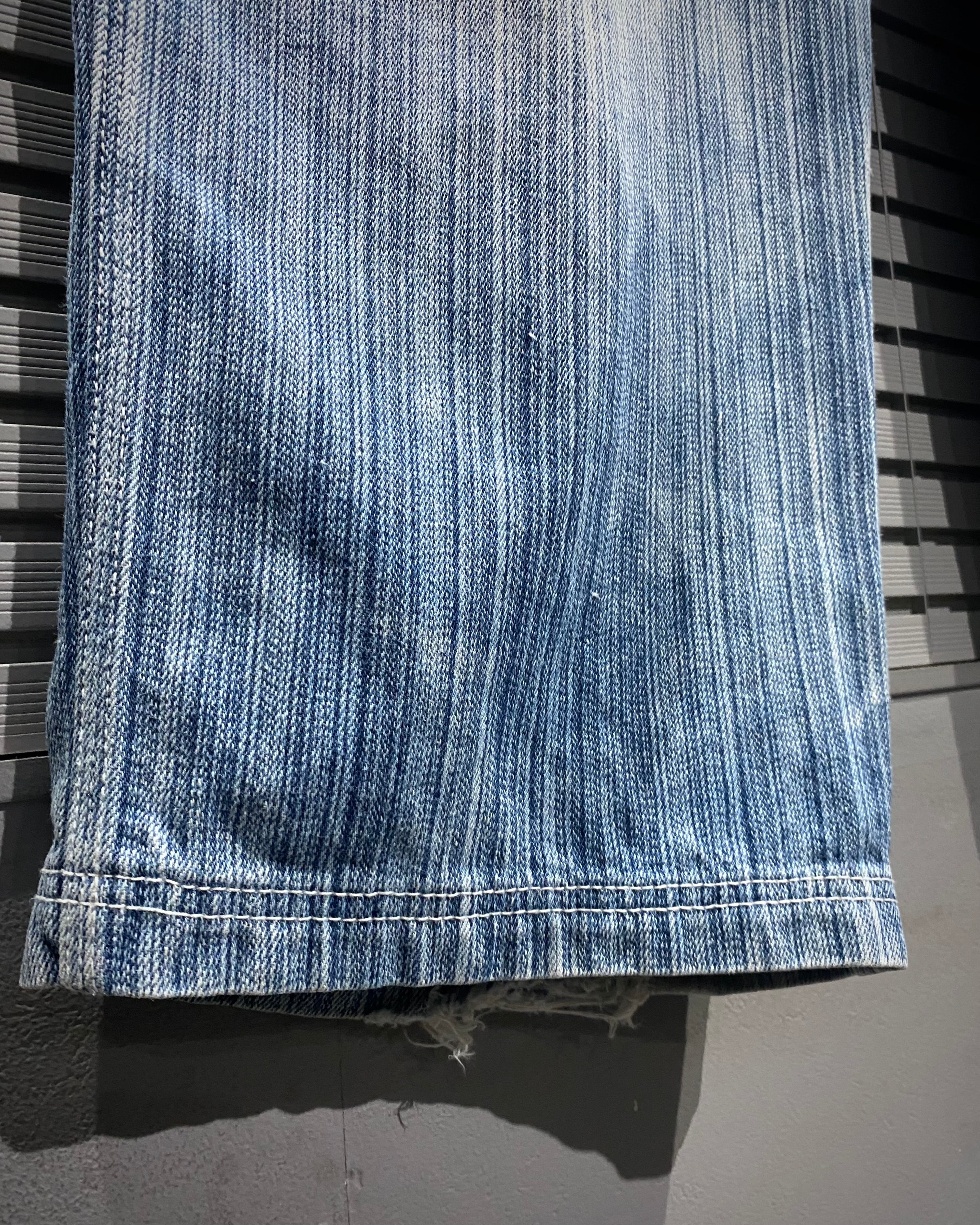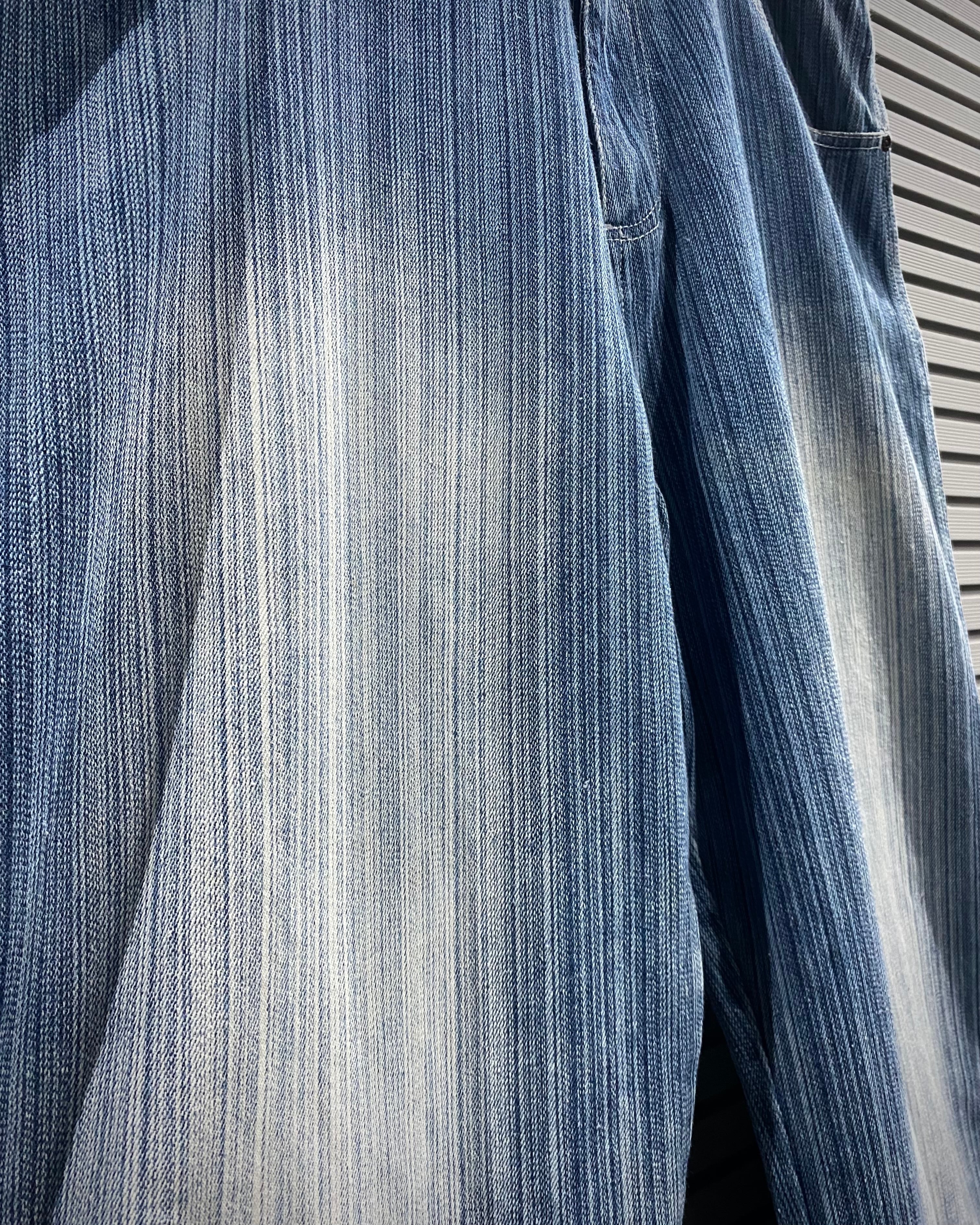 縦に走るストライプの色落ちが非常に美しく、淡いブルーのグラデーションと合わせて風合いがしっかりと表情に落とし込まれています。
