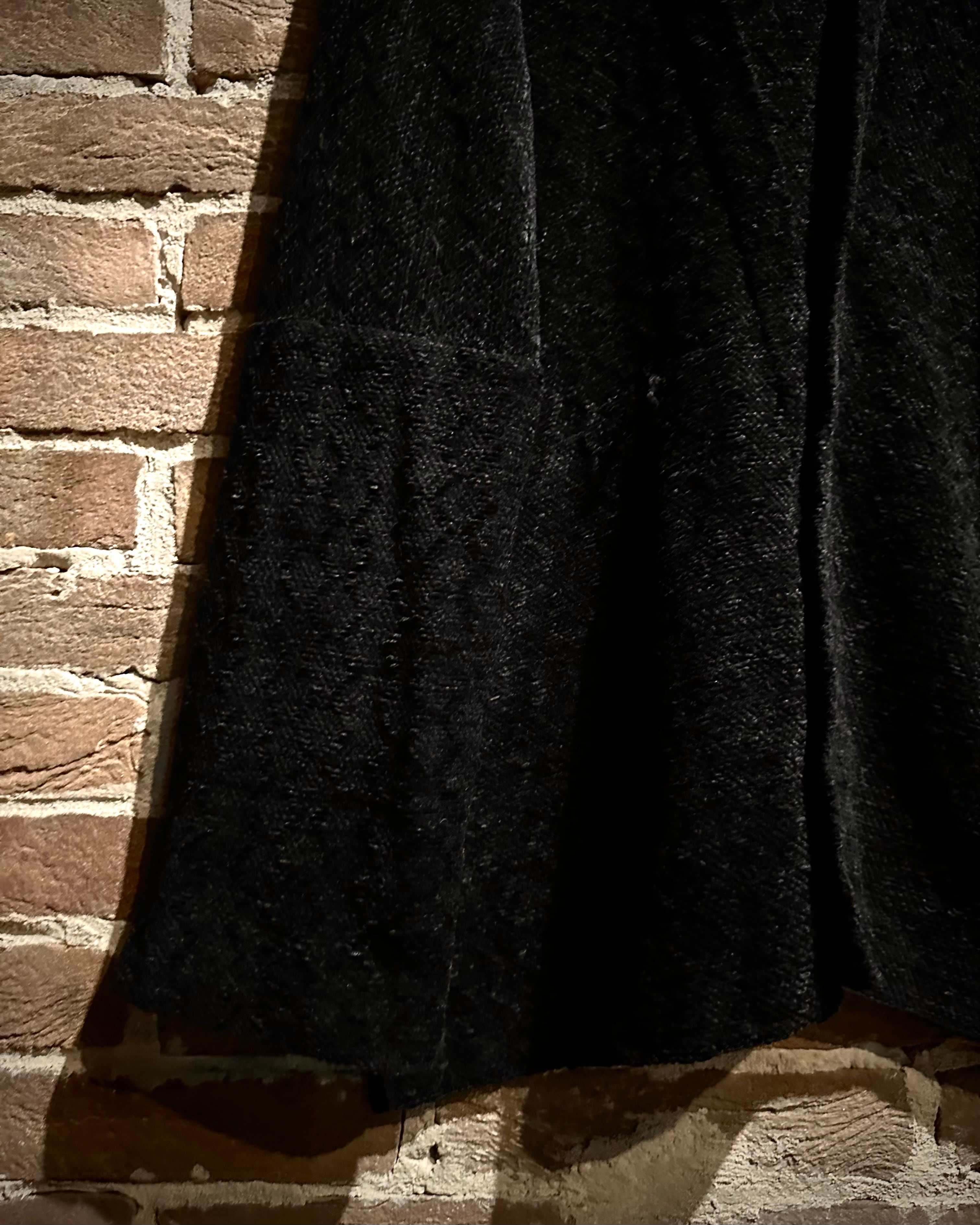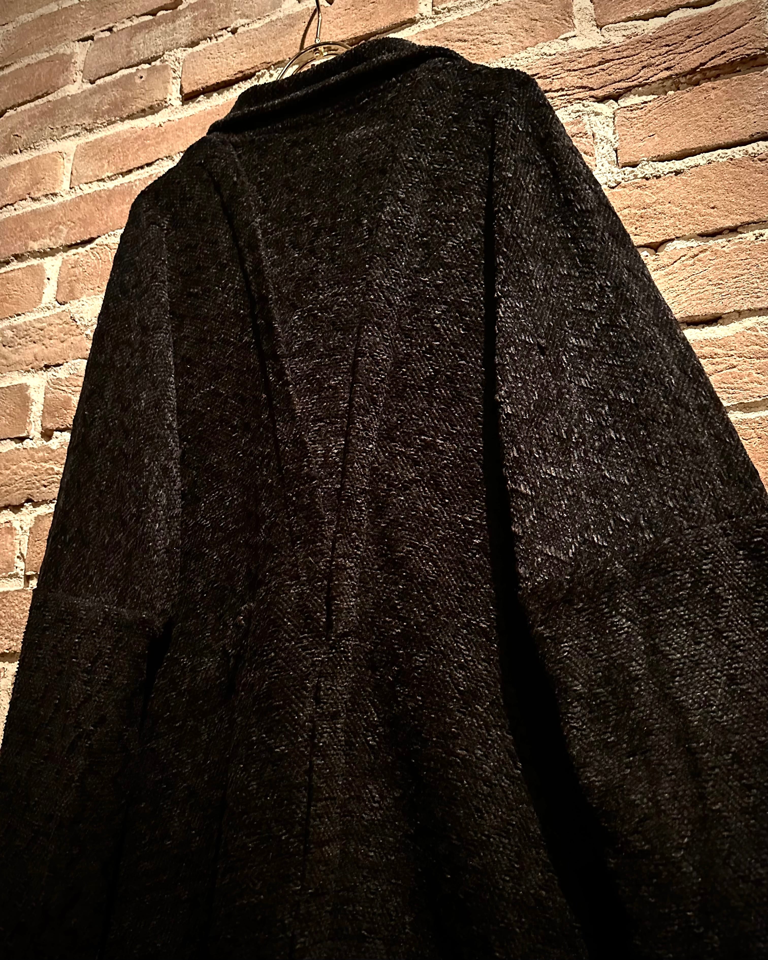 フロントはミニマルな1つボタン、2連ボタンの仕様。余計なデザインを排したことで、波状のテクスチャーとたっぷりとった布量が生む立体感がより際立つバランスに。