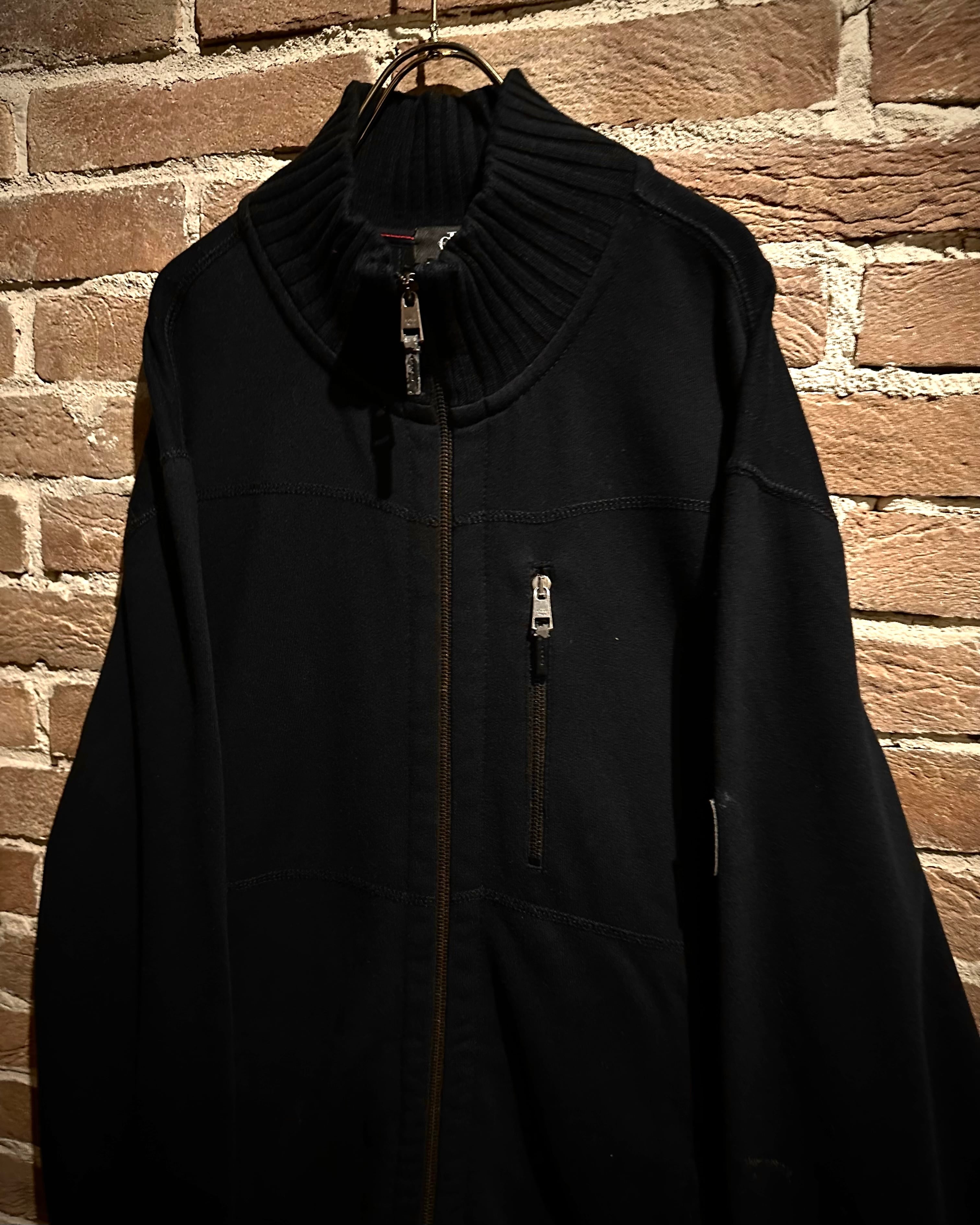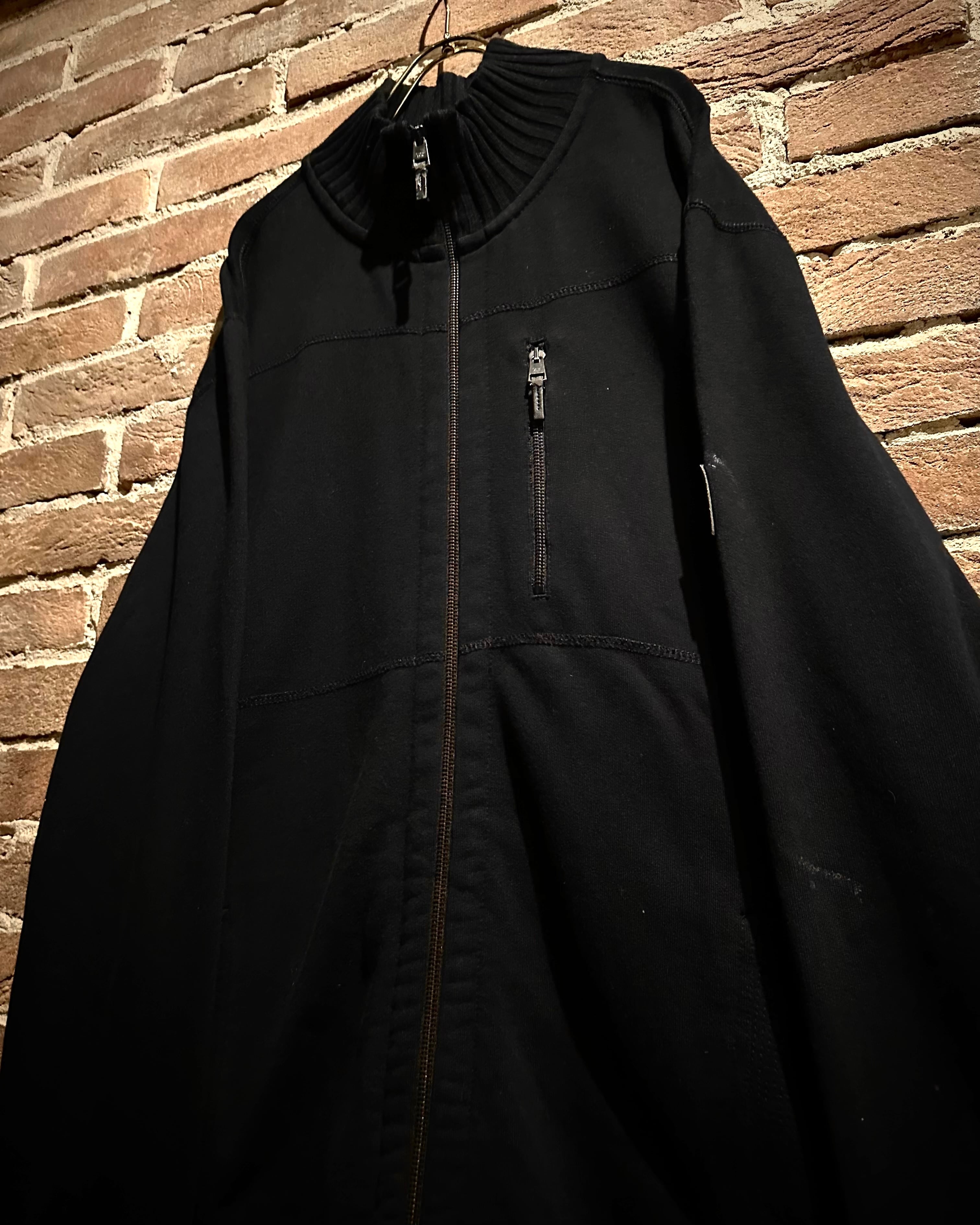 ミニマルで洗練されたブラックの空気感を纏った、“Calvin Klein”のジップアップニットジャケットの逸品。