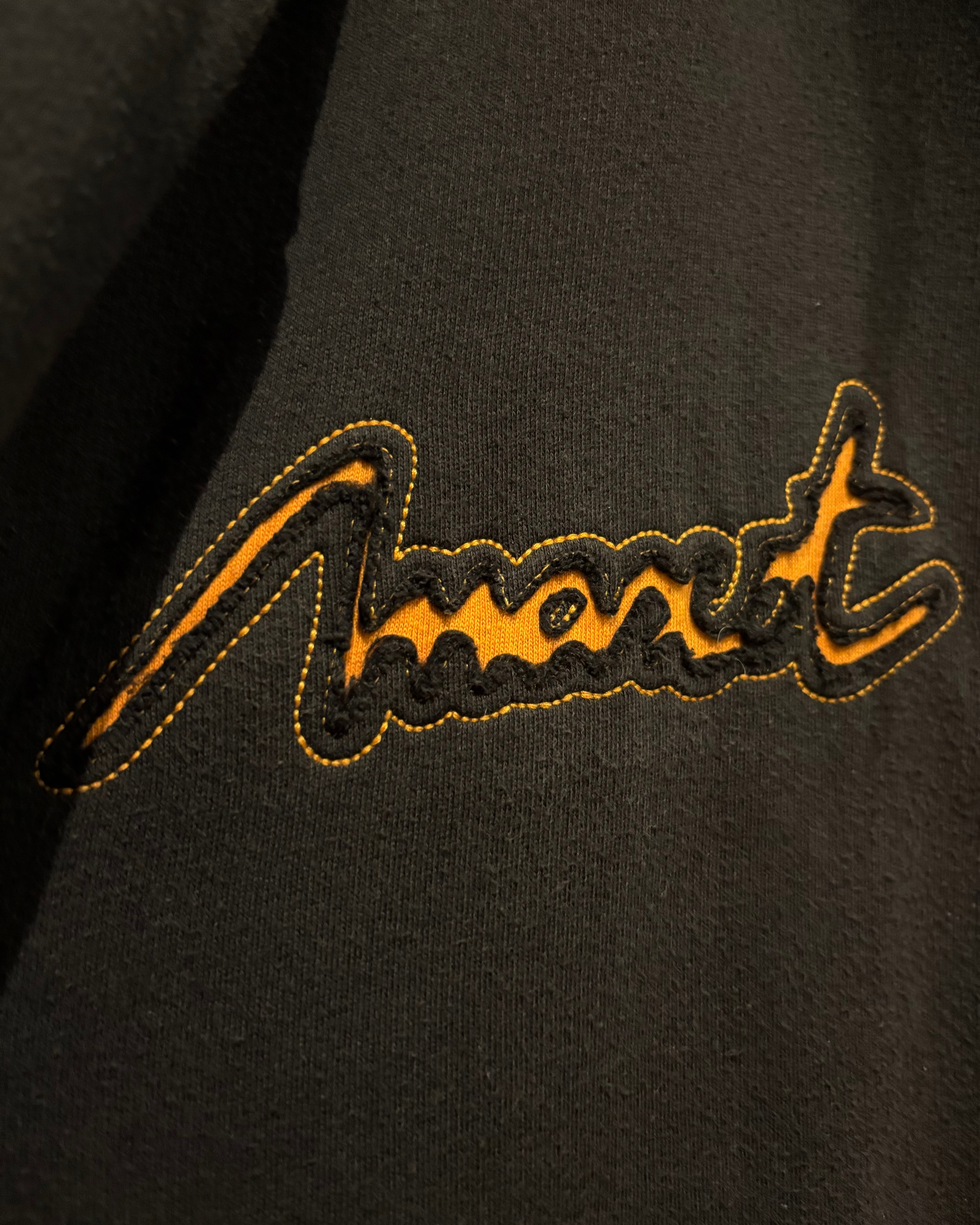 フロントには立体的な刺繍ロゴが入り、ストリートなデザインアクセントをプラス。深いブラック×オレンジの配色も抜群です。