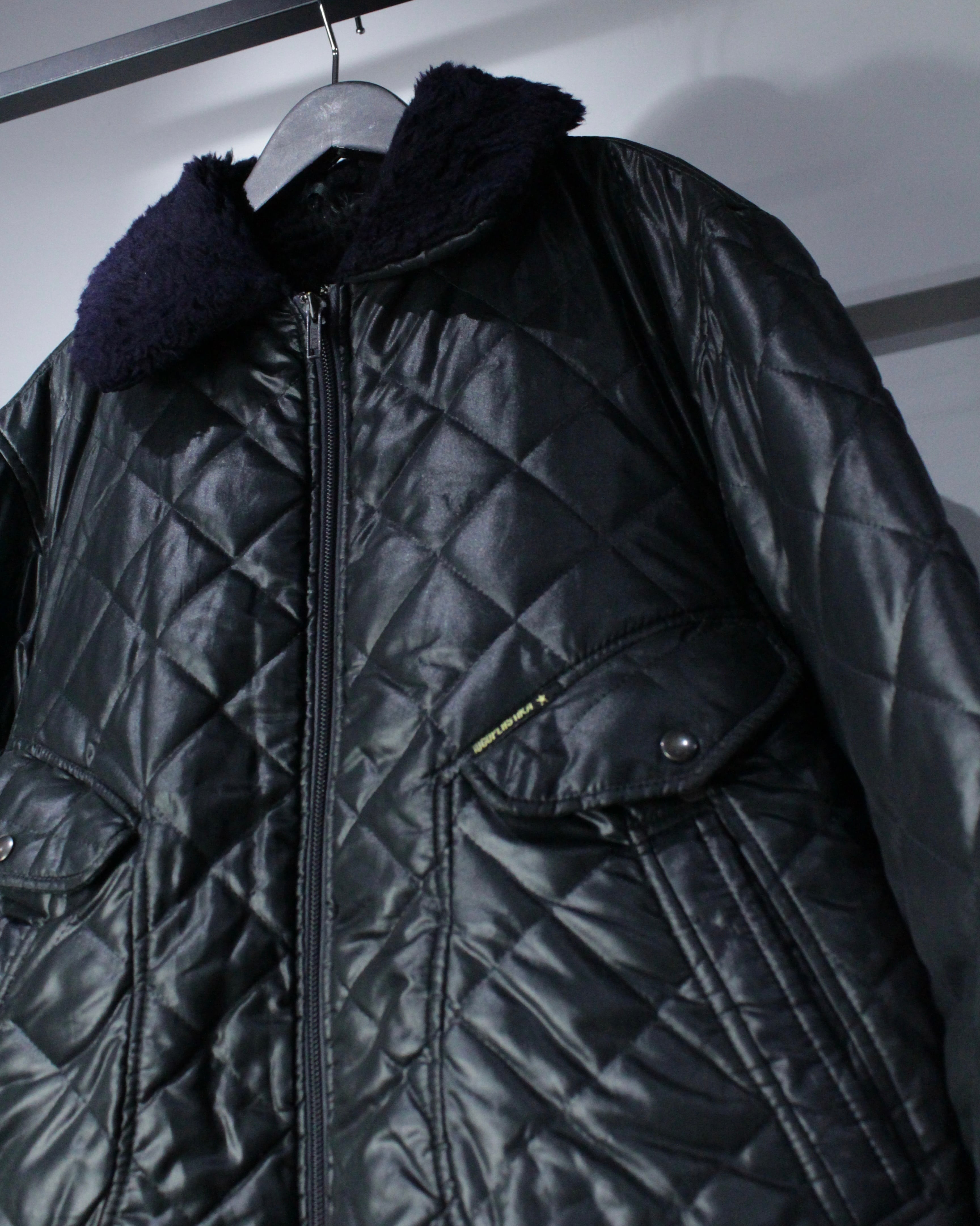 ミリタリーの無骨さがありながら、モードな雰囲気も感じられるキルティングジャケットの逸品です。