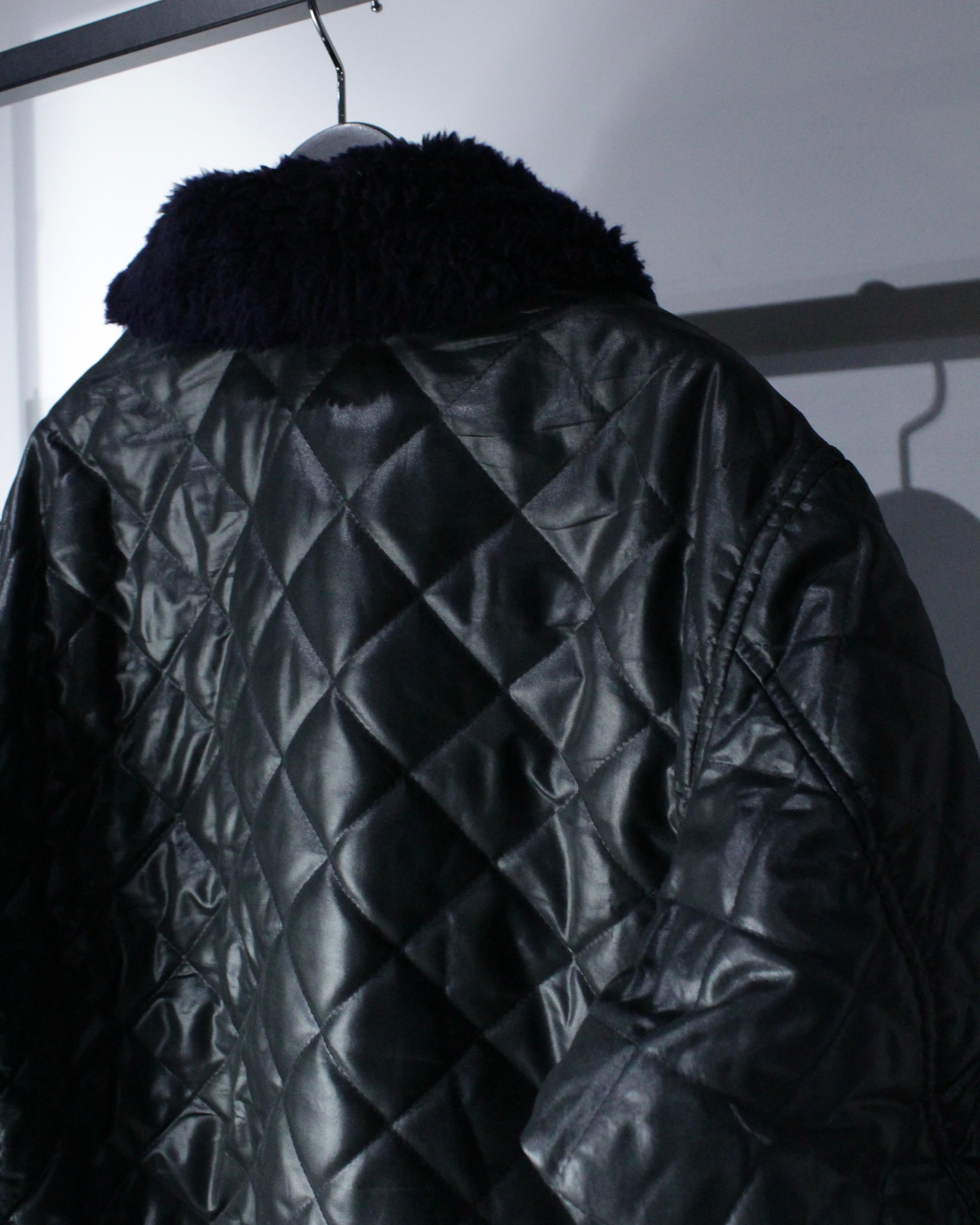 鈍い光沢を纏うテキスタイルを使用し、ダイヤ状に走るキルティングステッチが立体的な陰影を生み出しています。保温性ももちろん抜群です◎