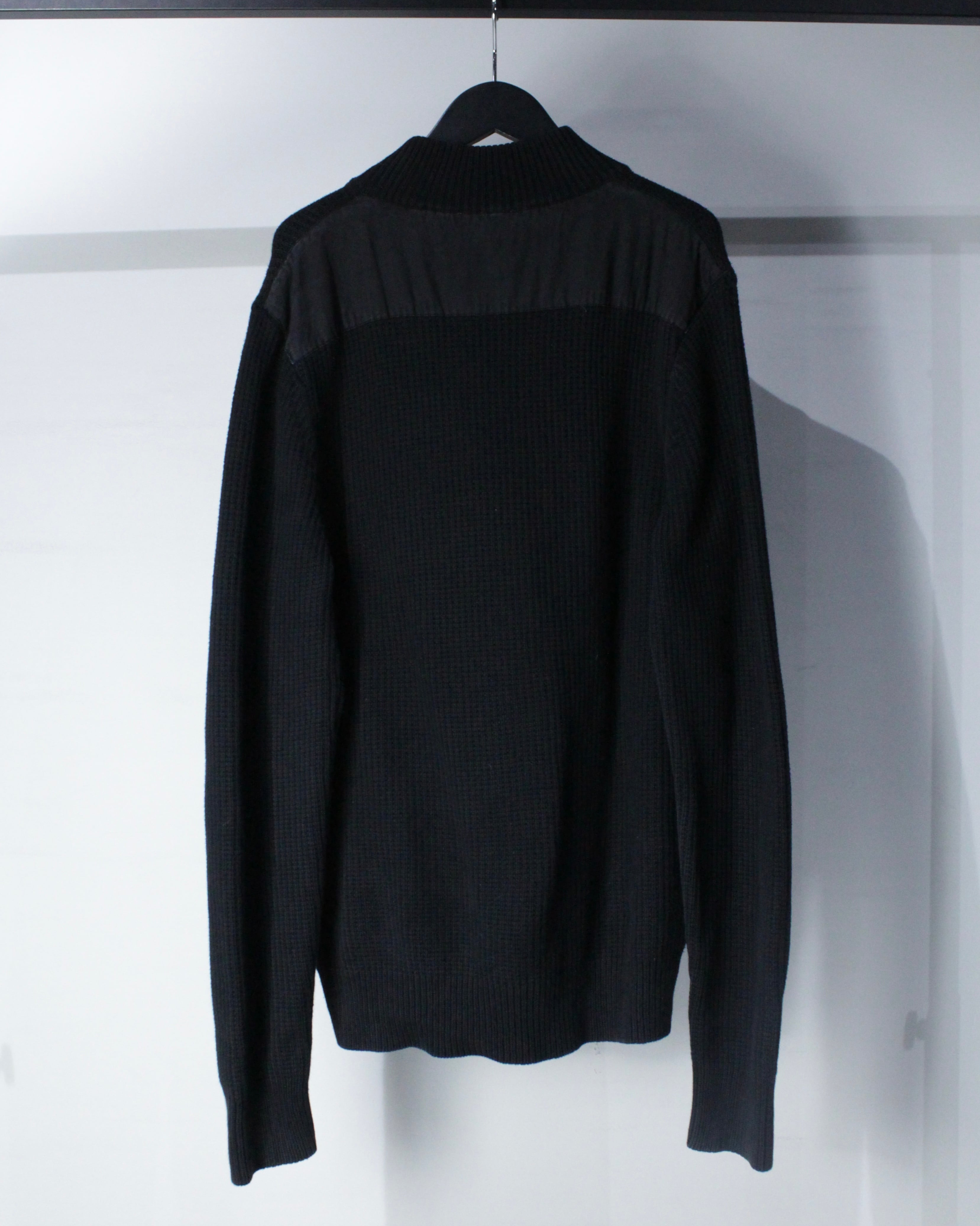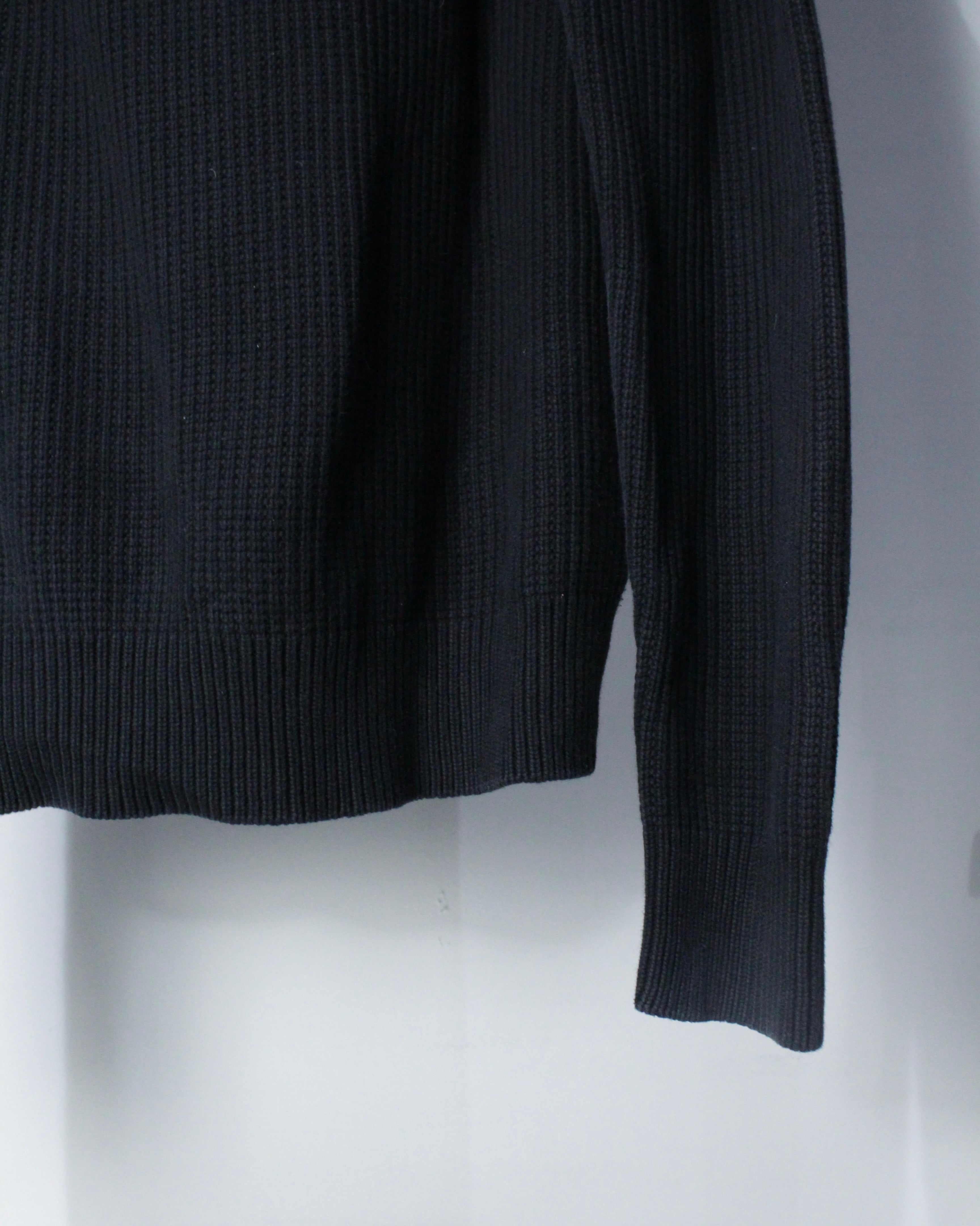 肉厚すぎず、しかし編地に程よいハリとコシがありタフな仕上がり。デイリーに使いやすいブラックワントーンで、インナー・アウターどちらでもしっかりと活躍してくれます。