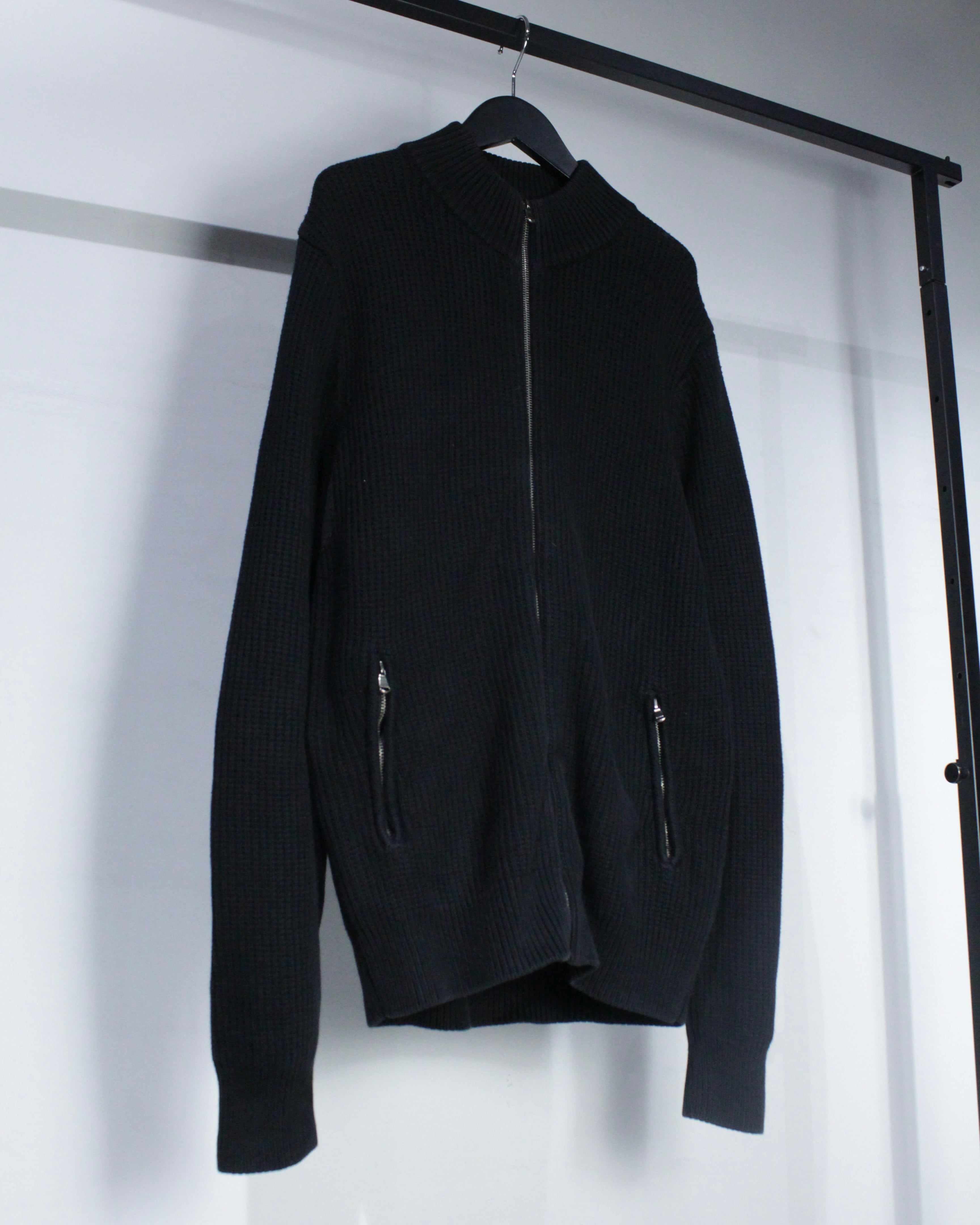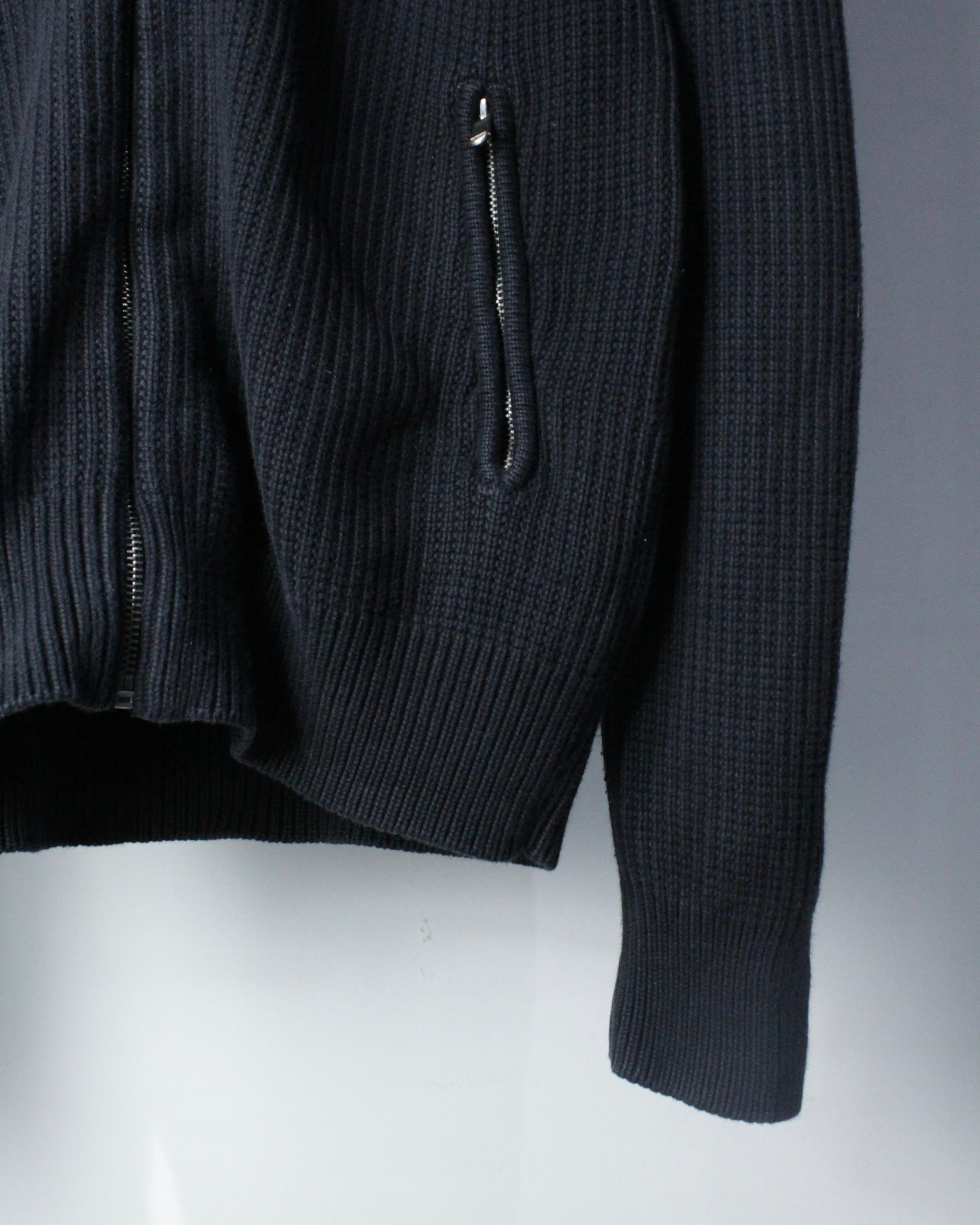 シンプルでミニマル、当店らしいモードな空気感を纏ったジップアップニットジャケットです。