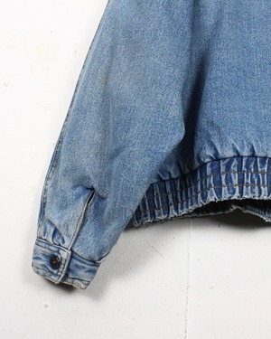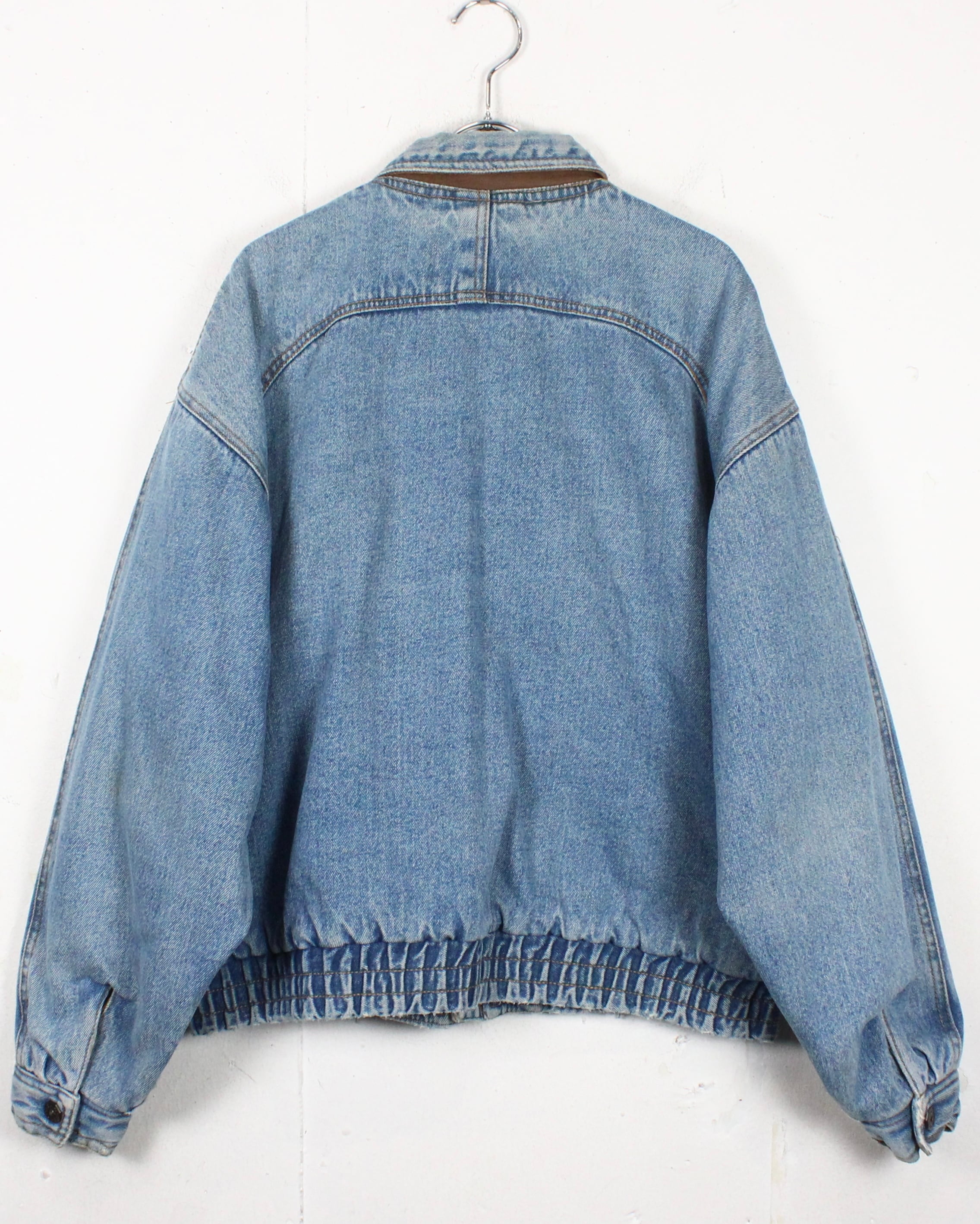 フロントのポケット部分にブラウンのレザーを大胆に切り替え、テクスチャーのコントラストが◎ポケットの形状やジップの配置も含めフライトジャケットのエッセンスも感じられ、デニム×レザーの掛け合わせでより無骨さが引き立つ仕上がりに。
