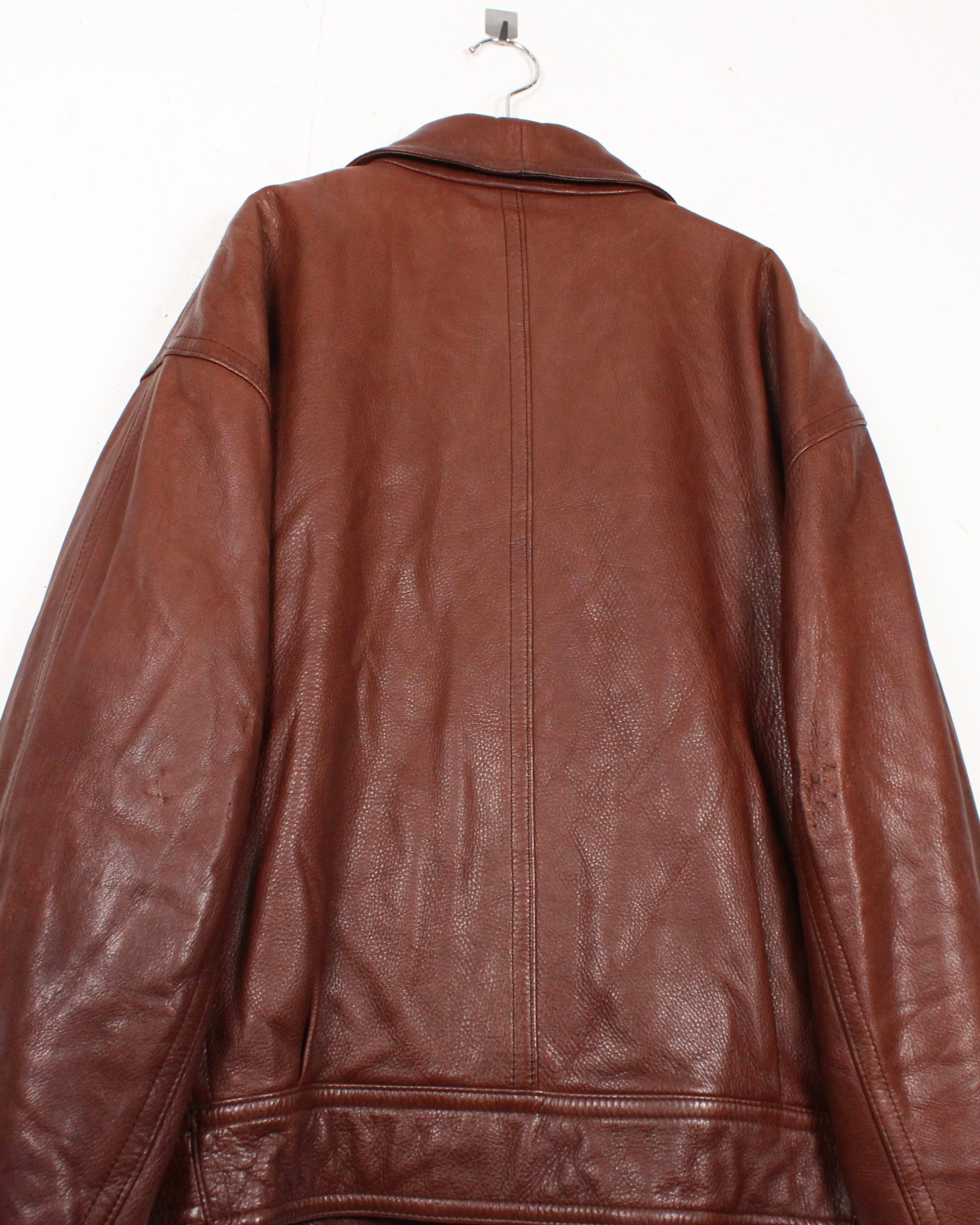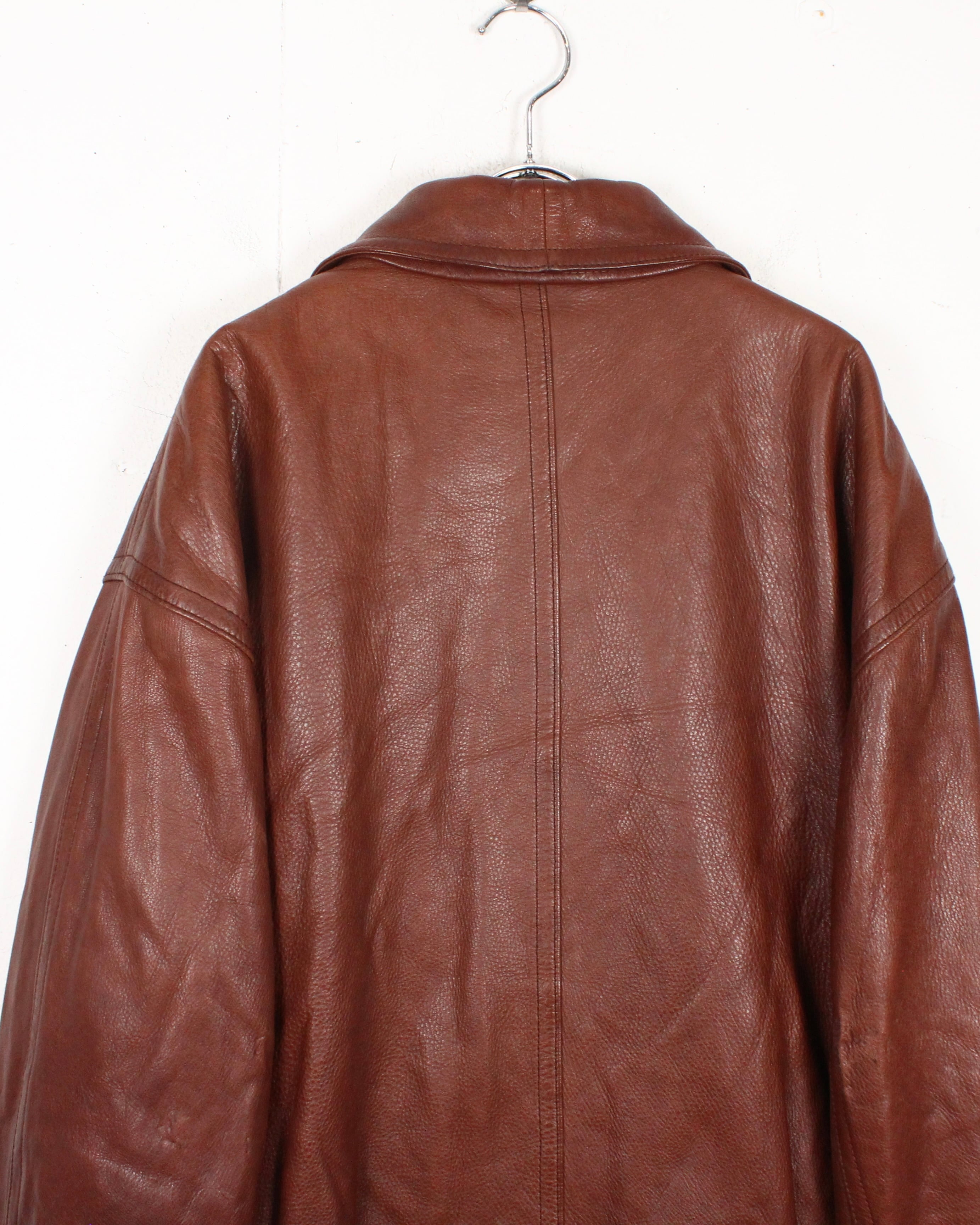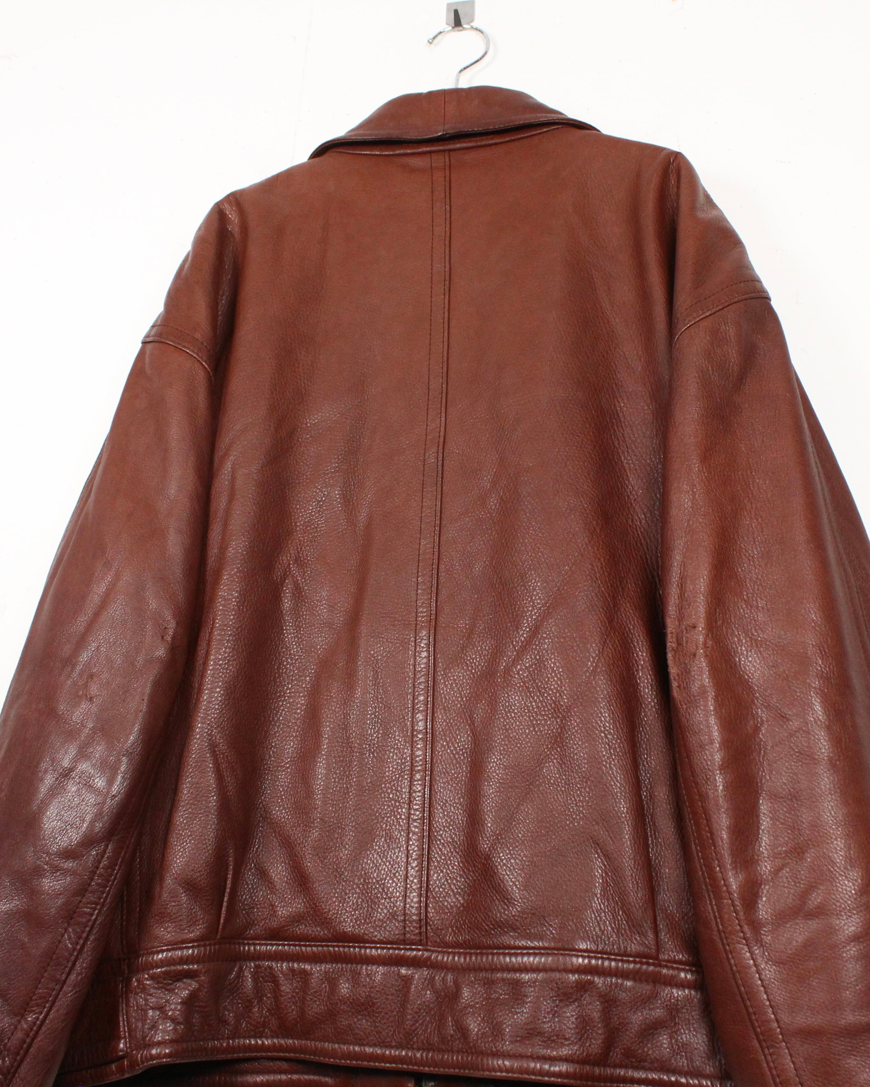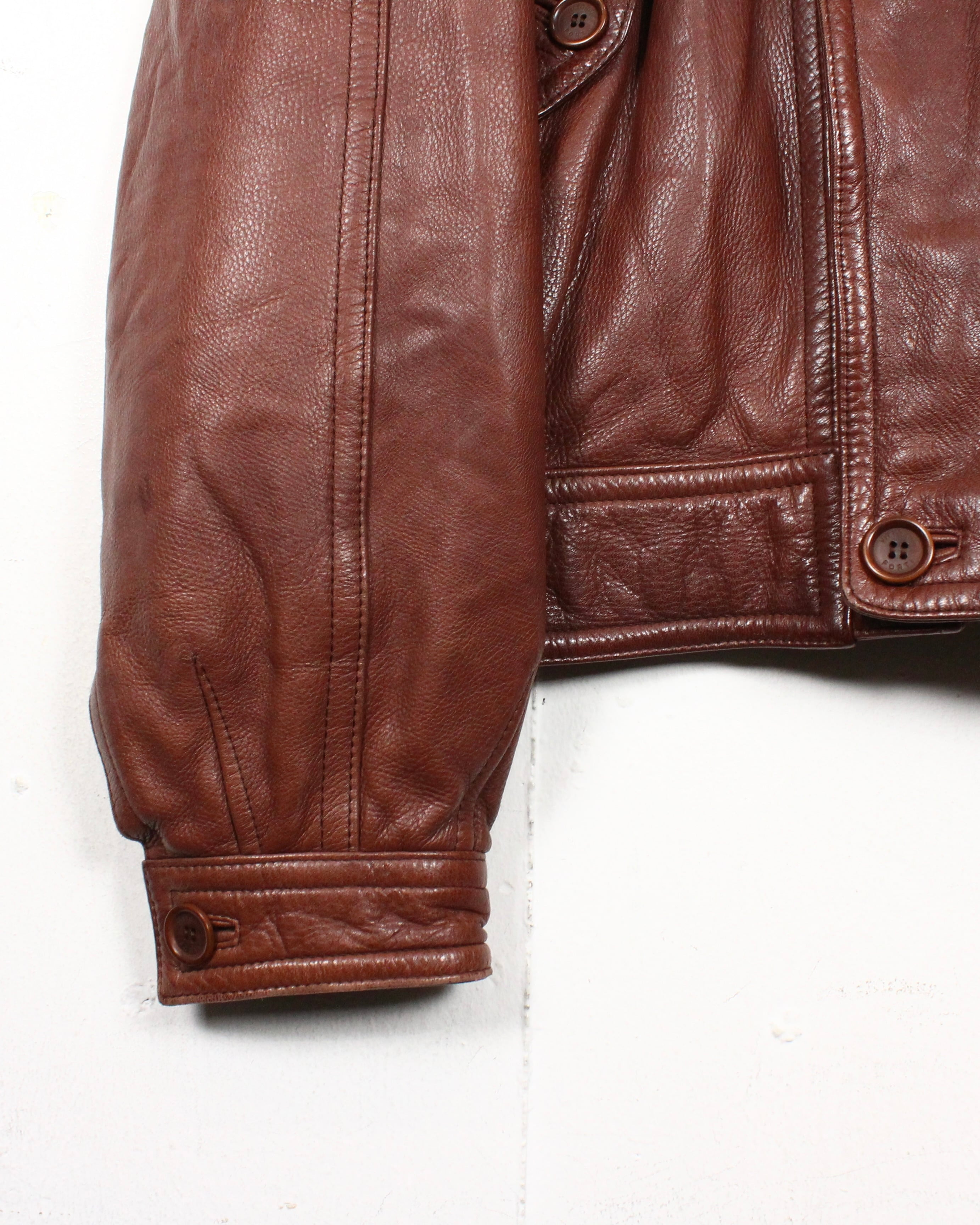 贅沢に使用された上質なレザーは、肉厚ながらもしなやかに身体へと馴染み、経年により磨き上げられた艶感と自然なシボが、唯一無二の品格を宿しています。纏った瞬間に感じる重厚さと柔らかさ、そのどちらもが本物の質の高さを語ってくれる仕上がり。