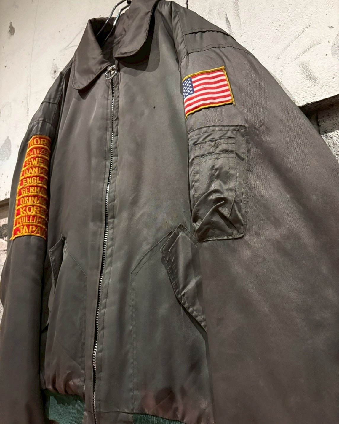 武骨なフライトジャケットのボディをベースに、背面と袖へ贅沢にワッペンと刺繍を施したコリジャンの逸品。