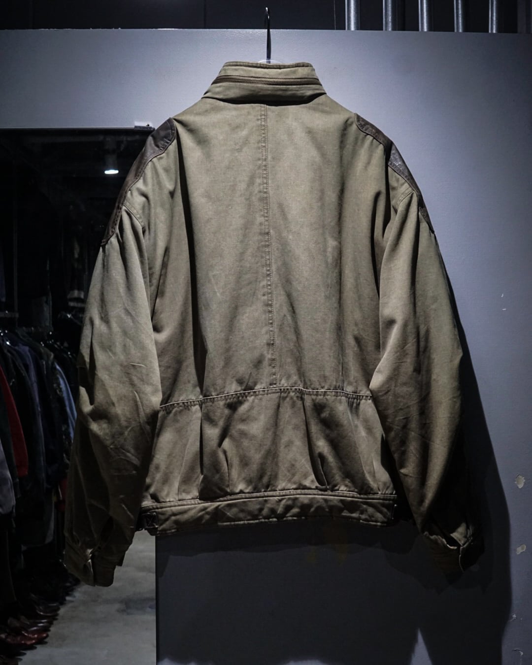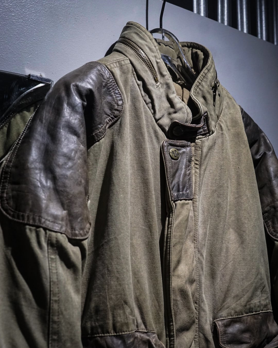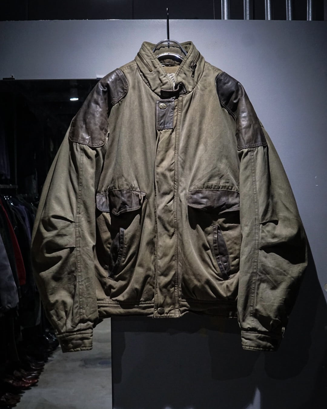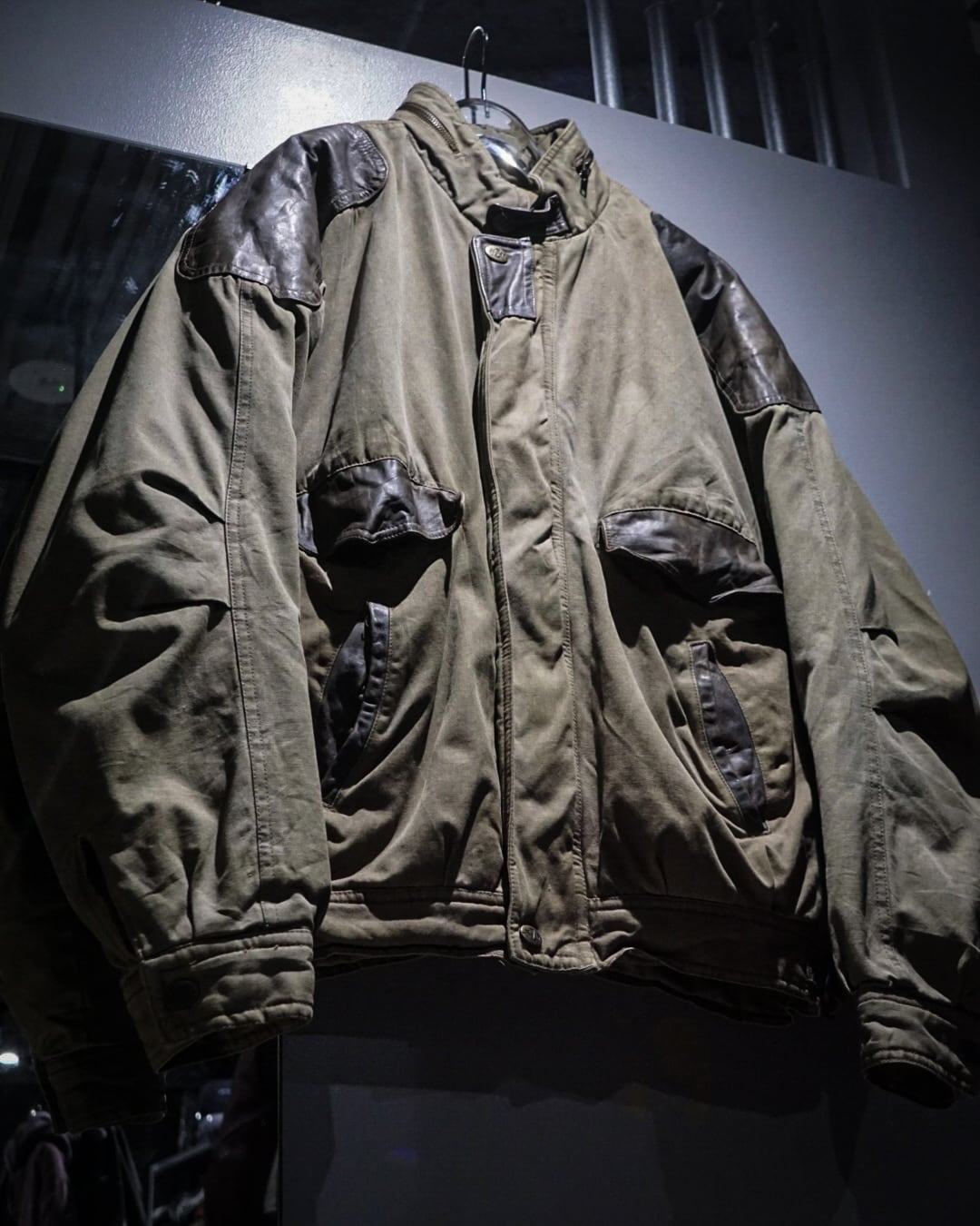 ボディはコットンらしいドライな質感と、経年によって生まれた絶妙なフェード感が魅力。カーキのトーンにレザーの濃淡が重なり、USEDならではの奥深い表情に仕上がっています。