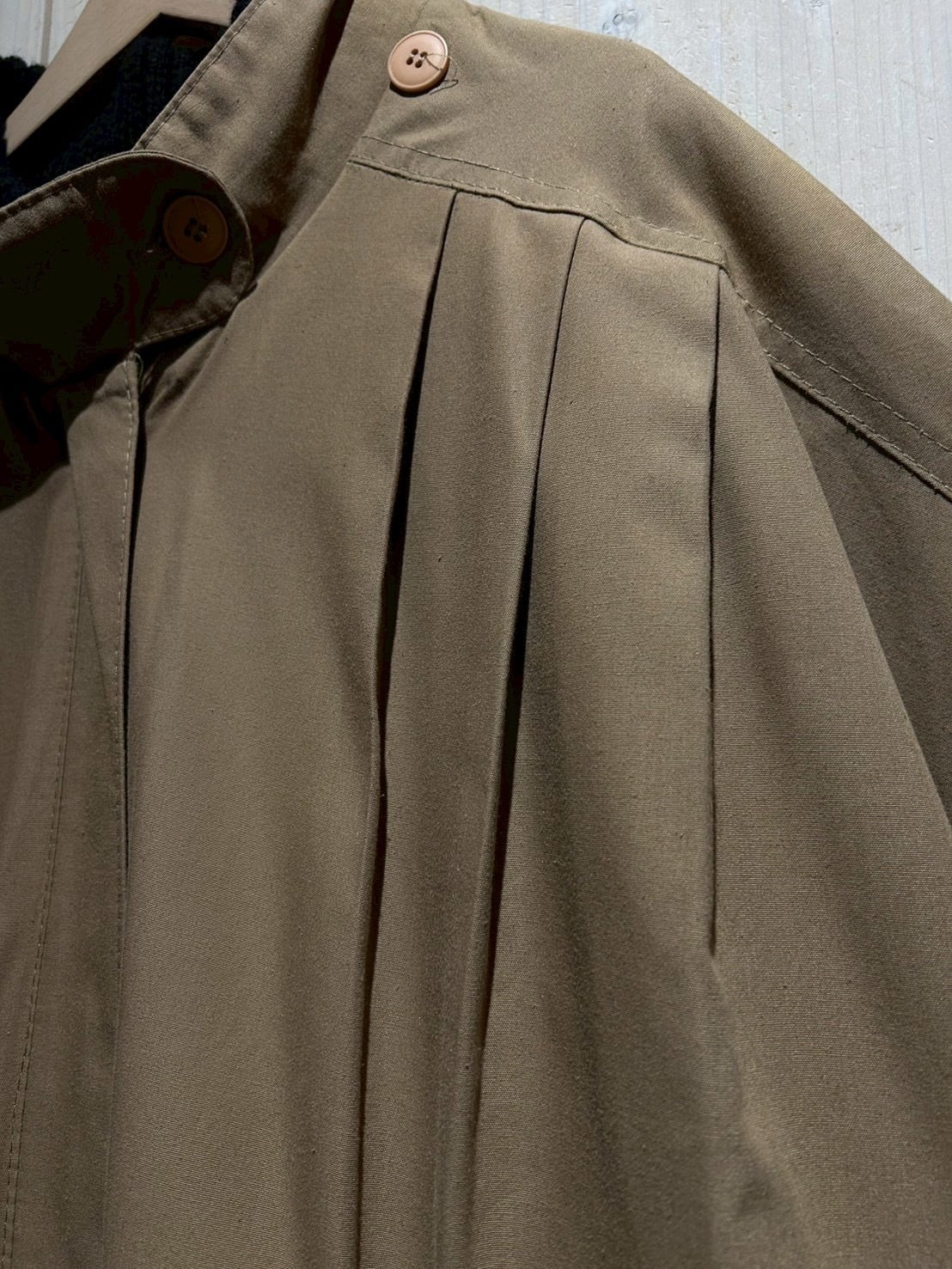 ベージュ面はドライな質感のコットン生地を使用し、程よいハリが生む立体的なドレープが魅力。肩に入るタックが雰囲気を引き上げています。