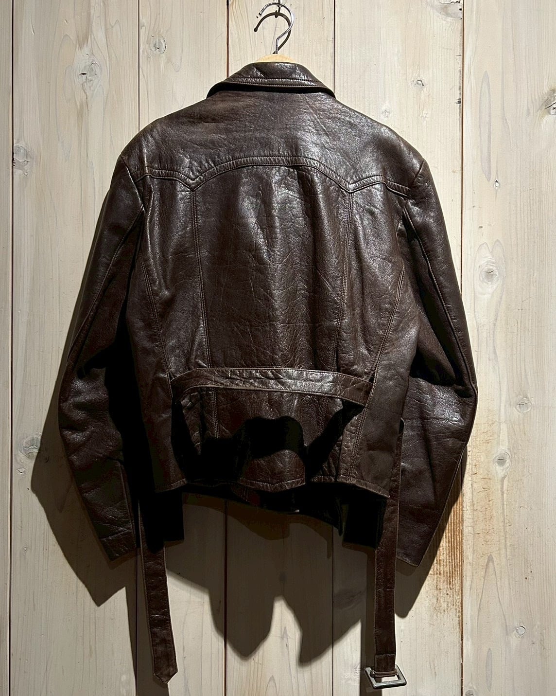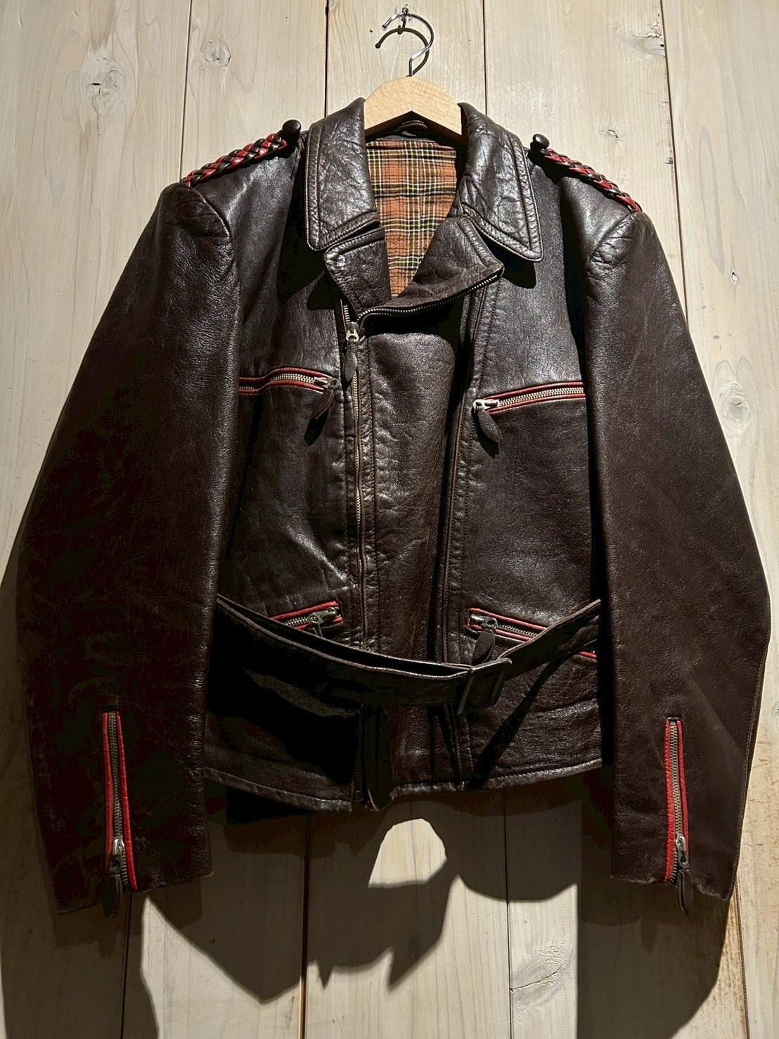 美しい光沢を放つ上質なブラウンレザーに、随所のパイピング使いや稀有なディテールが載せられた年代物ならではのオーラが宿った、ドイツ製、60'sヴィンテージのライダースジャケット。