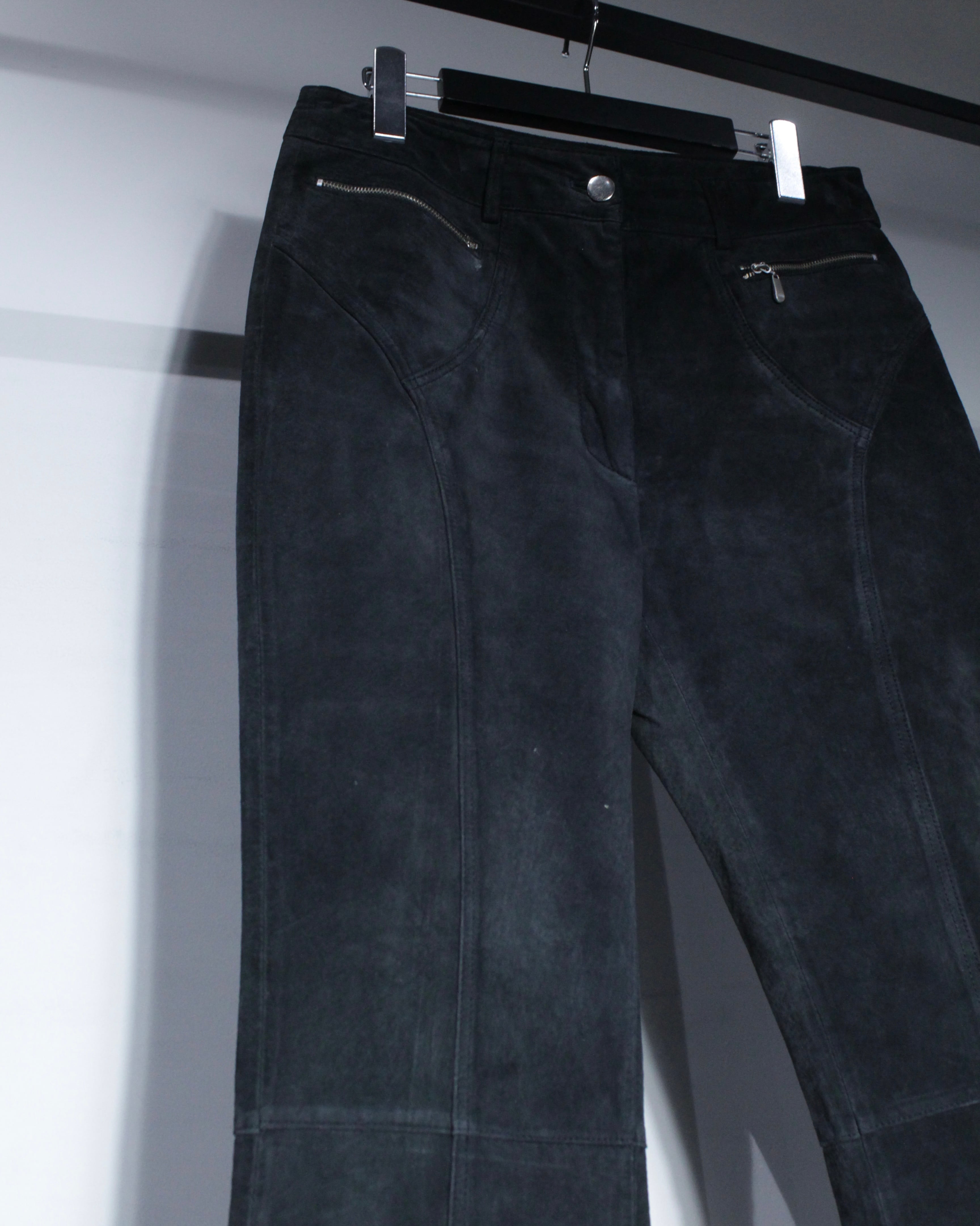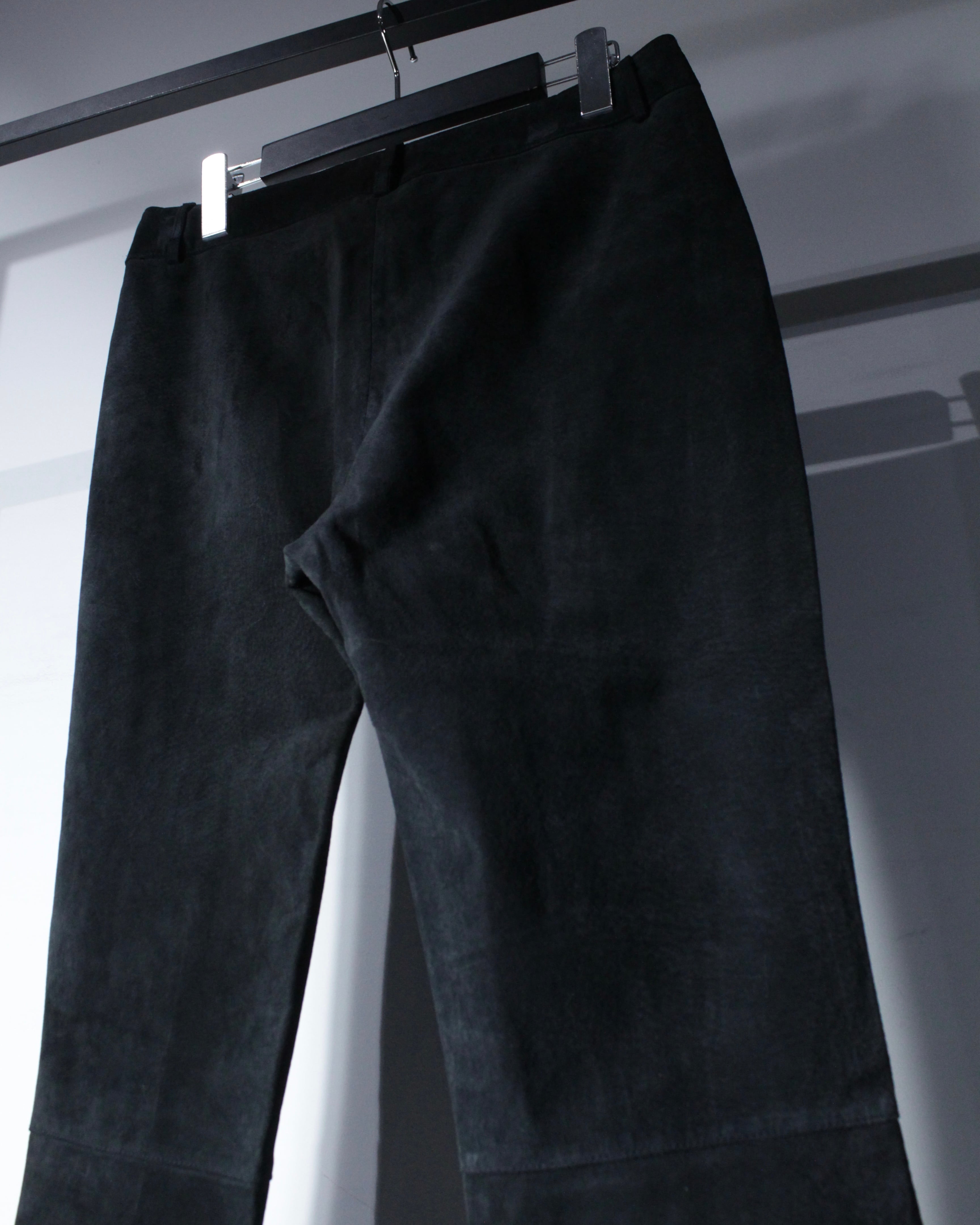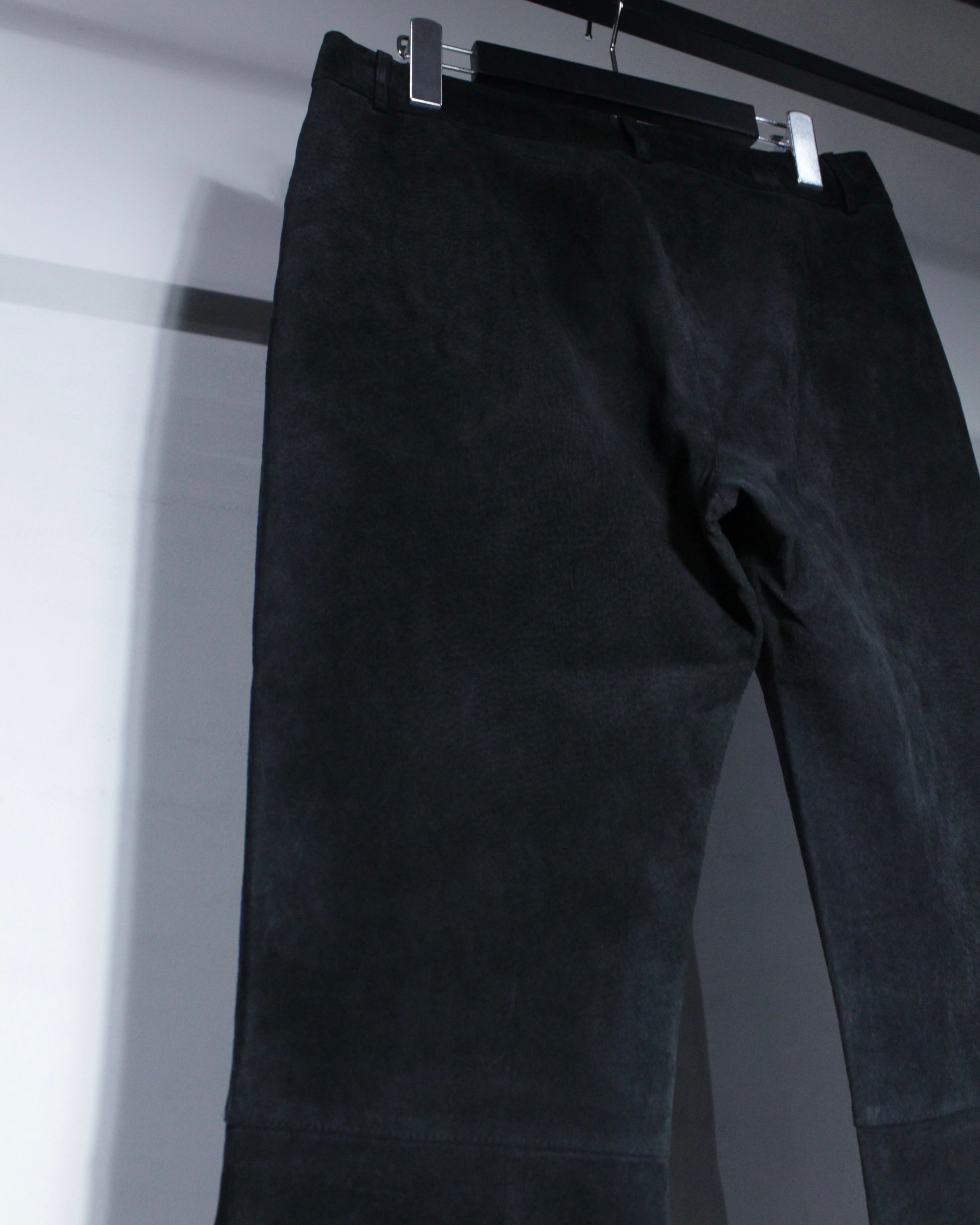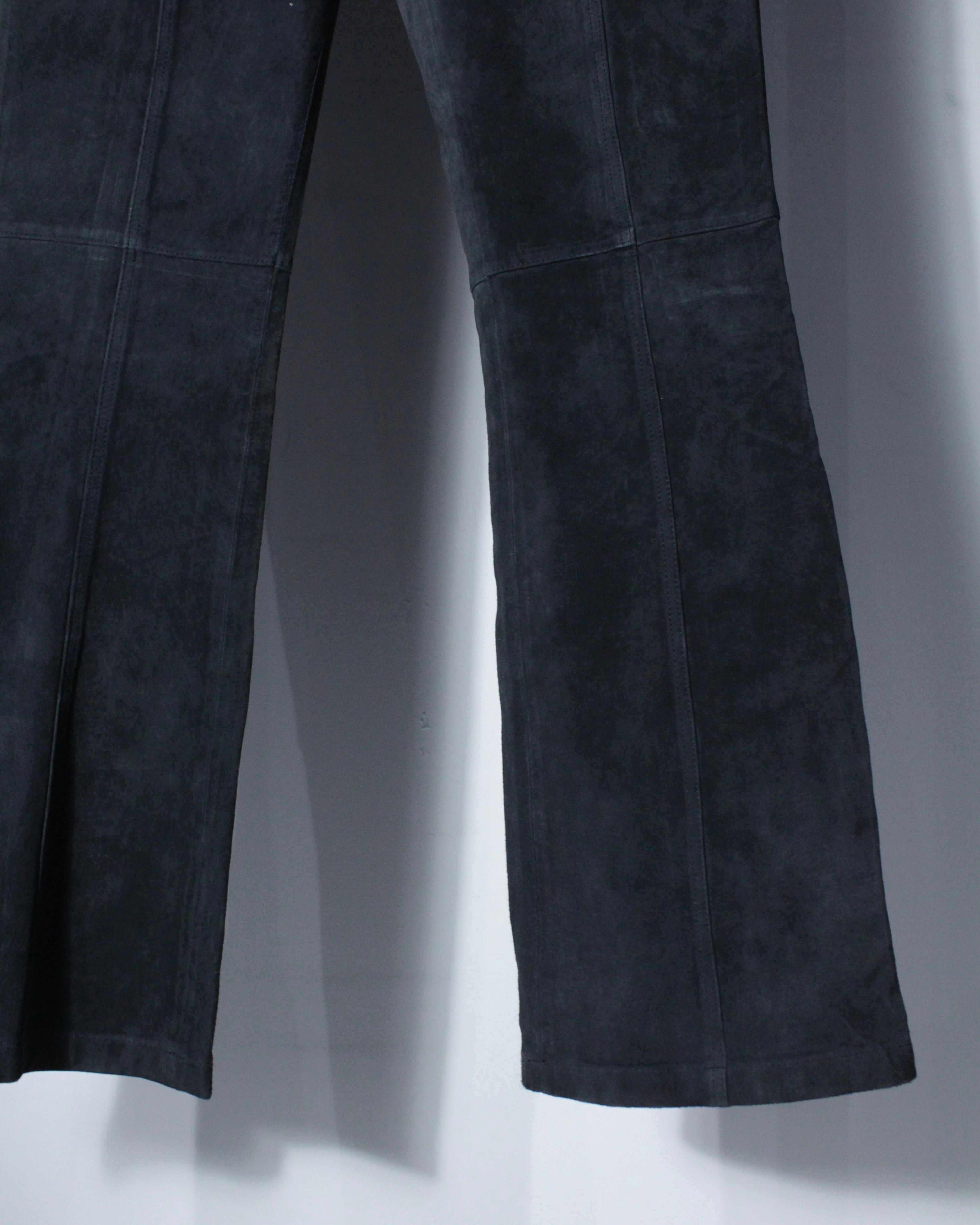 しっとりとした質感のスエードレザーを贅沢に用いたフレアパンツ。
