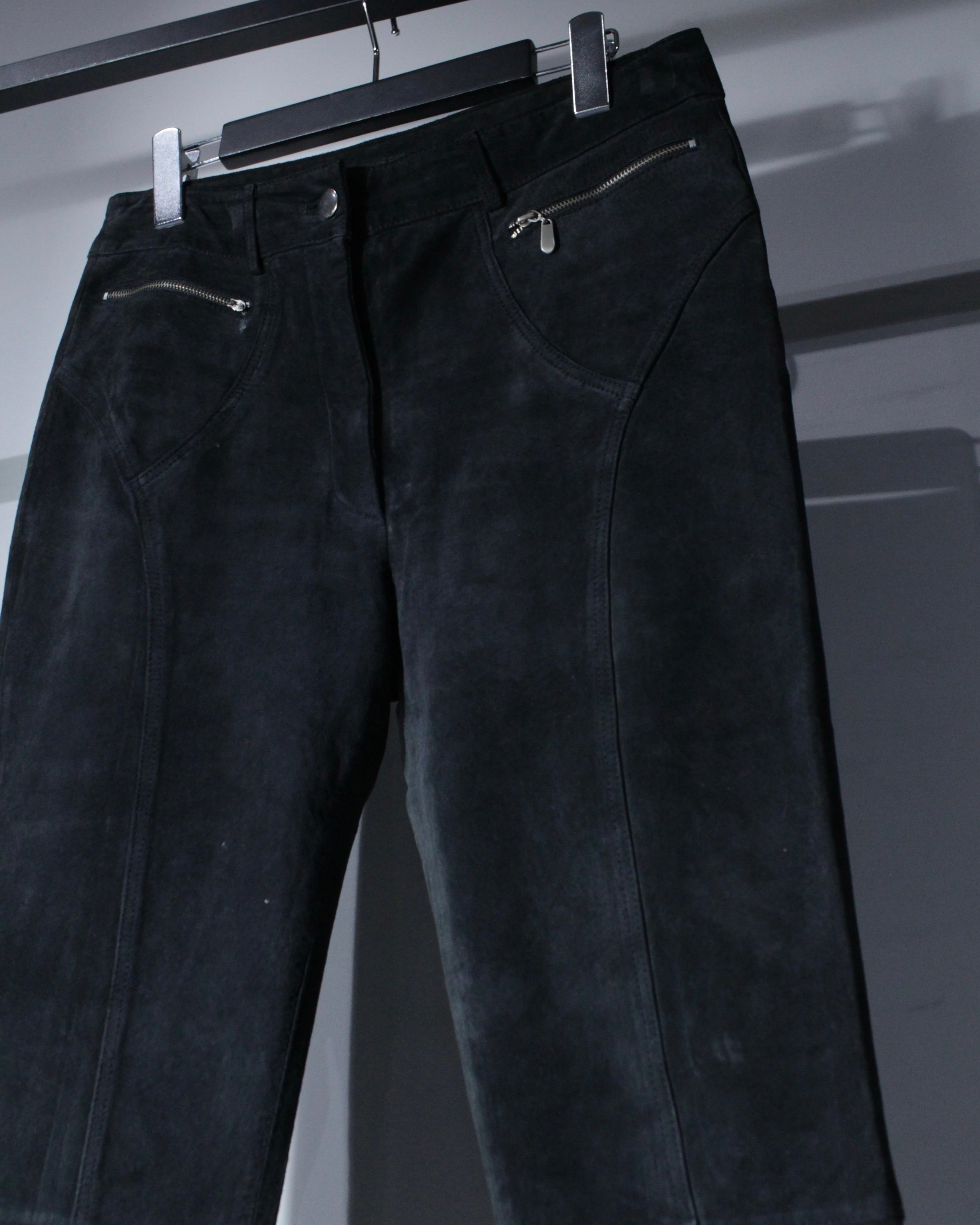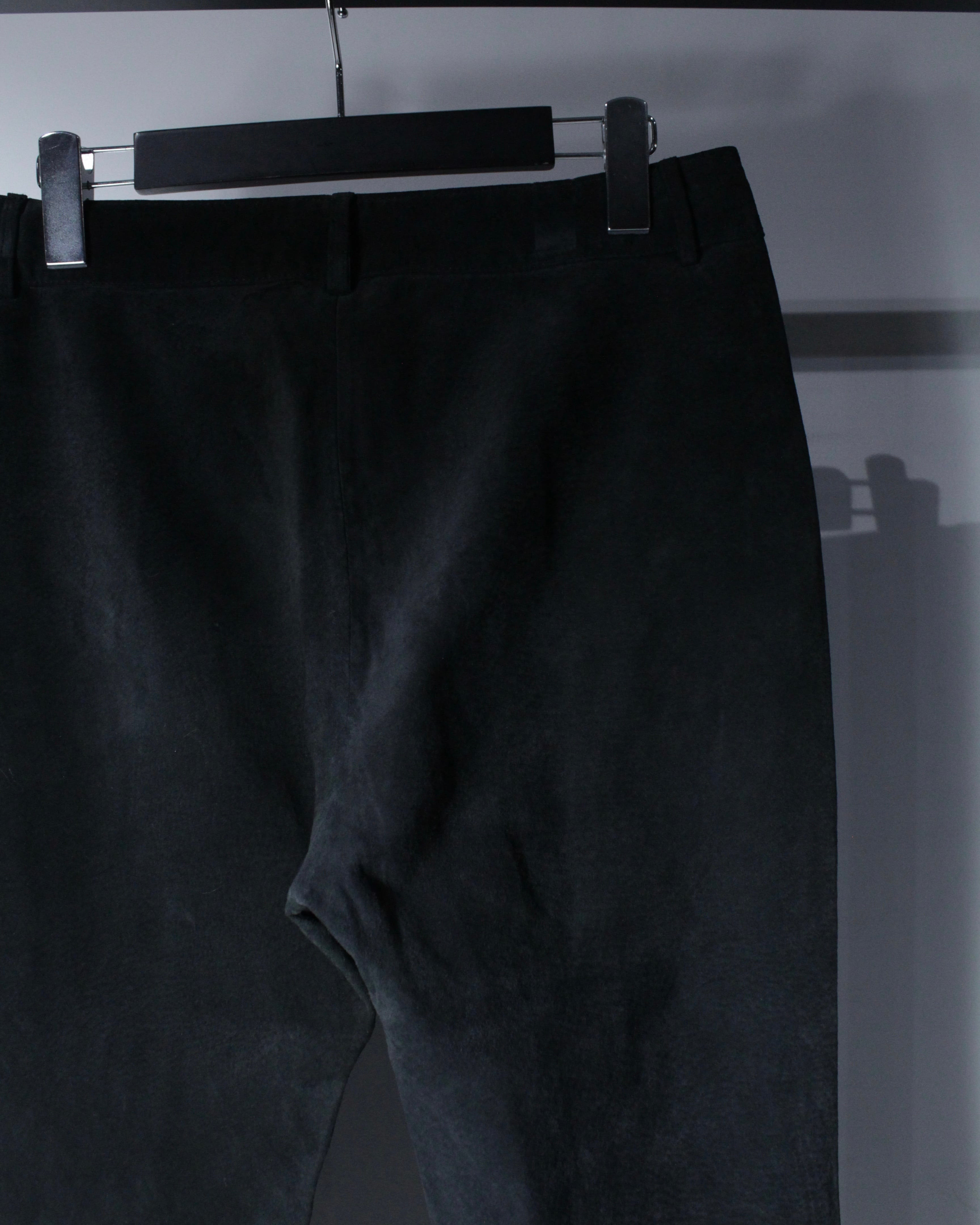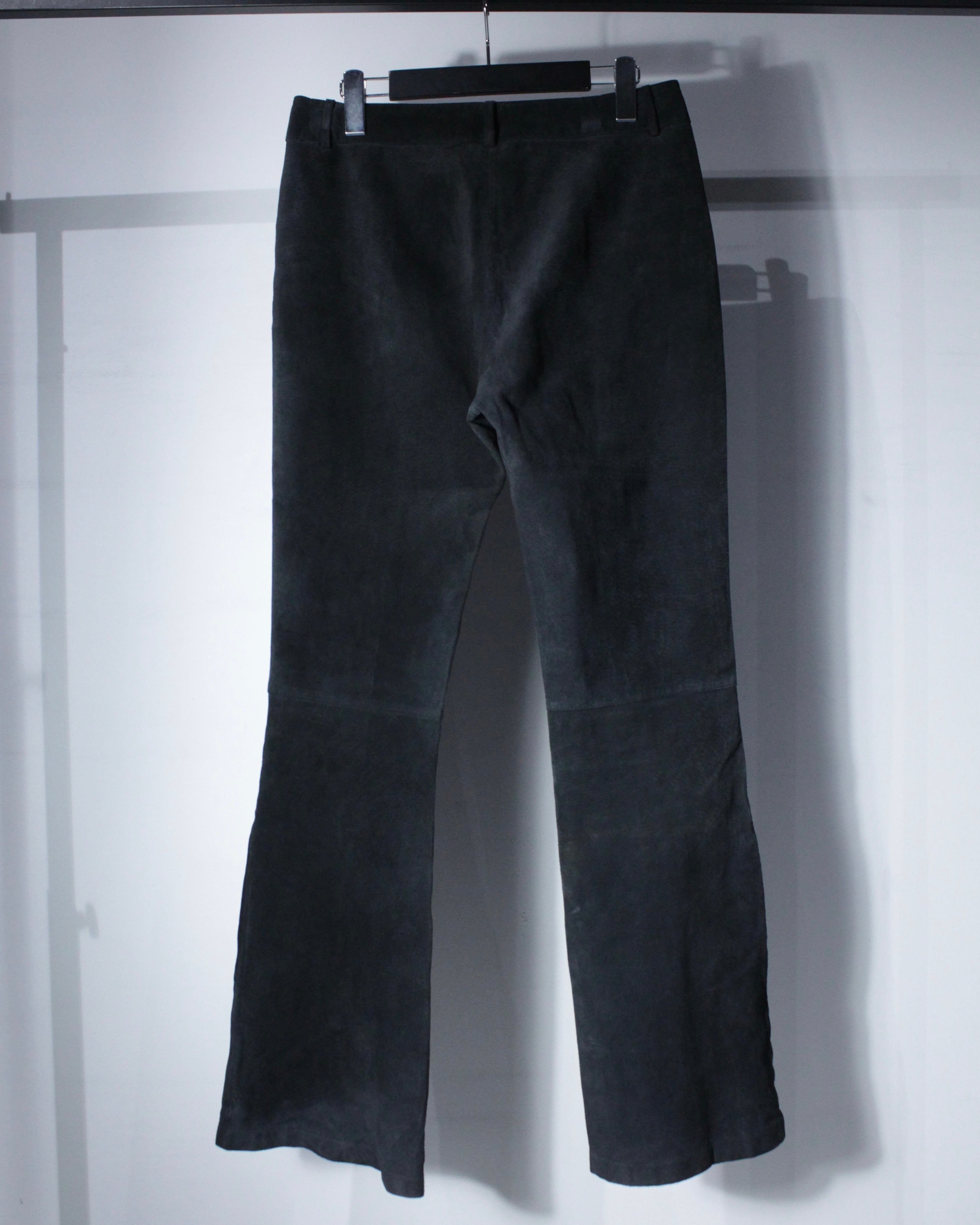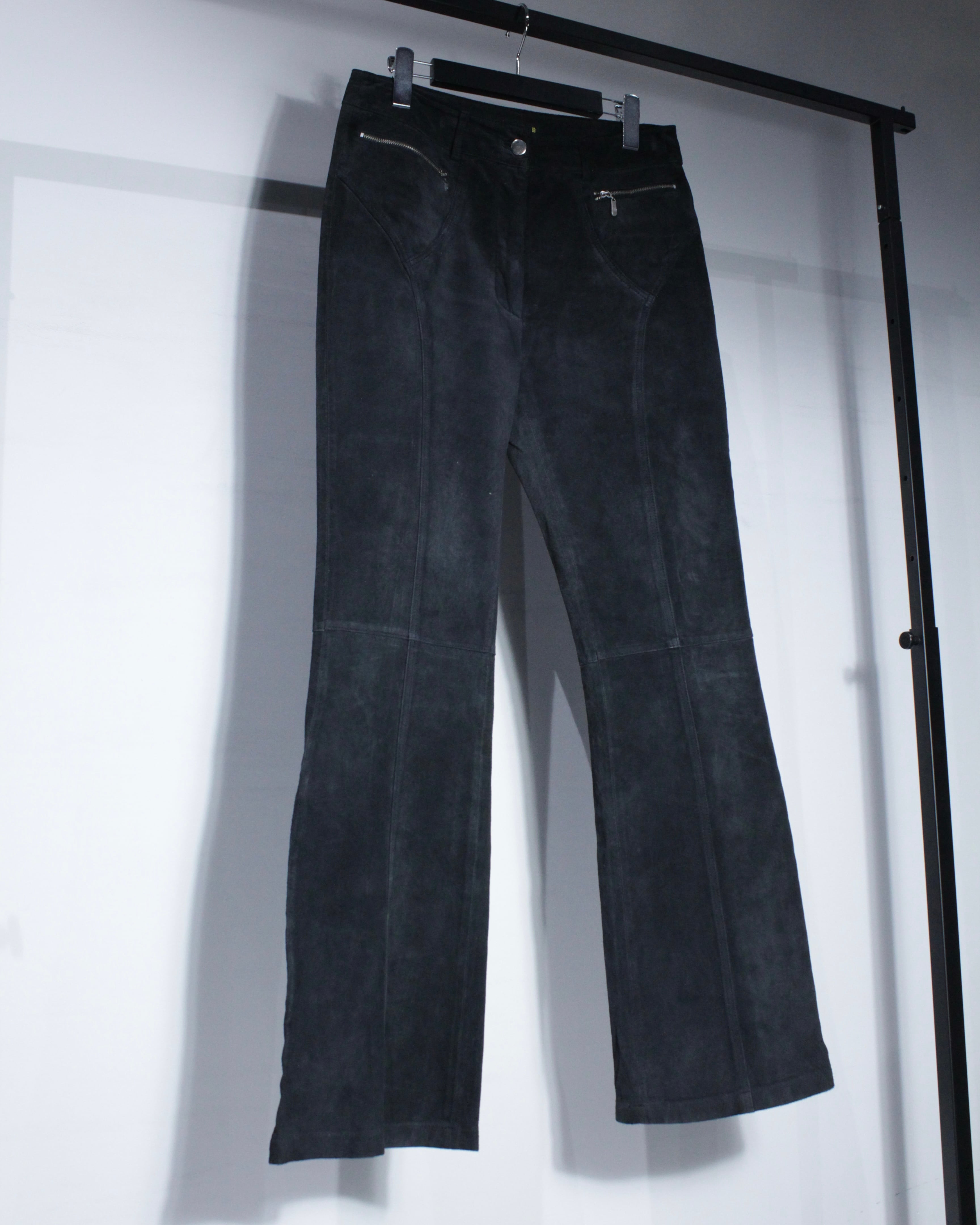 しっとりとした質感のスエードレザーを贅沢に用いたフレアパンツ。