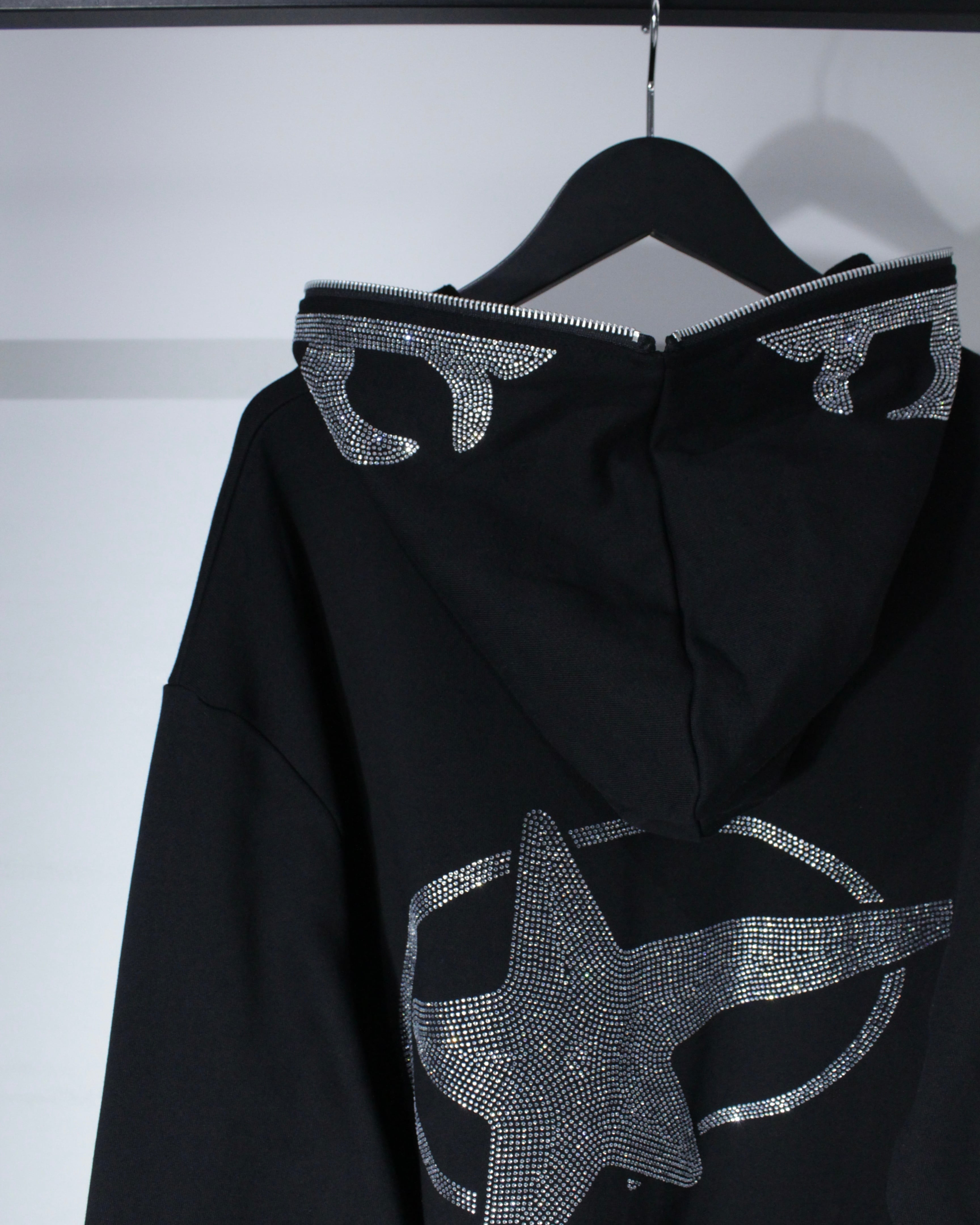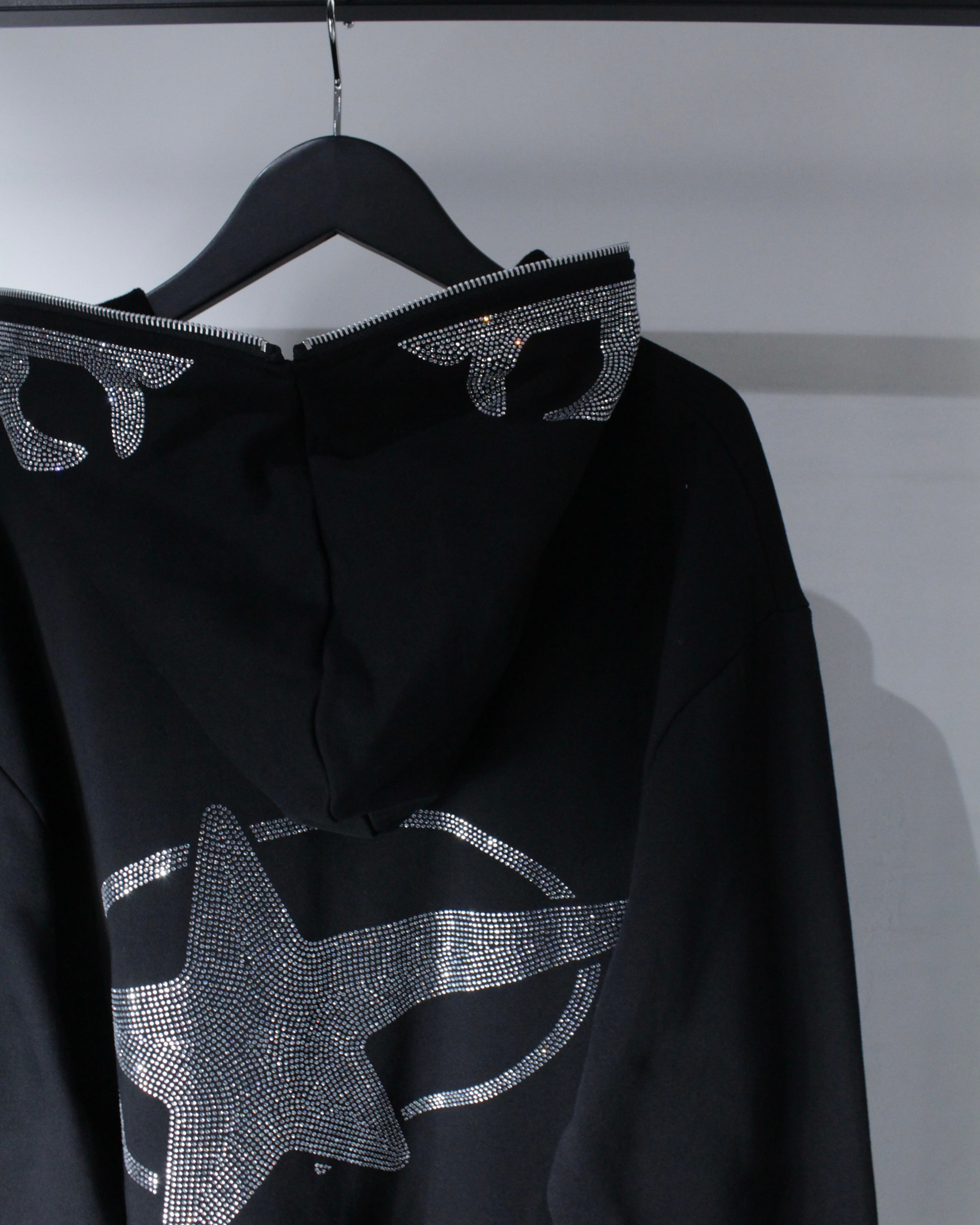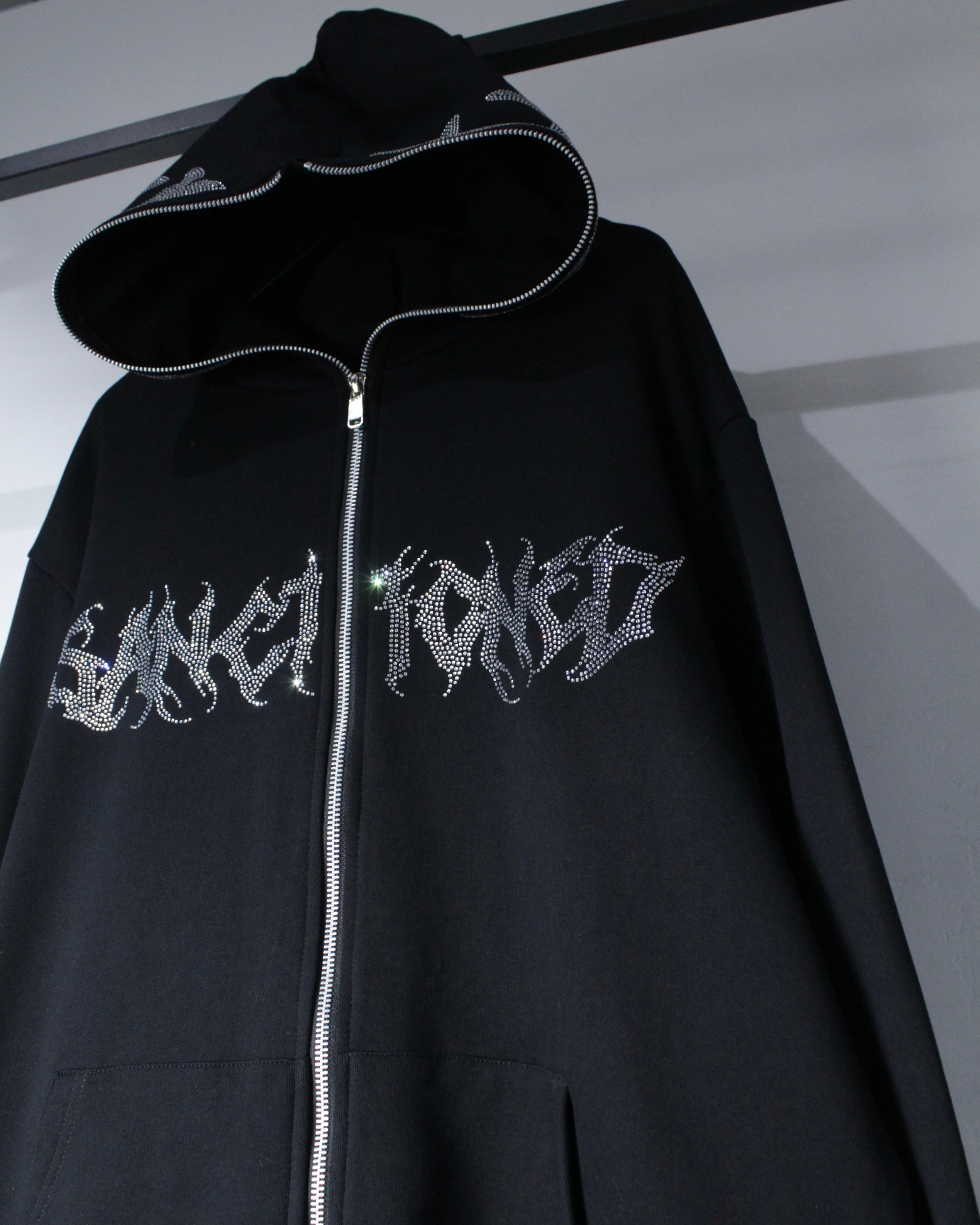 煌びやかなストーンワークを大胆に配した、存在感抜群のフルジップフーディです。