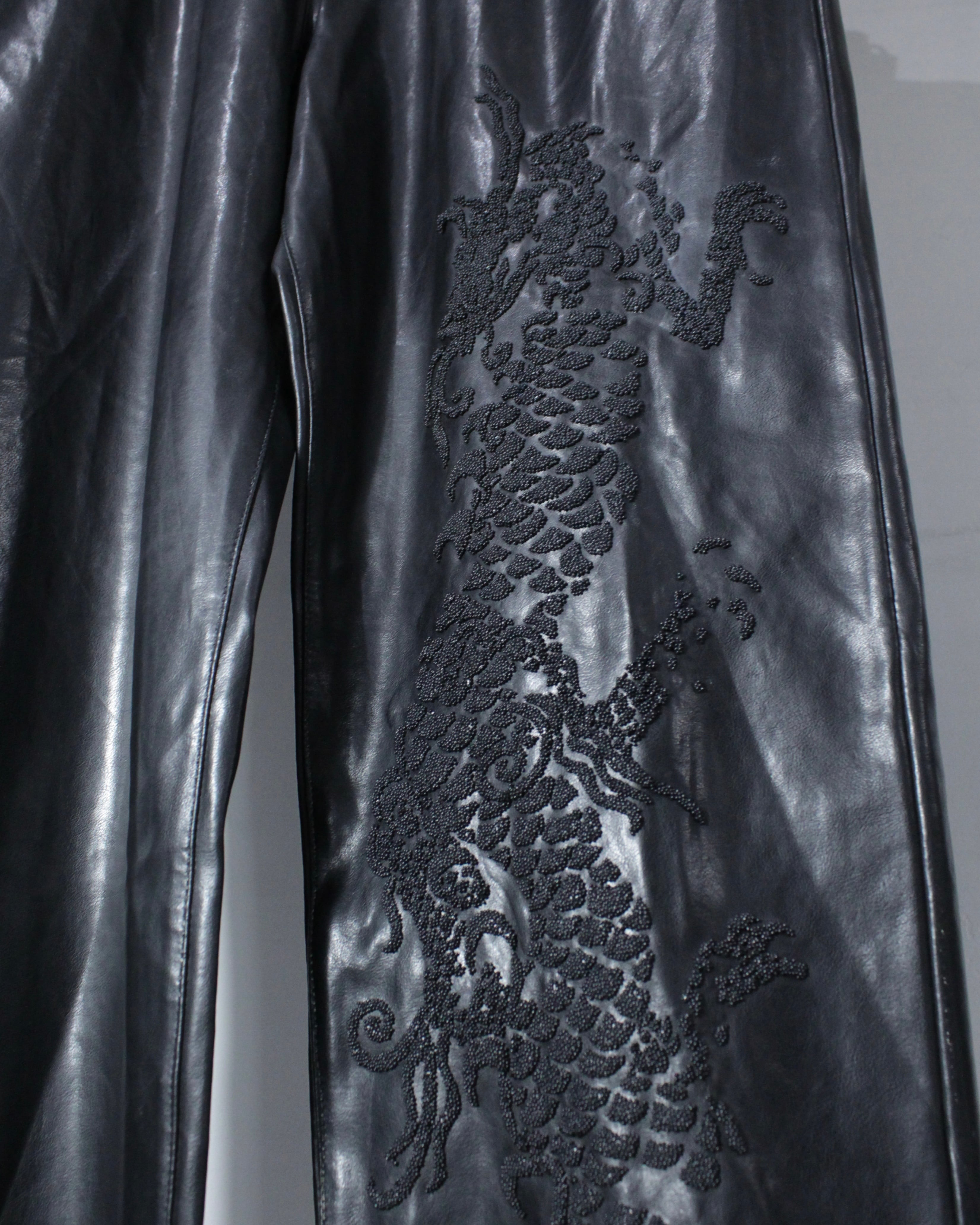 左足に大きく走る“龍”のデコレーションは細部まで緻密で、光の角度でさりげなく表情を変えながら強烈なアクセントとして存在感を放ちます。