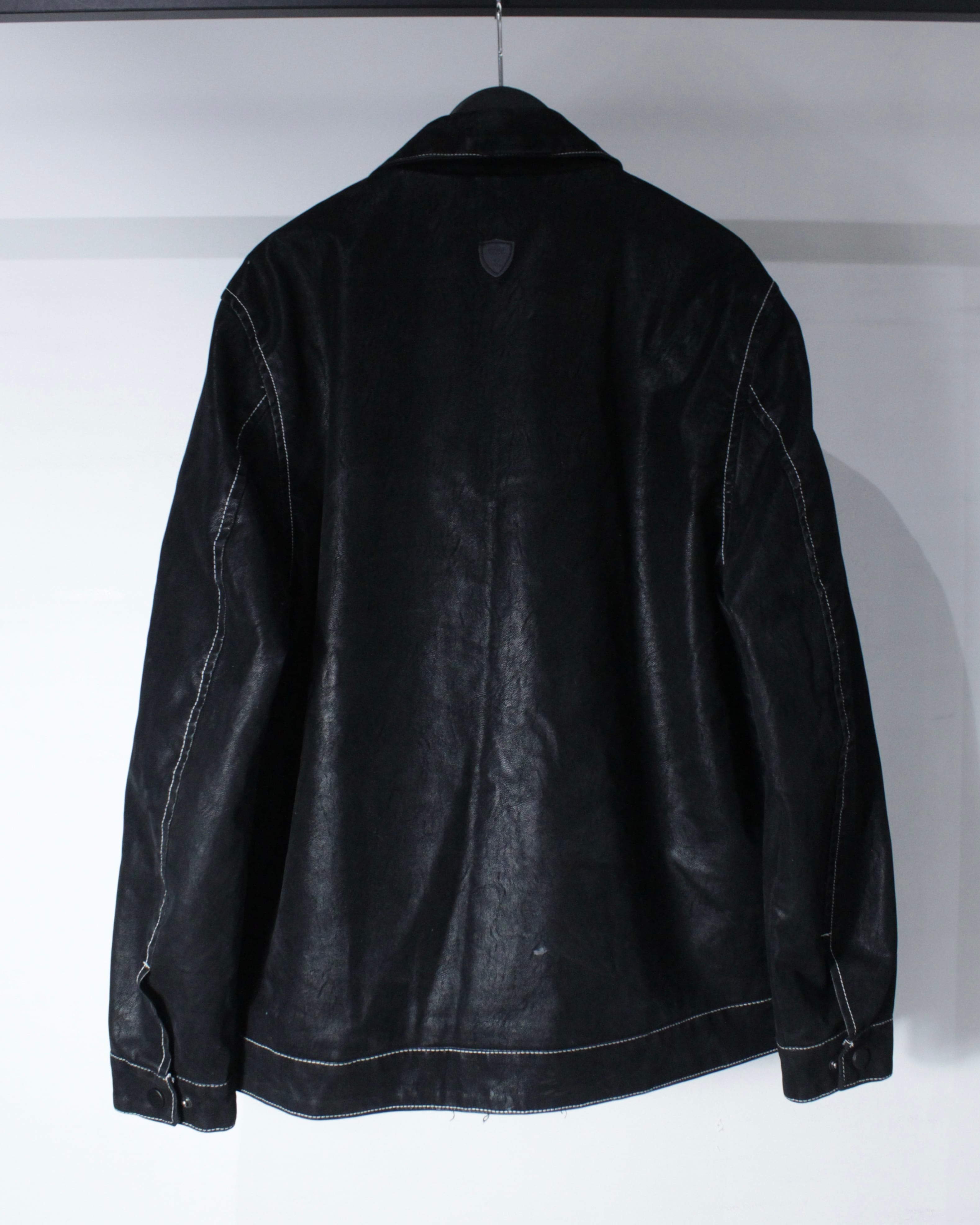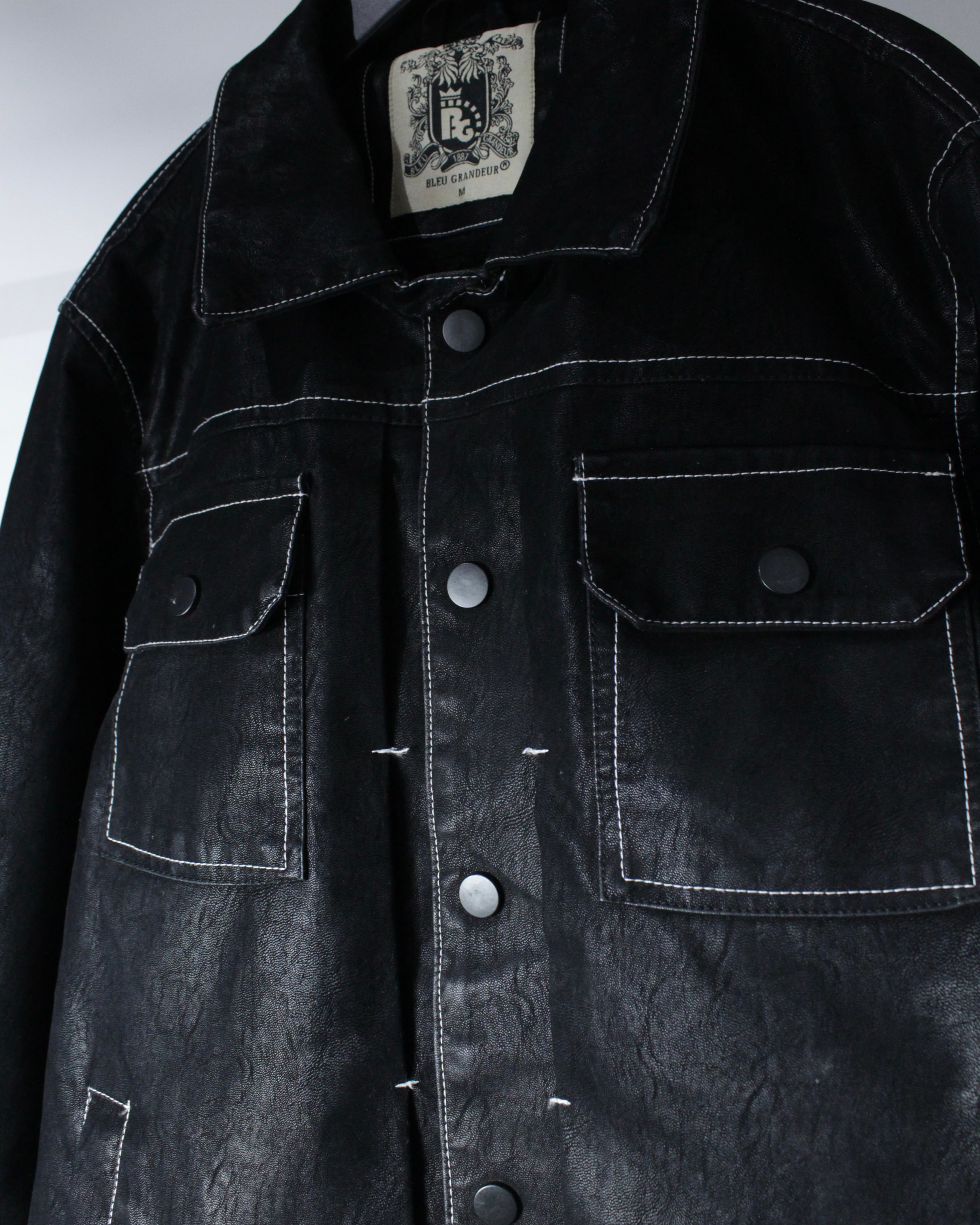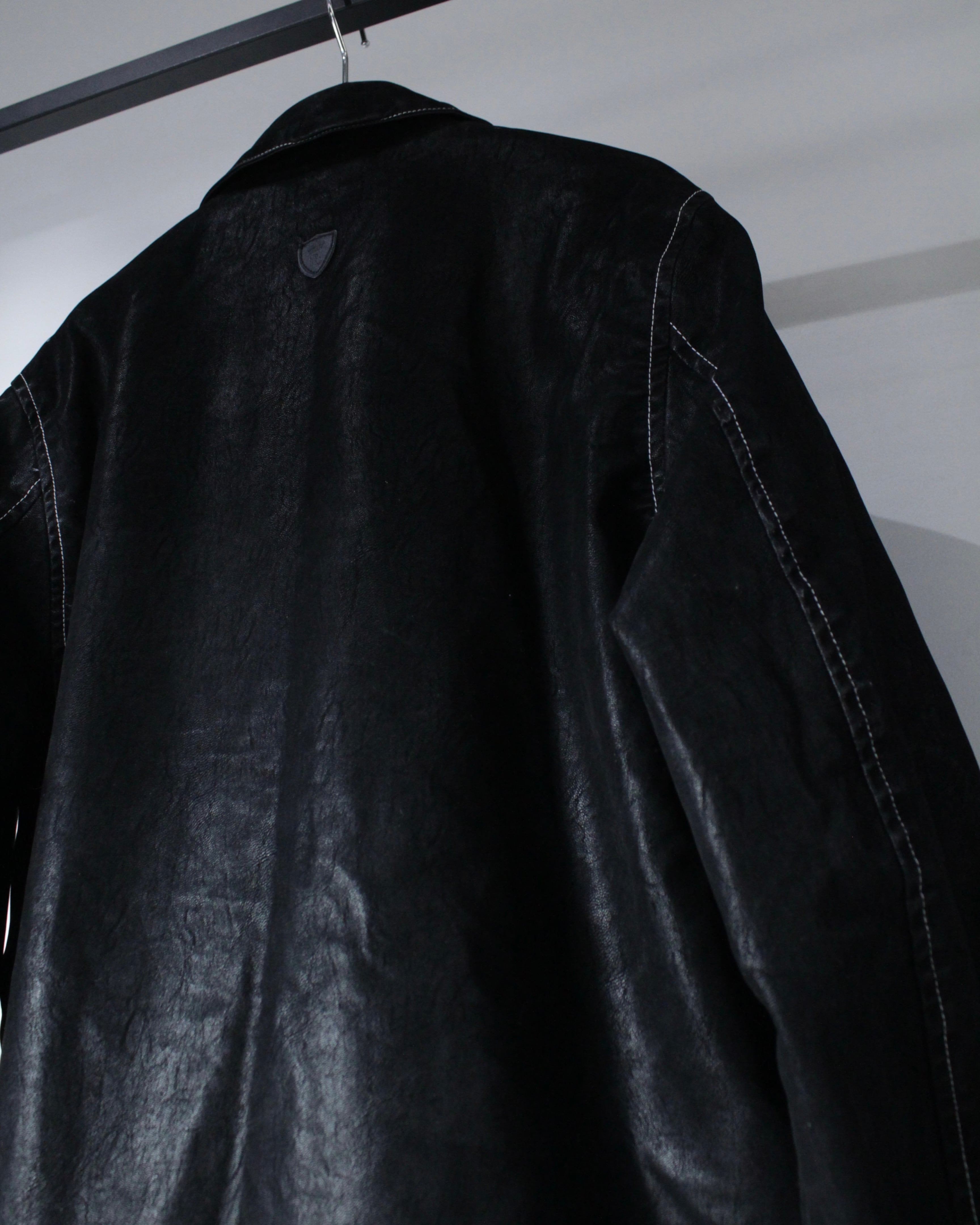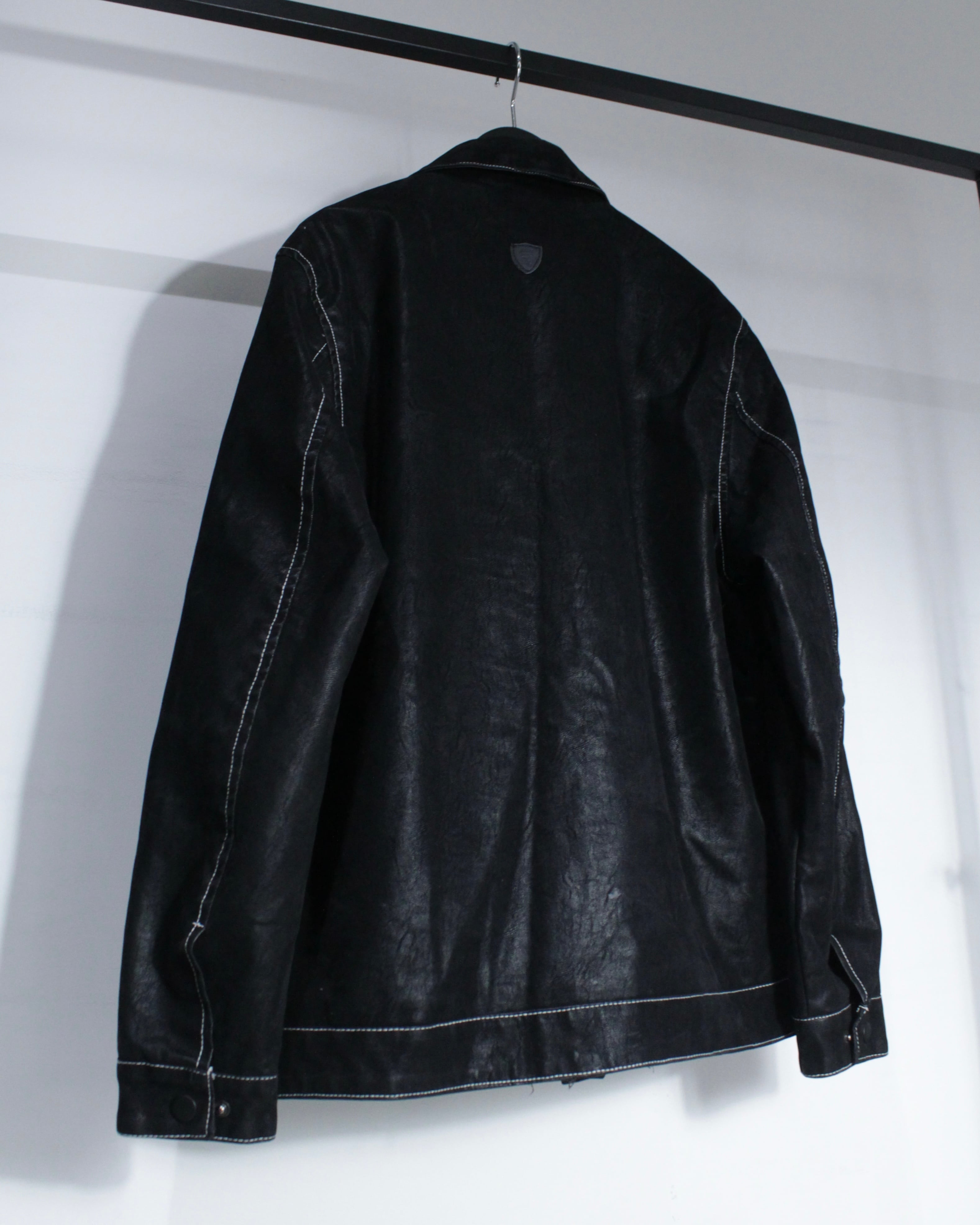 無骨さと端正さのバランスが絶妙な、コーティング風トラッカー型ジャケット。