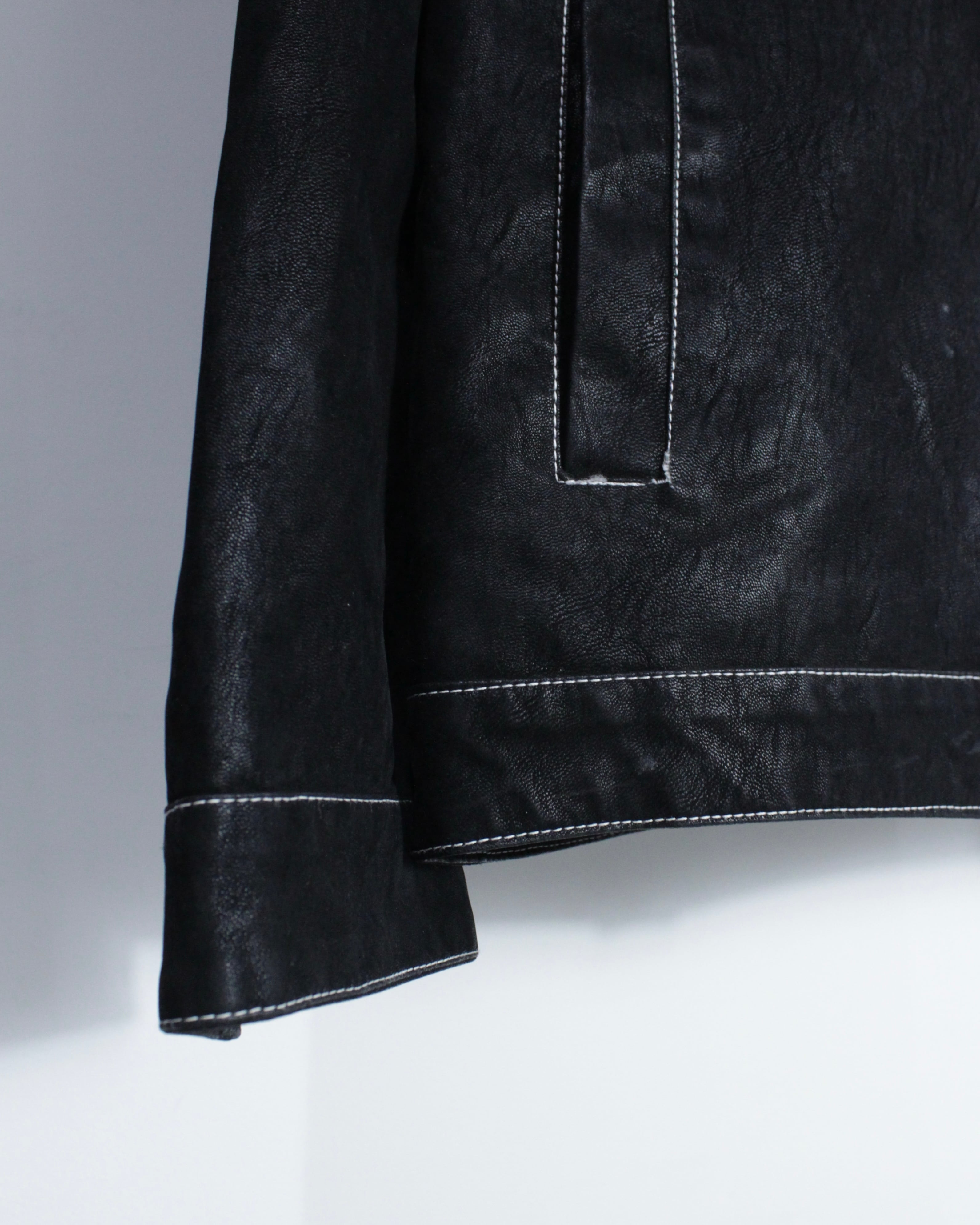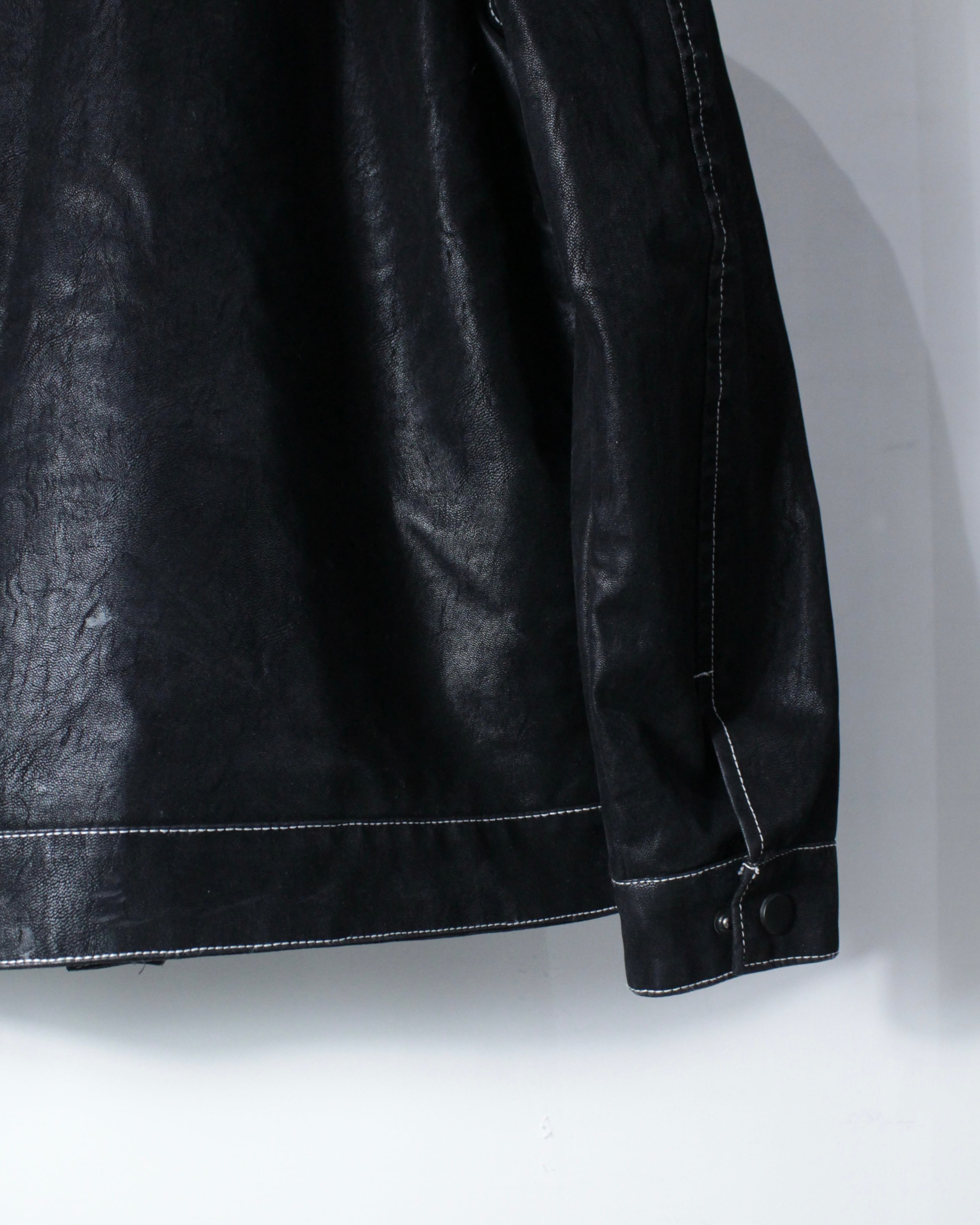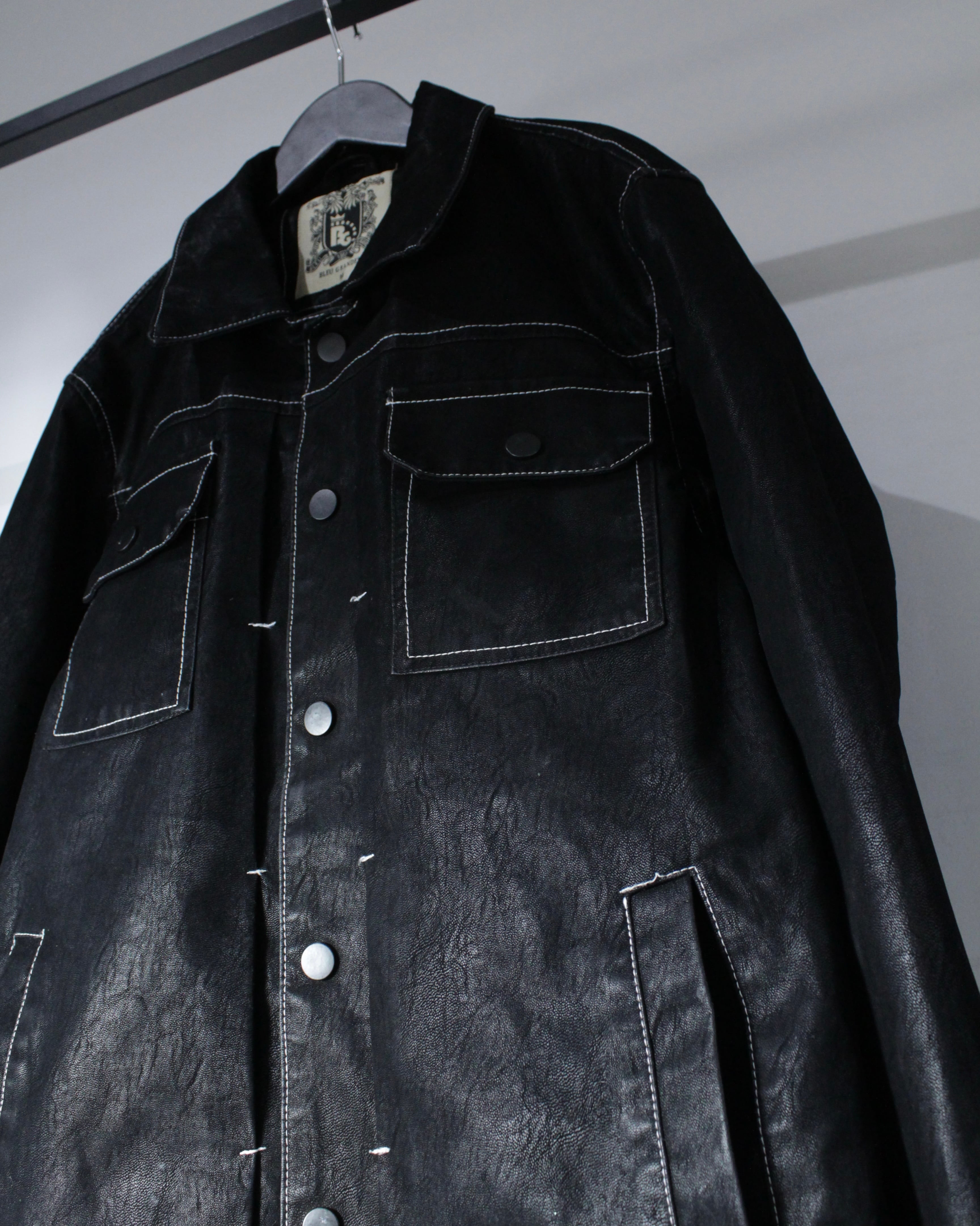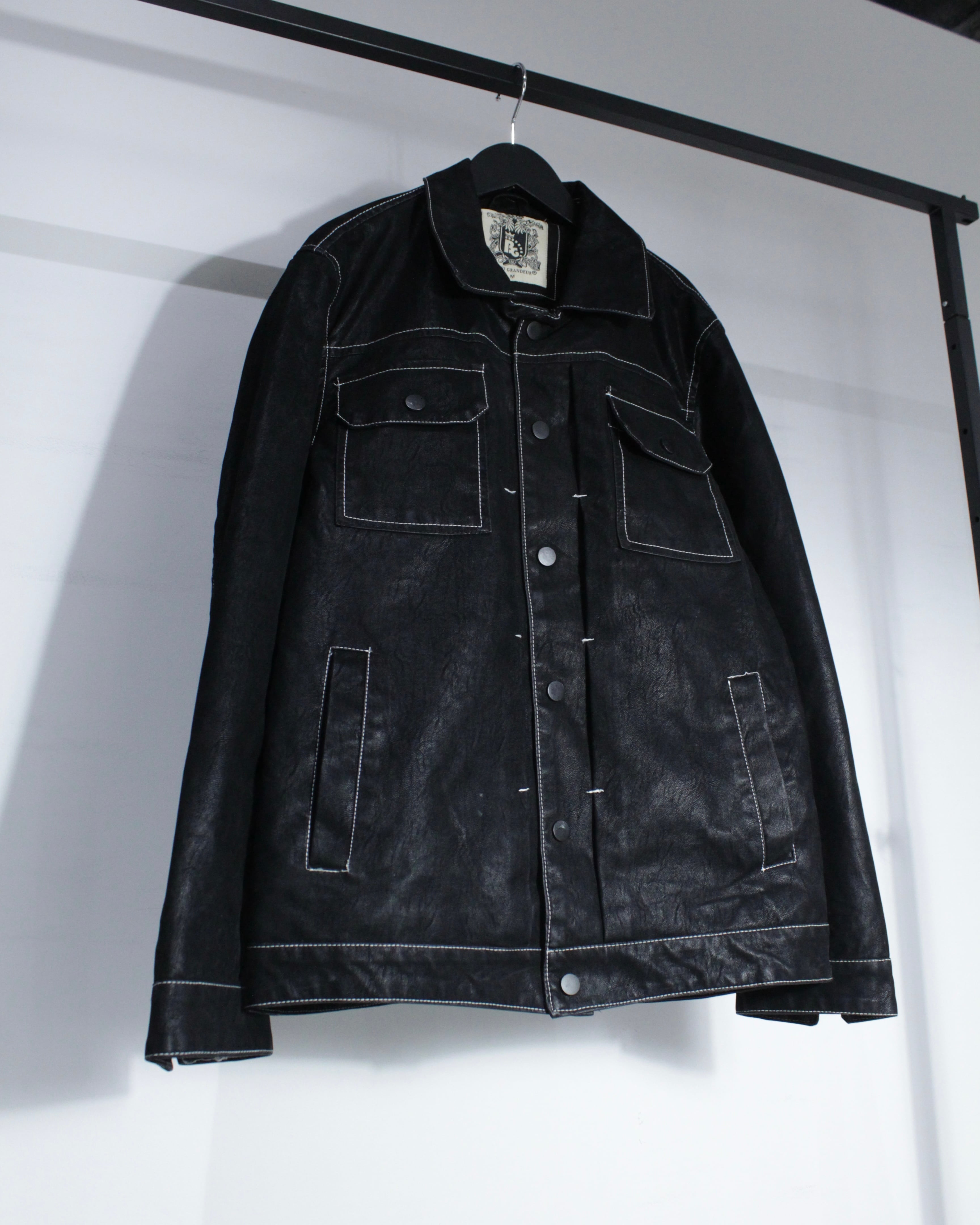 無骨さと端正さのバランスが絶妙な、コーティング風トラッカー型ジャケット。