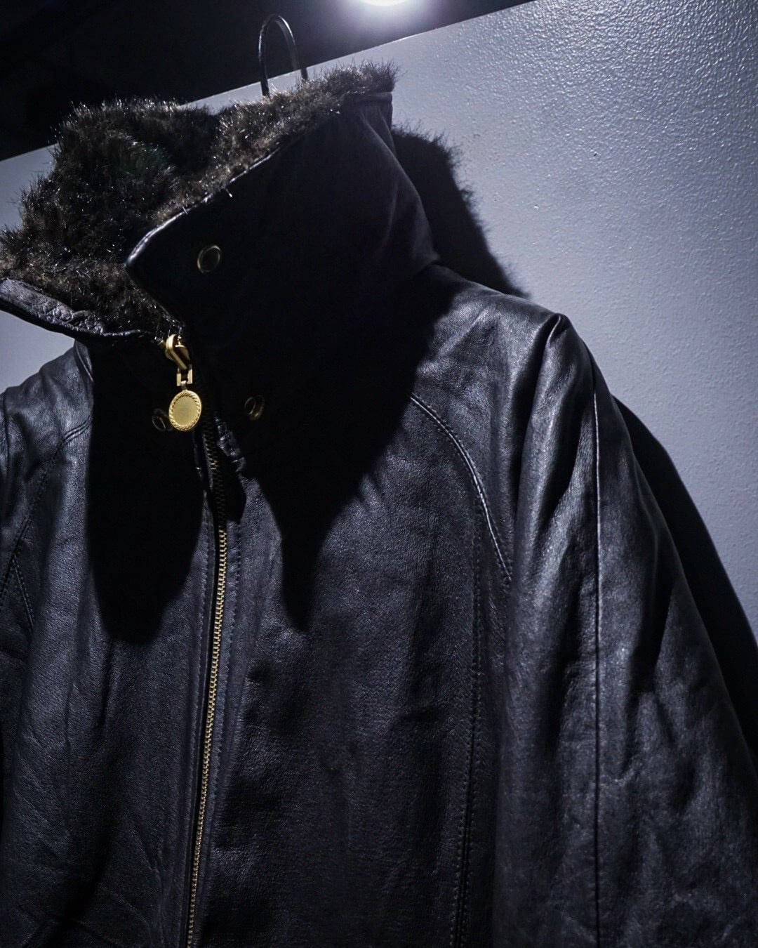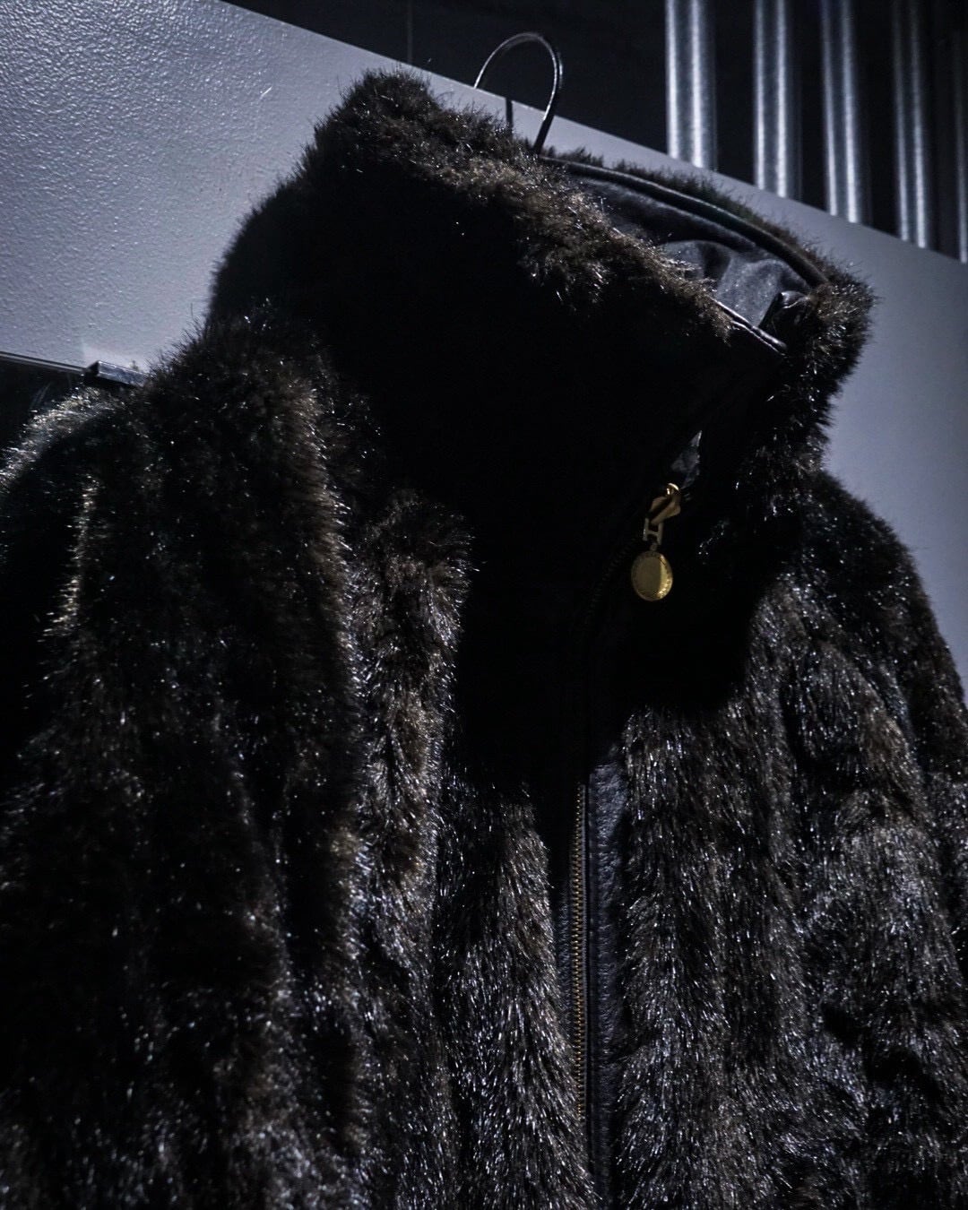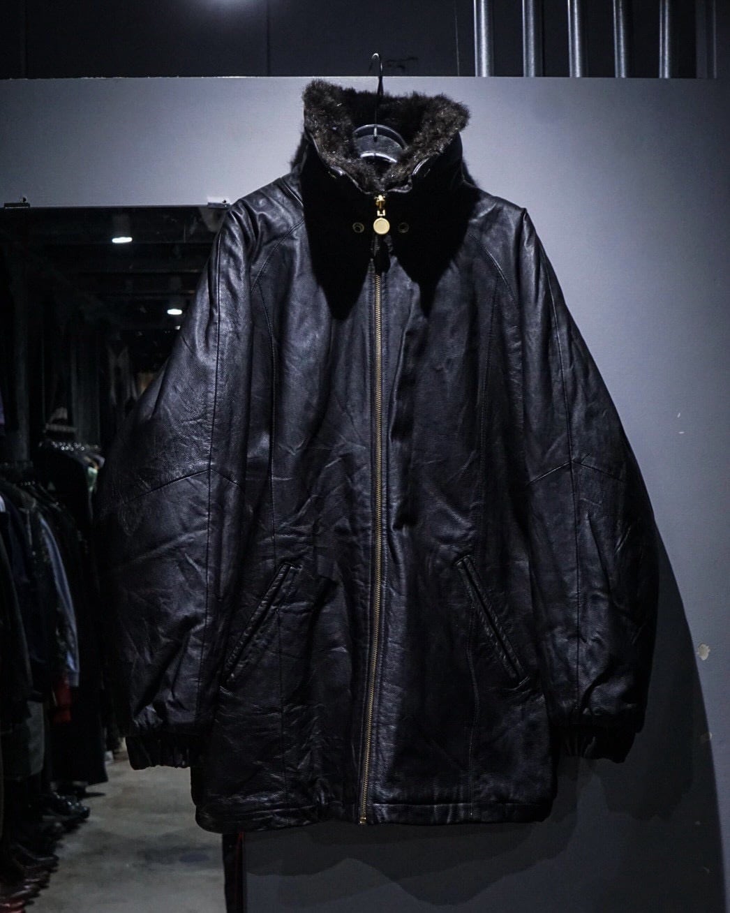 黒のレザーボディと毛足の長いフェイクファーを組み合わせた、極めて稀少な両A面といっても差し支えないリバーシブル仕様のフルジップジャケット。