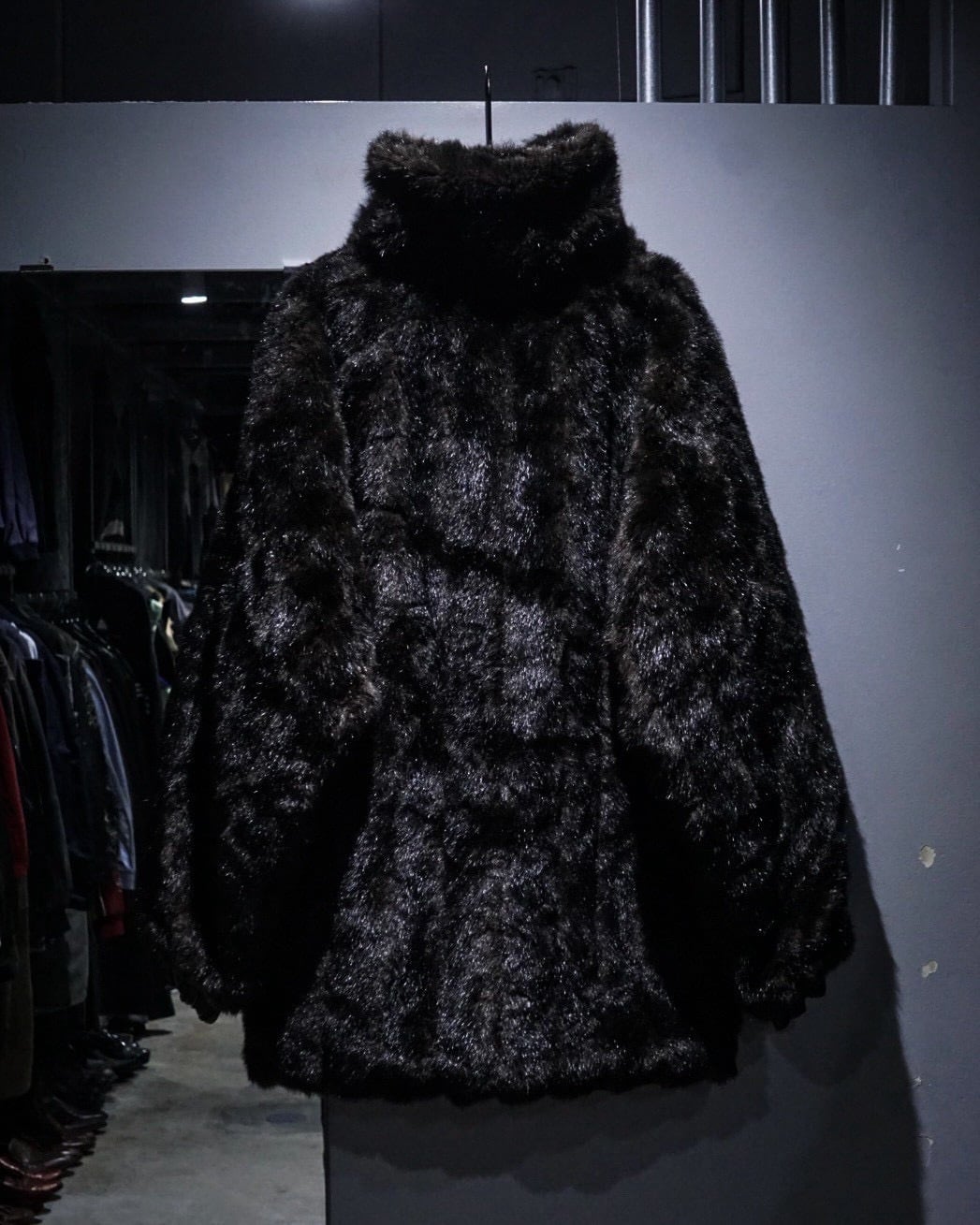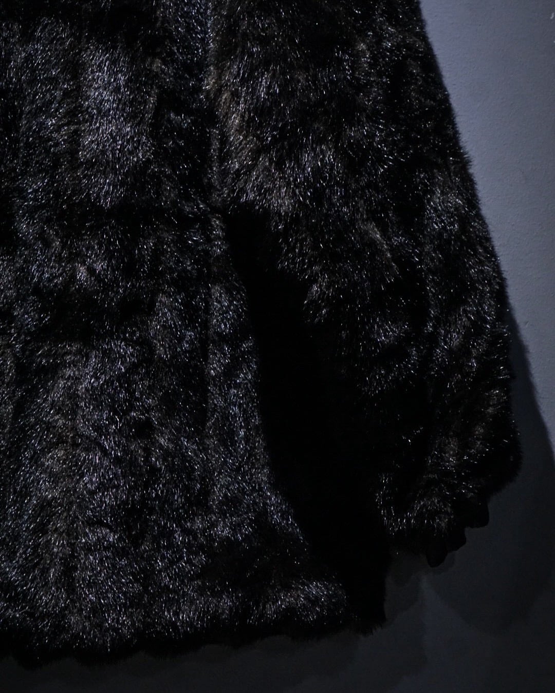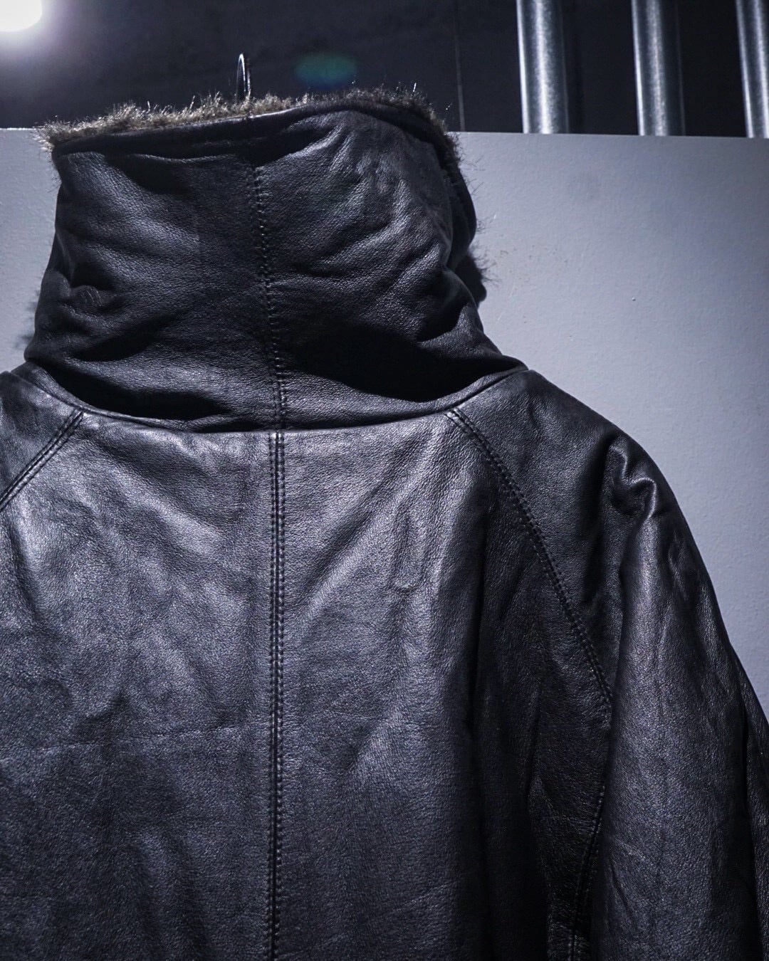 黒のレザーボディと毛足の長いフェイクファーを組み合わせた、極めて稀少な両A面といっても差し支えないリバーシブル仕様のフルジップジャケット。