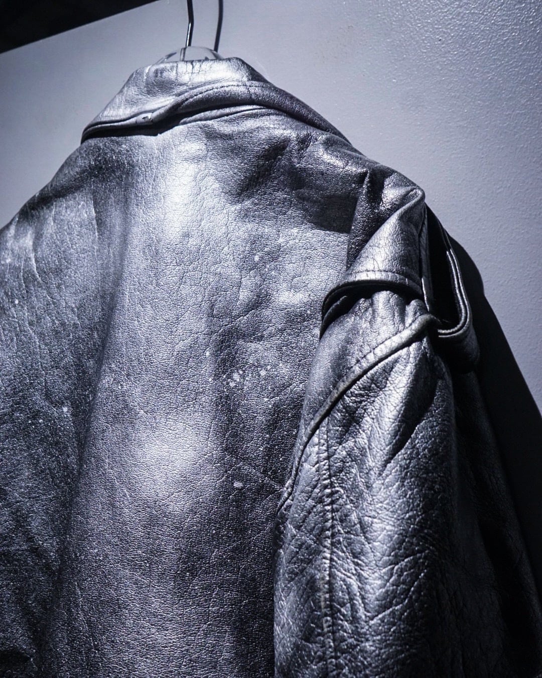 無骨な雰囲気を漂わせるダブルライダースに、シルバーのペイントカスタムを施した、圧巻の1着。