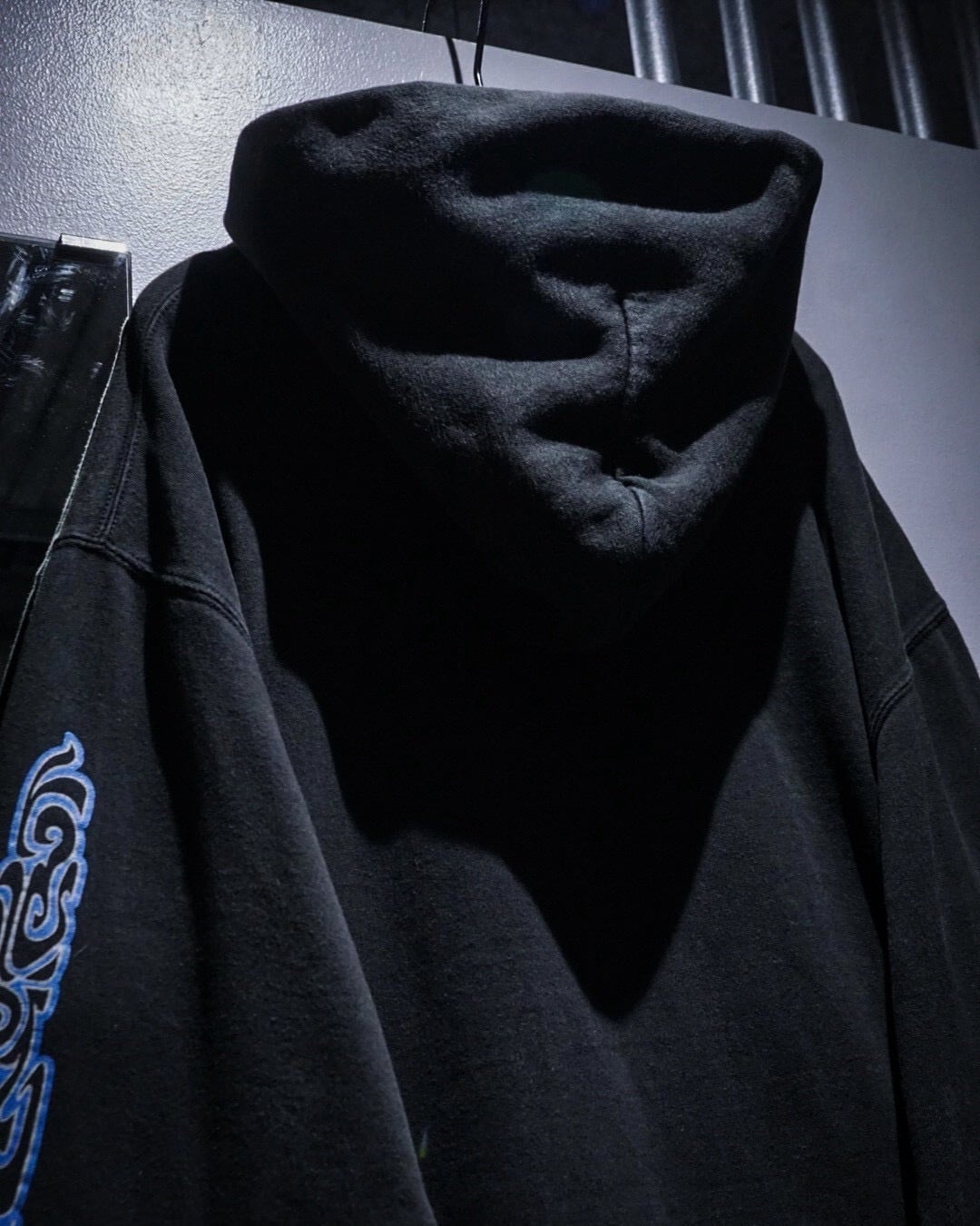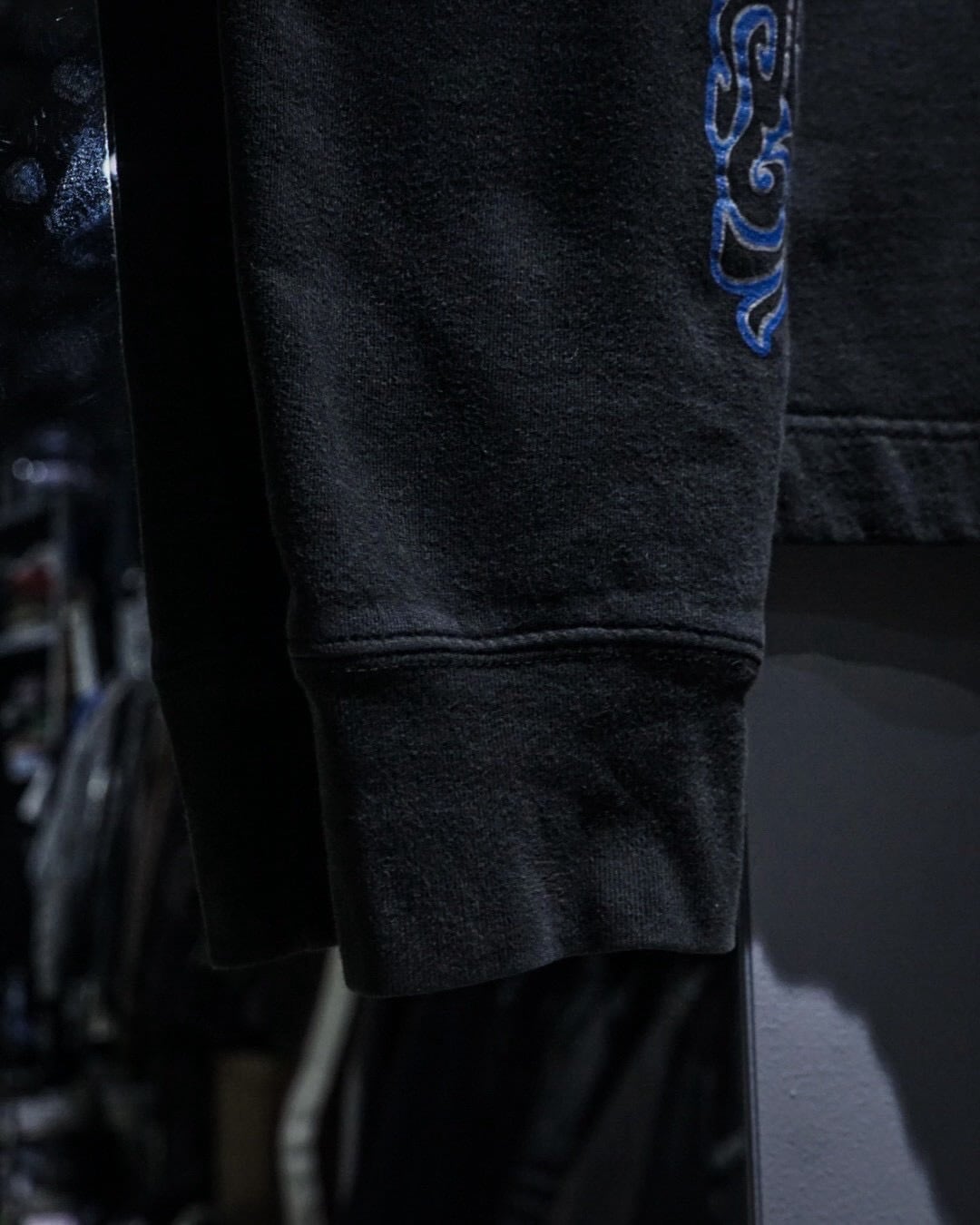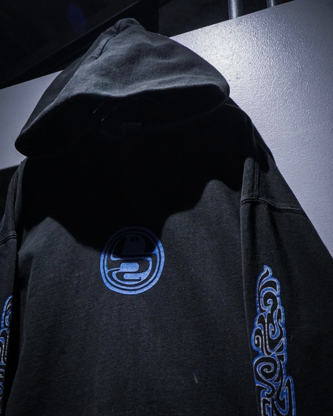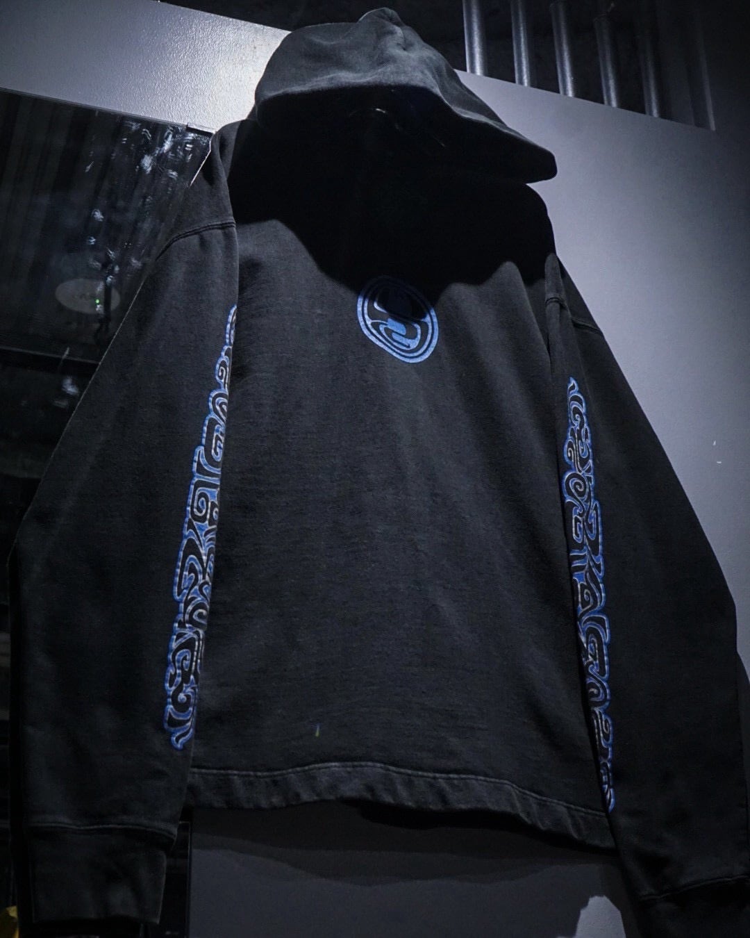 当時のストリートやスケートシーンと強く結びついたシリーズらしく、ブラックボディに鮮やかなブルーのトライバル調グラフィックを落とし込んだ、非常に希少でレイヴ的なカラーリングが印象的ですね。