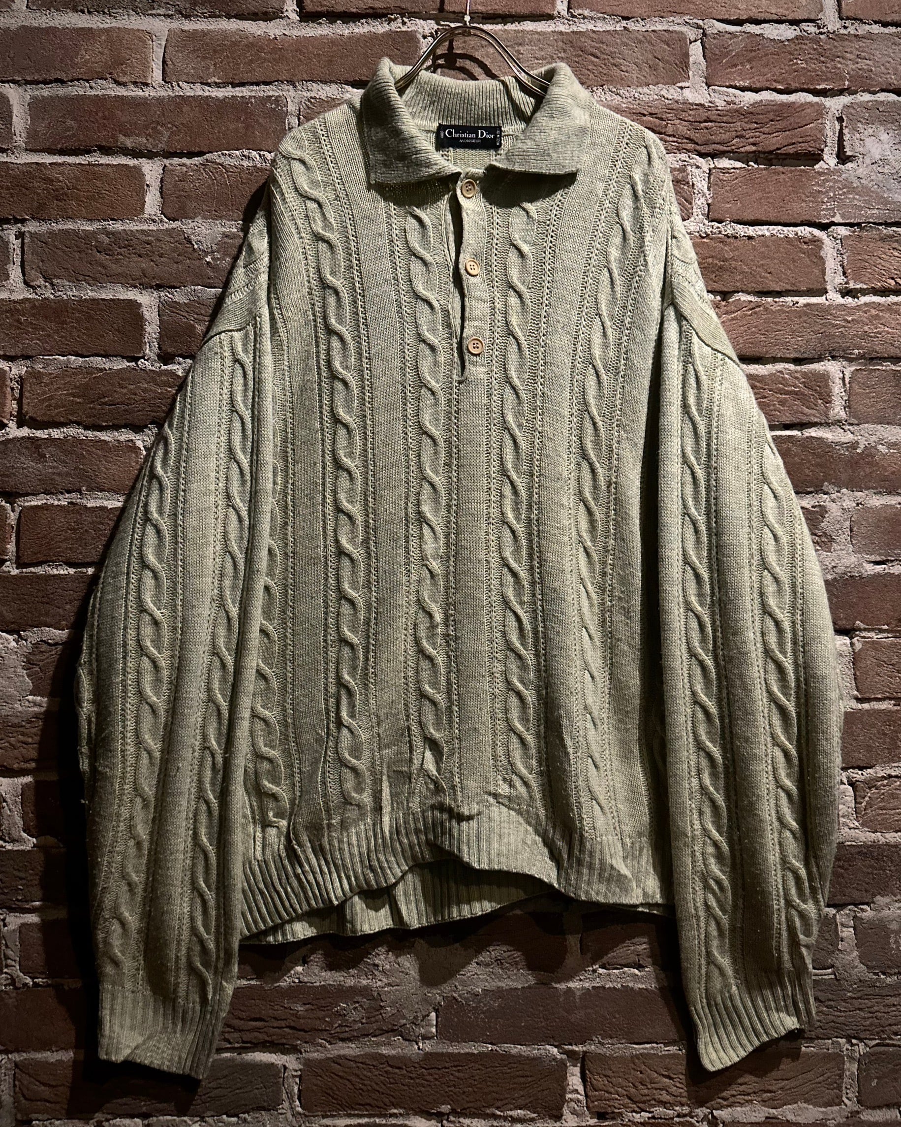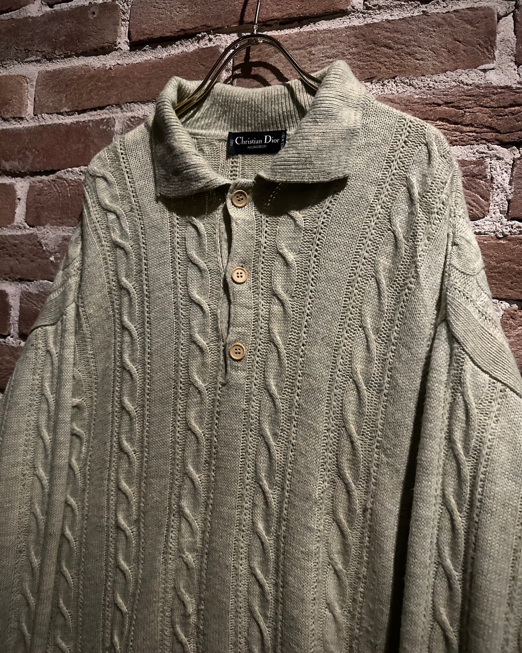 イタリアメイドの“Christian Dior”より、ケーブル編みのニットポロ。