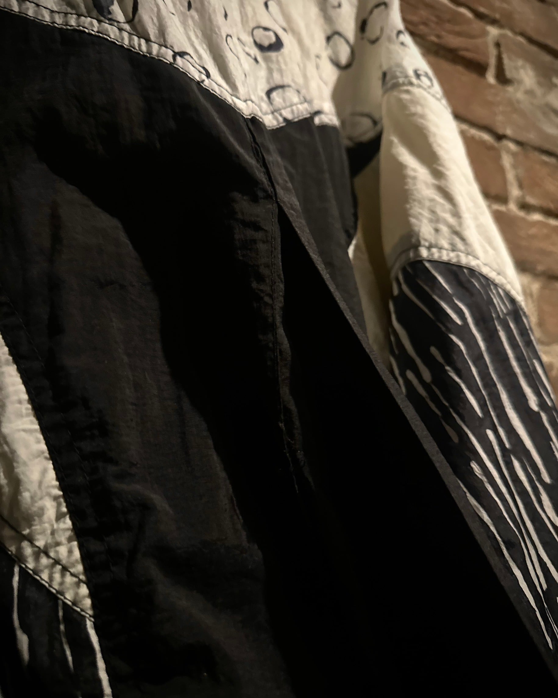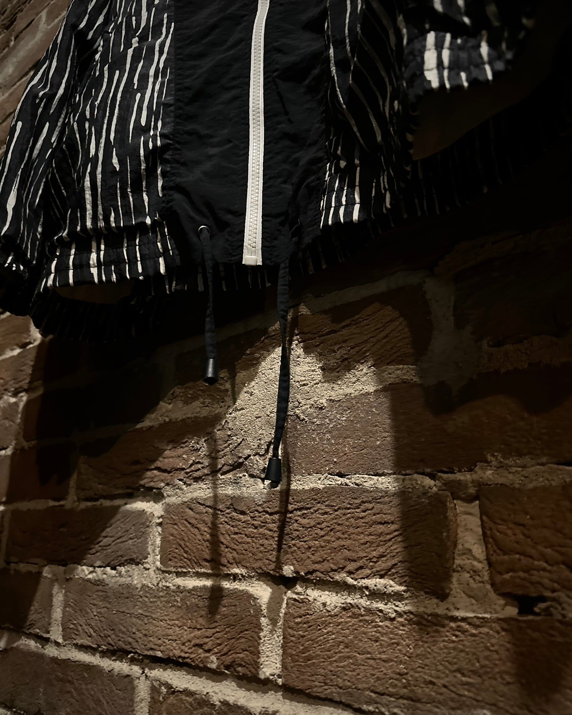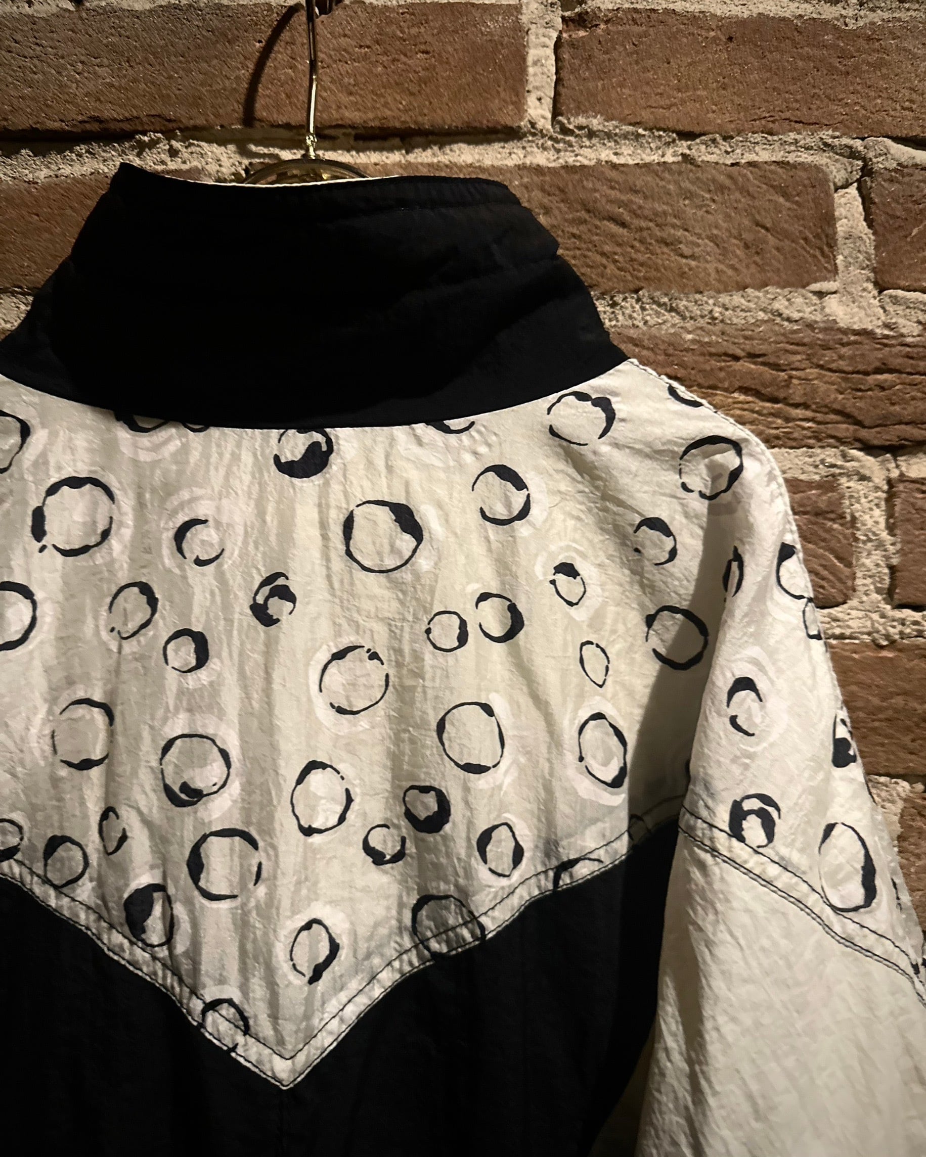 ホワイト×ブラックの配色に、ハンドドローイング調のサークル柄、そして大胆に走るストライプパターン。スポーティでありながらモードな雰囲気を漂わせる、素晴らしいデザインバランスに仕上がっています。トレフォイルロゴ刺繍のアクセントも◎