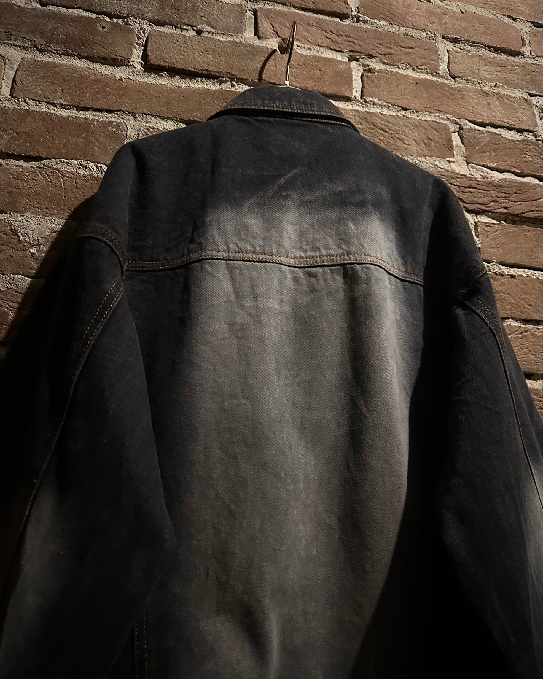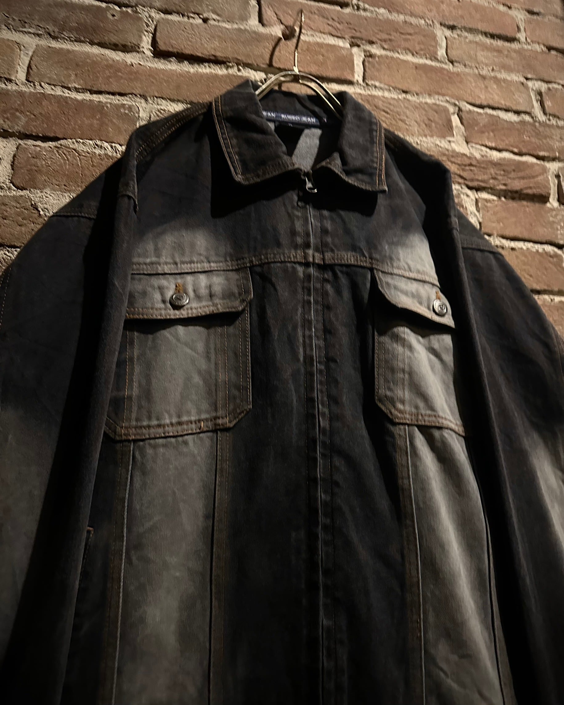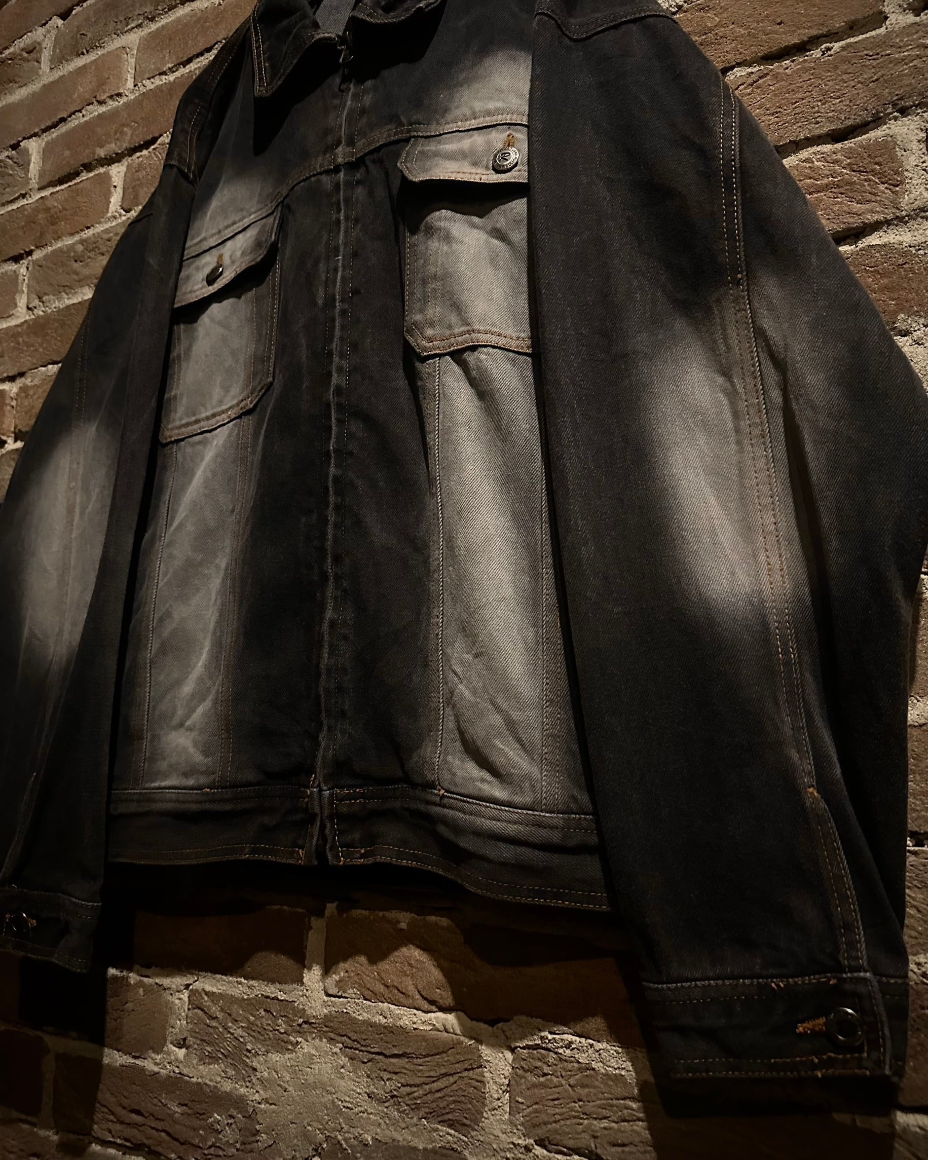 タフなデニムボディに自然なフェード加工を施したジップアップデニムジャケット。
