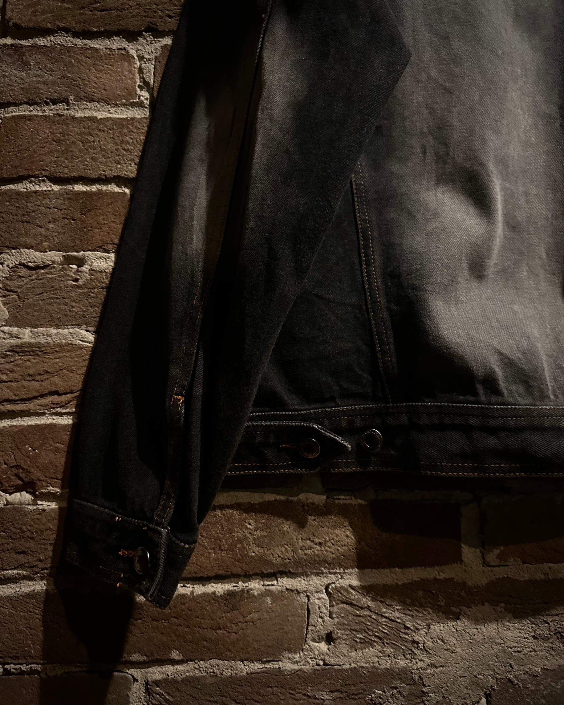 美しくグラデーションがかったフェード加工は陰影の深い表情を描き出し、デニムの立体感をより引き立てています。