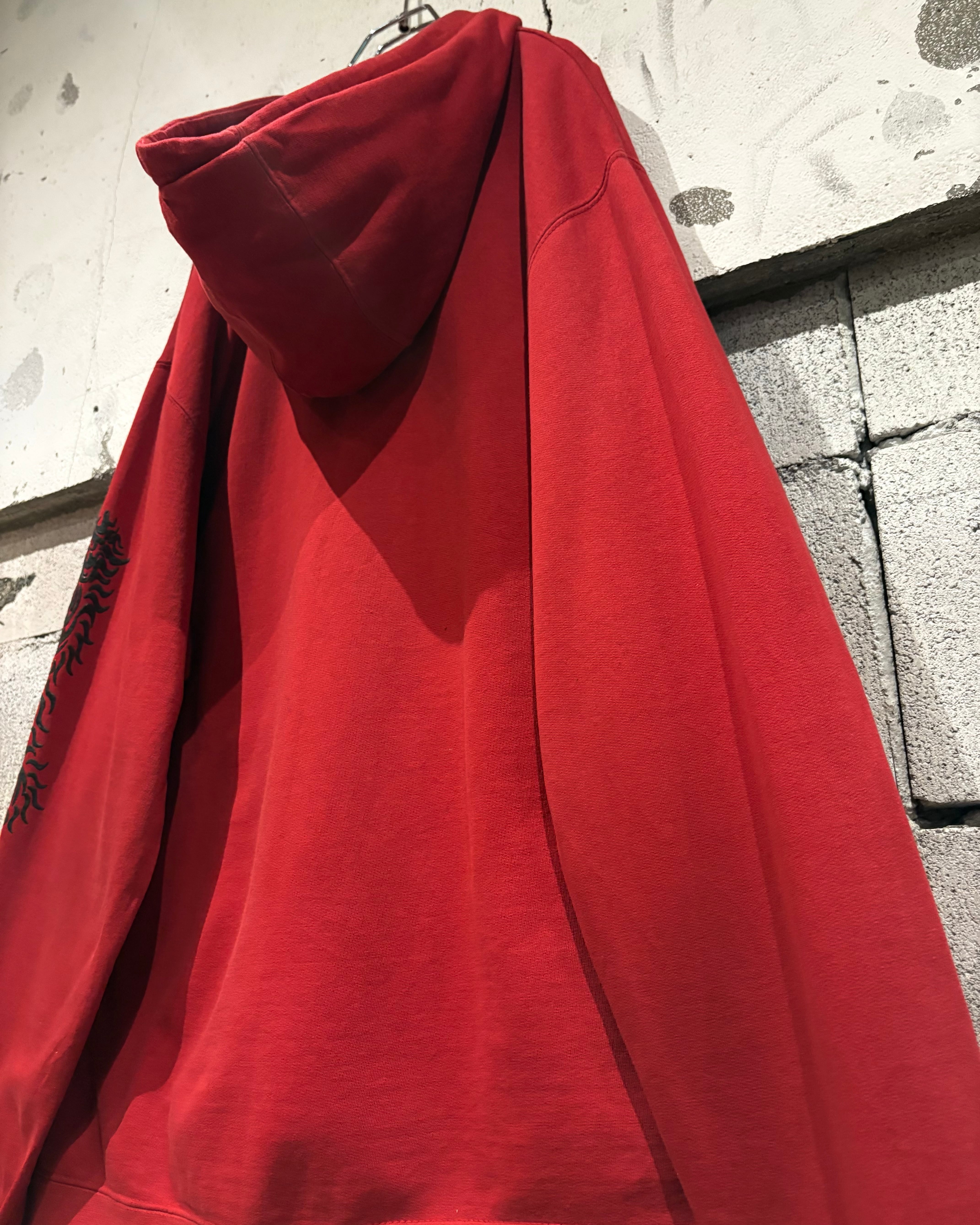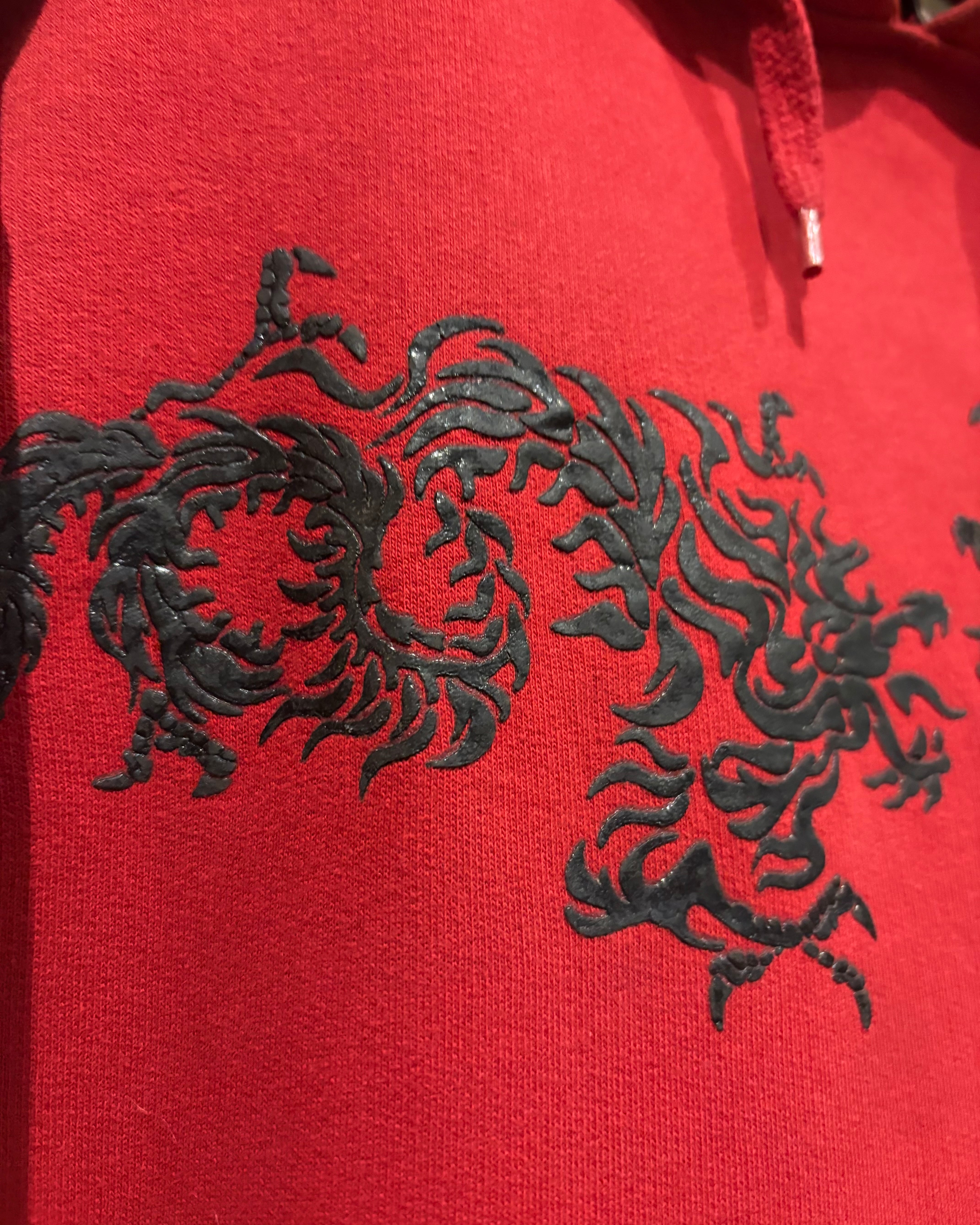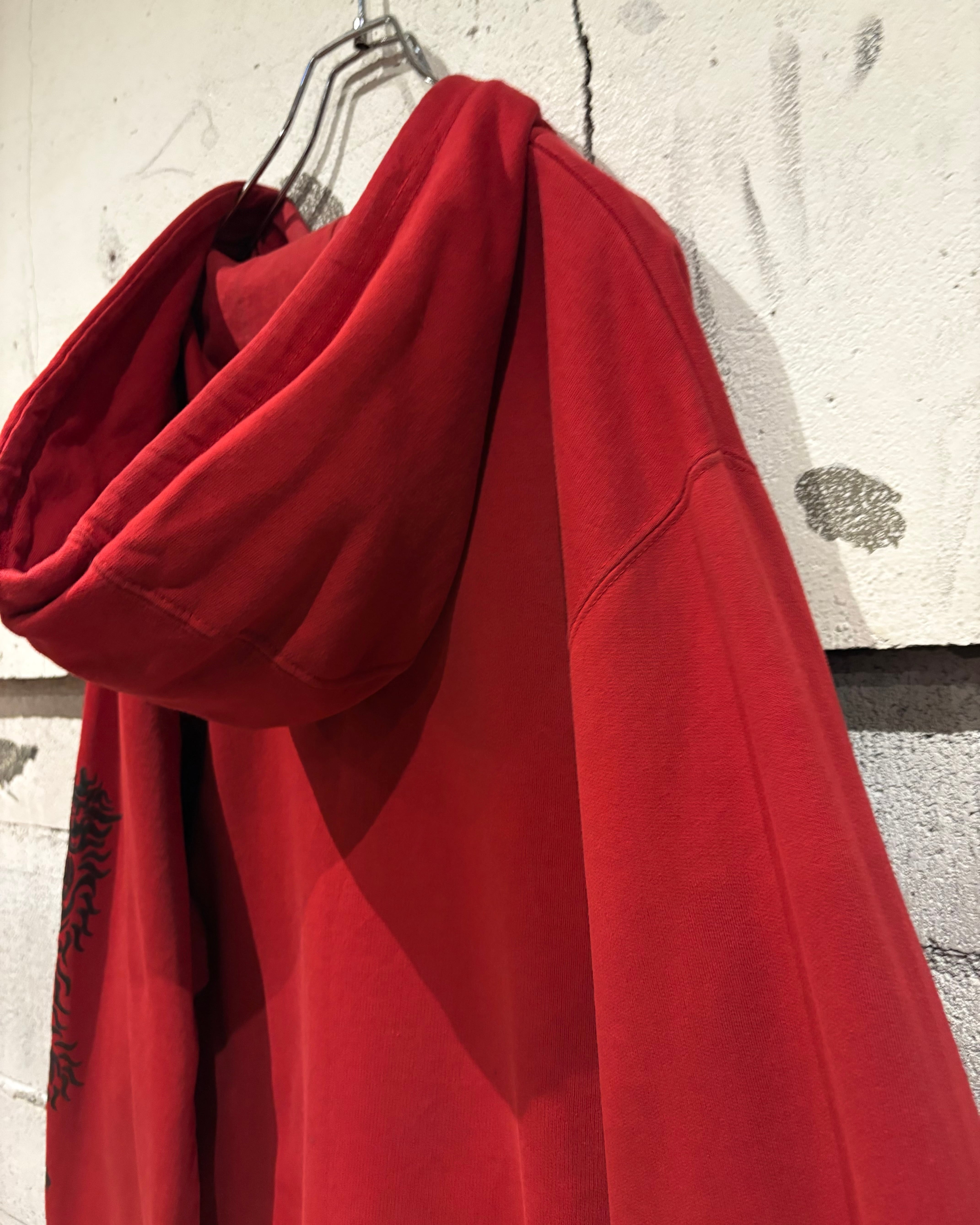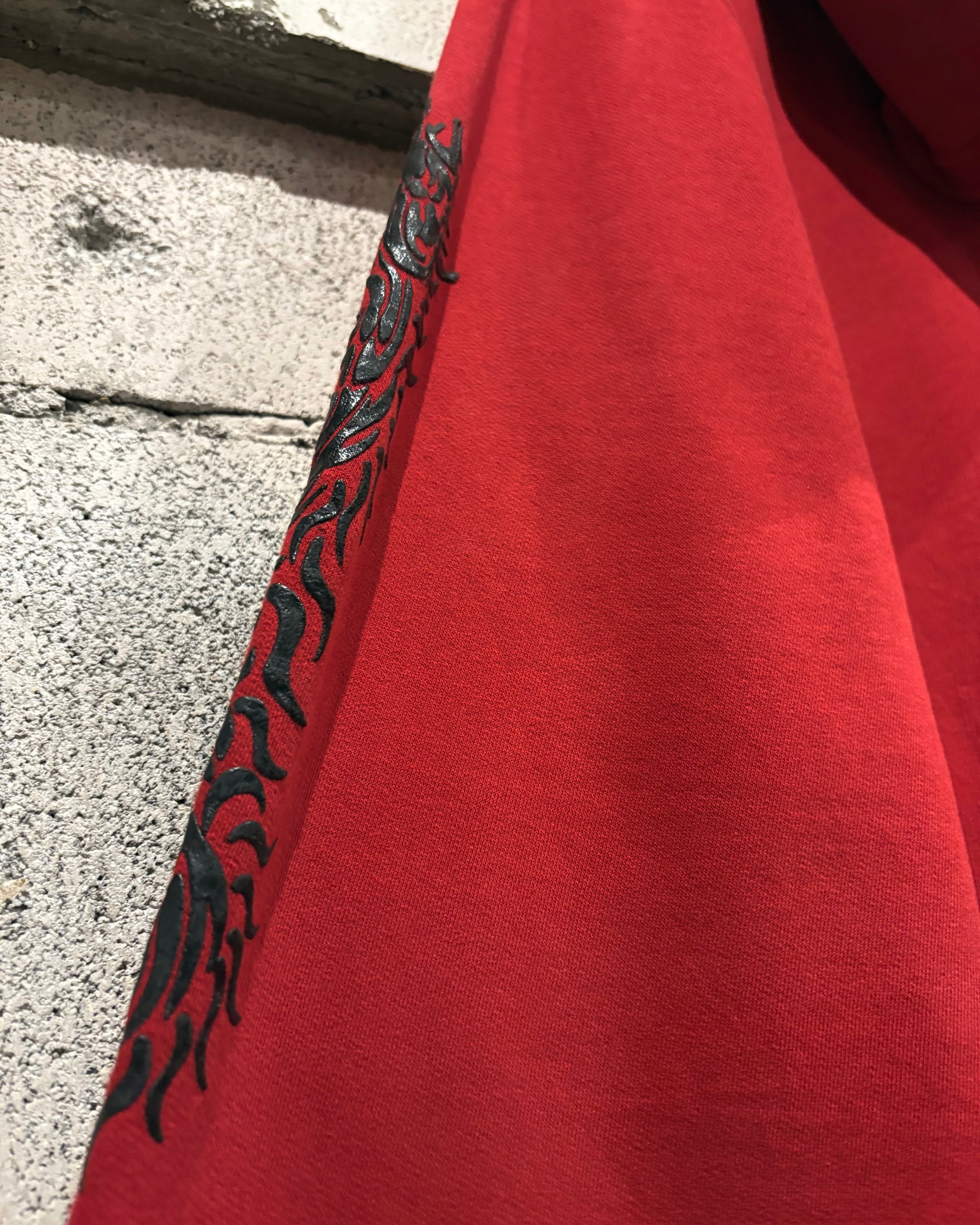 “赤 × 黒 × 龍”という抜群のインパクトを纏ったフーディの逸品です。