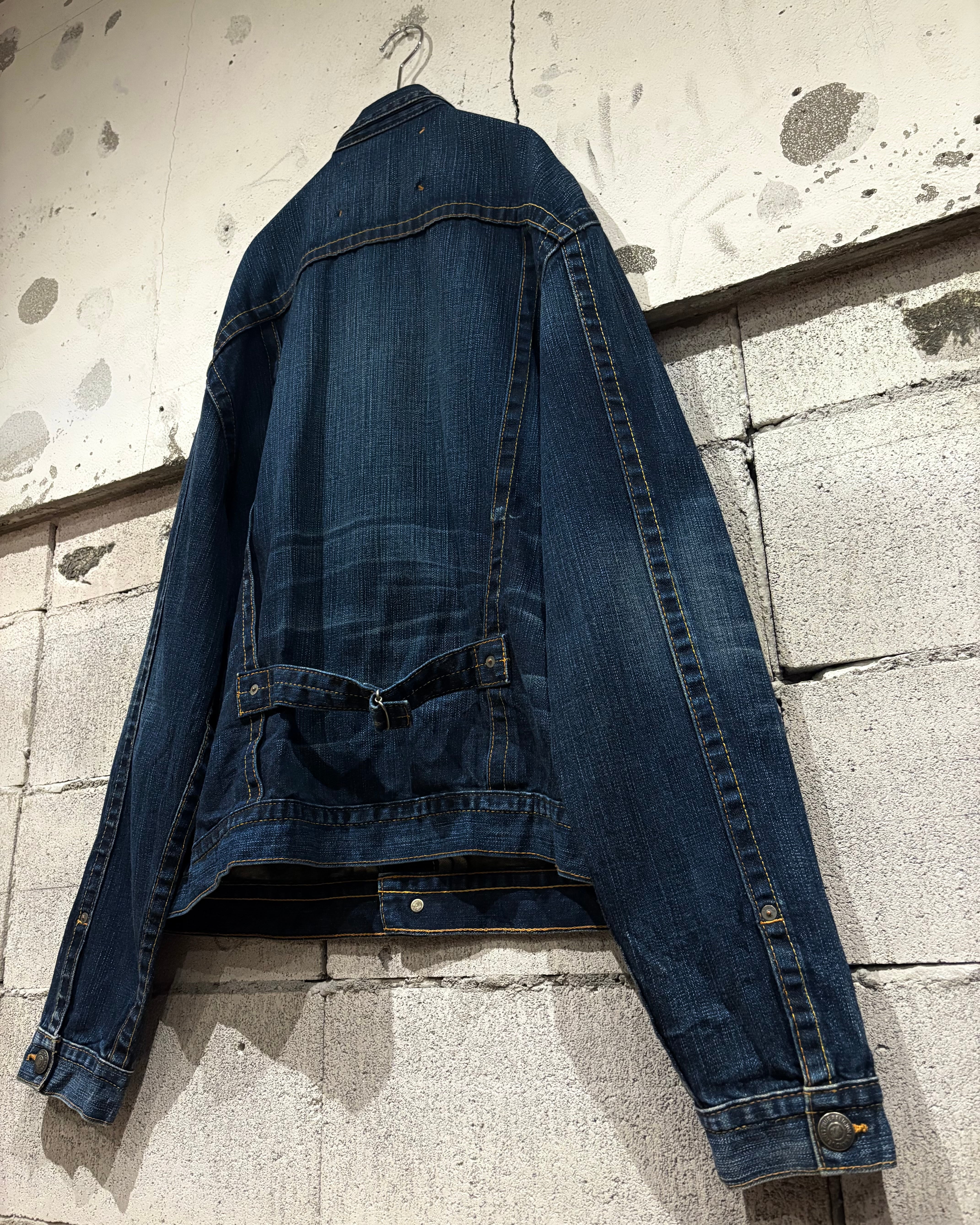 インディゴのボディに、フロントのポケットには馬の蹄鉄モチーフにしたブランドロゴ、刻印入りメタルボタン、ハラコのロゴパッチなど作り込みにはさすがの一言に尽きます。