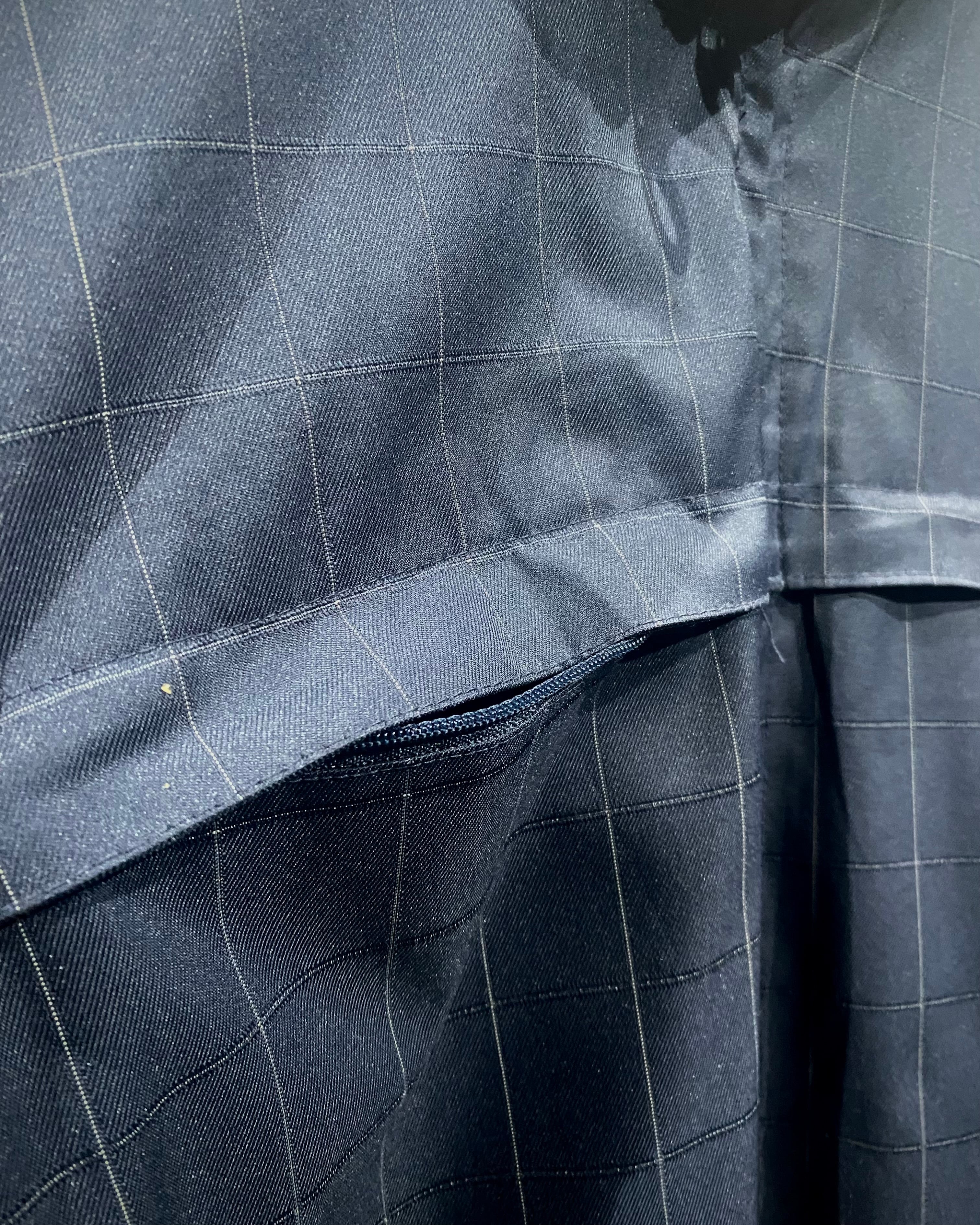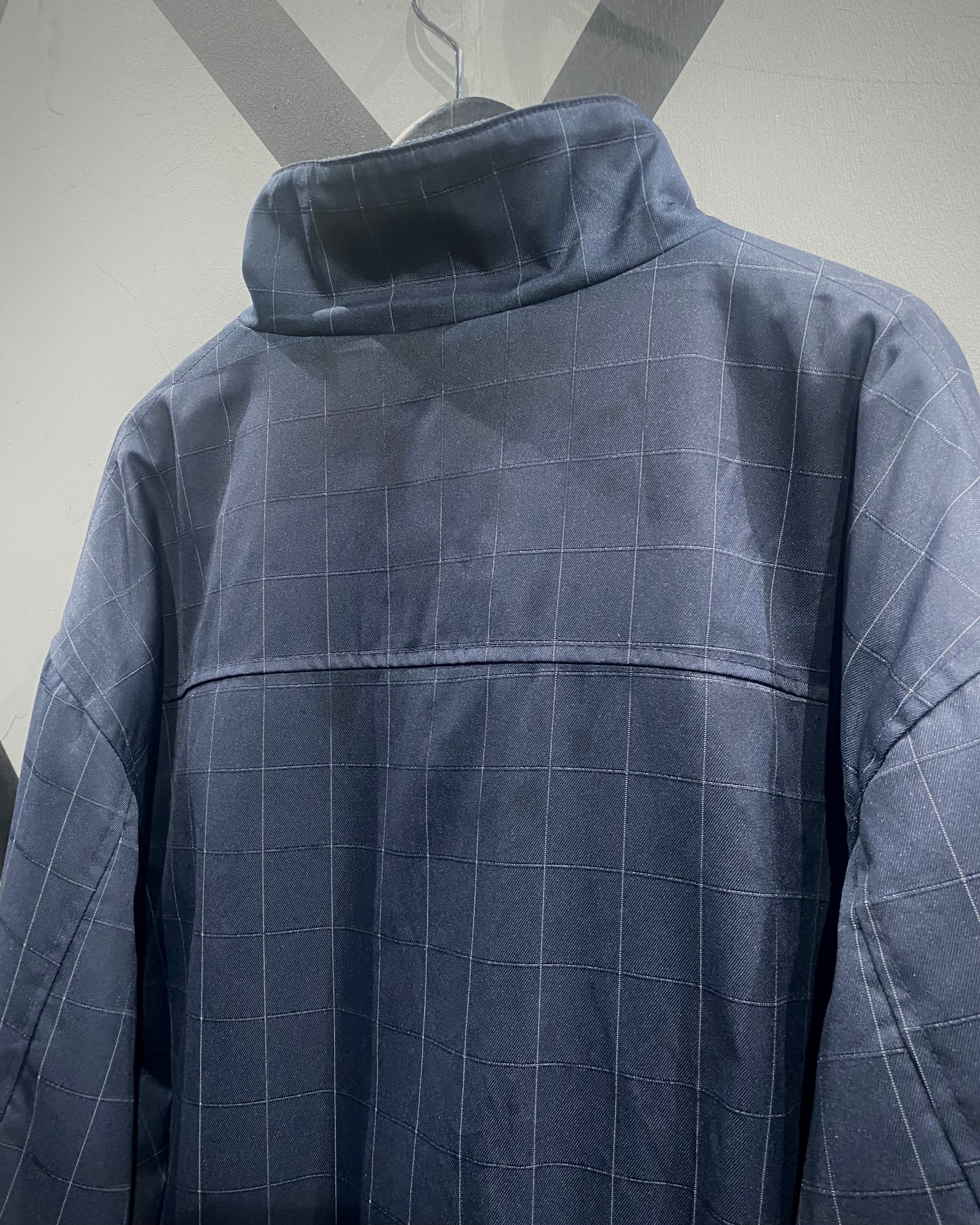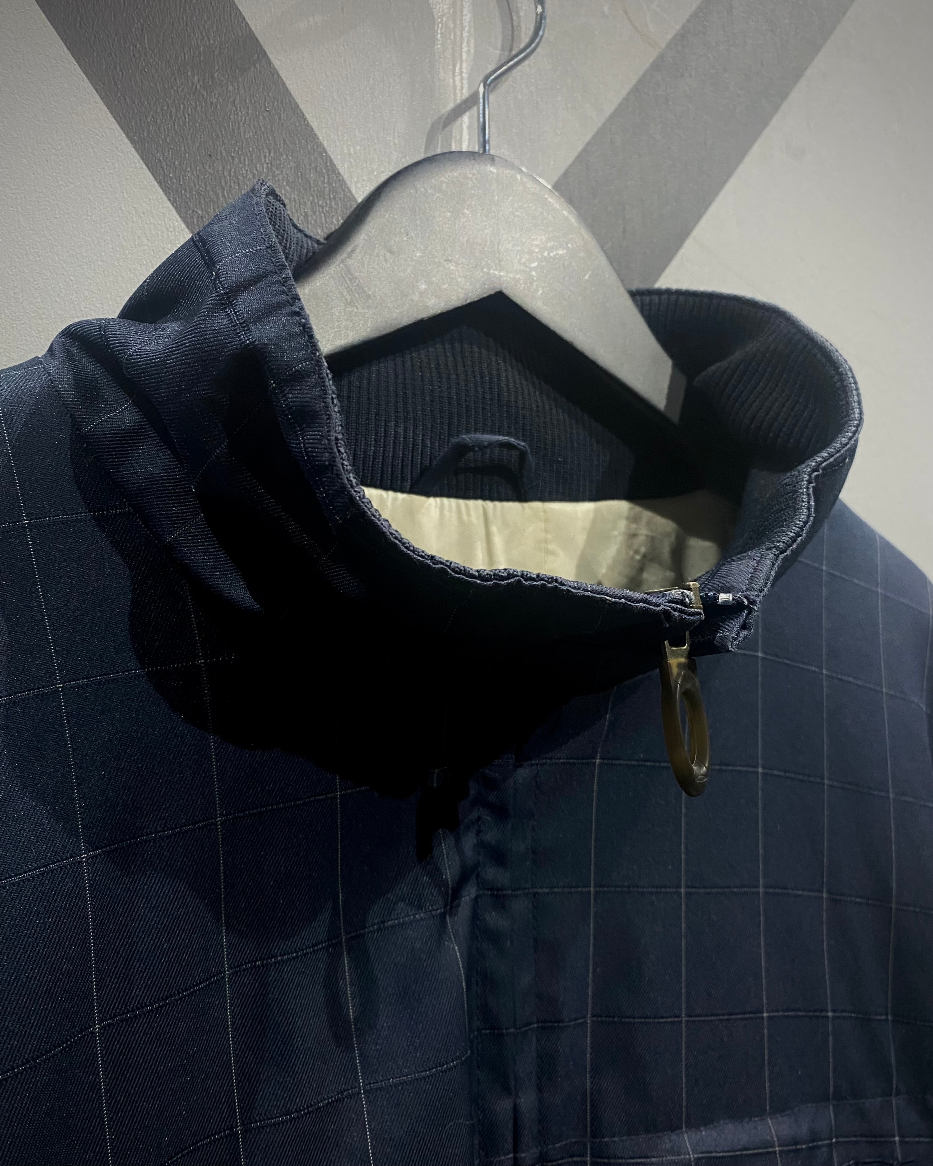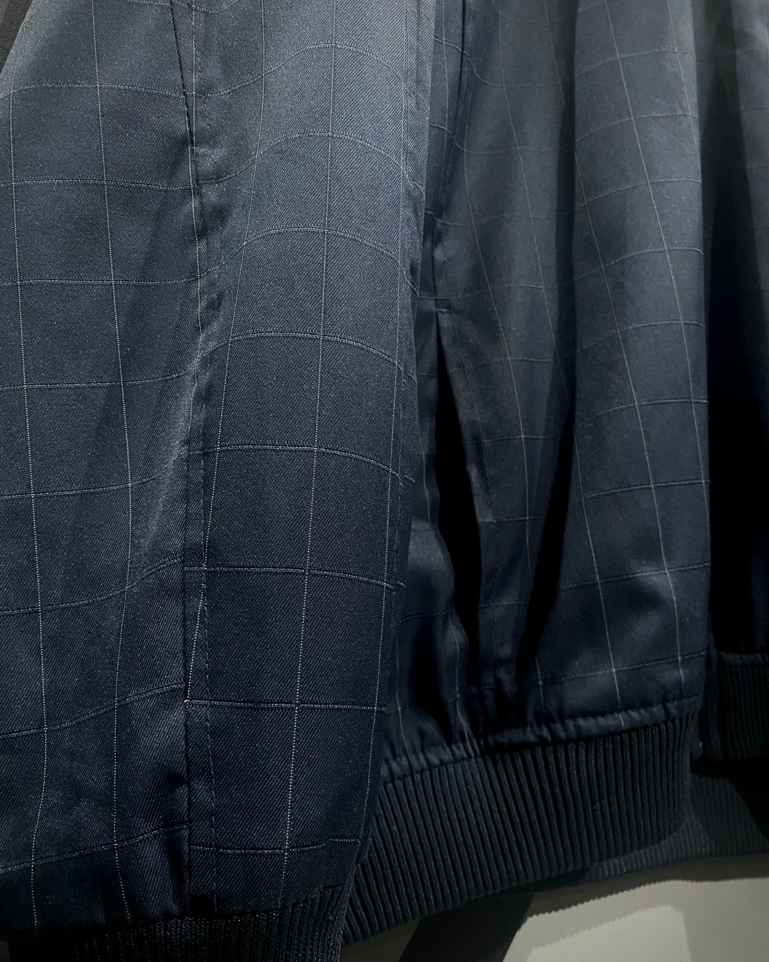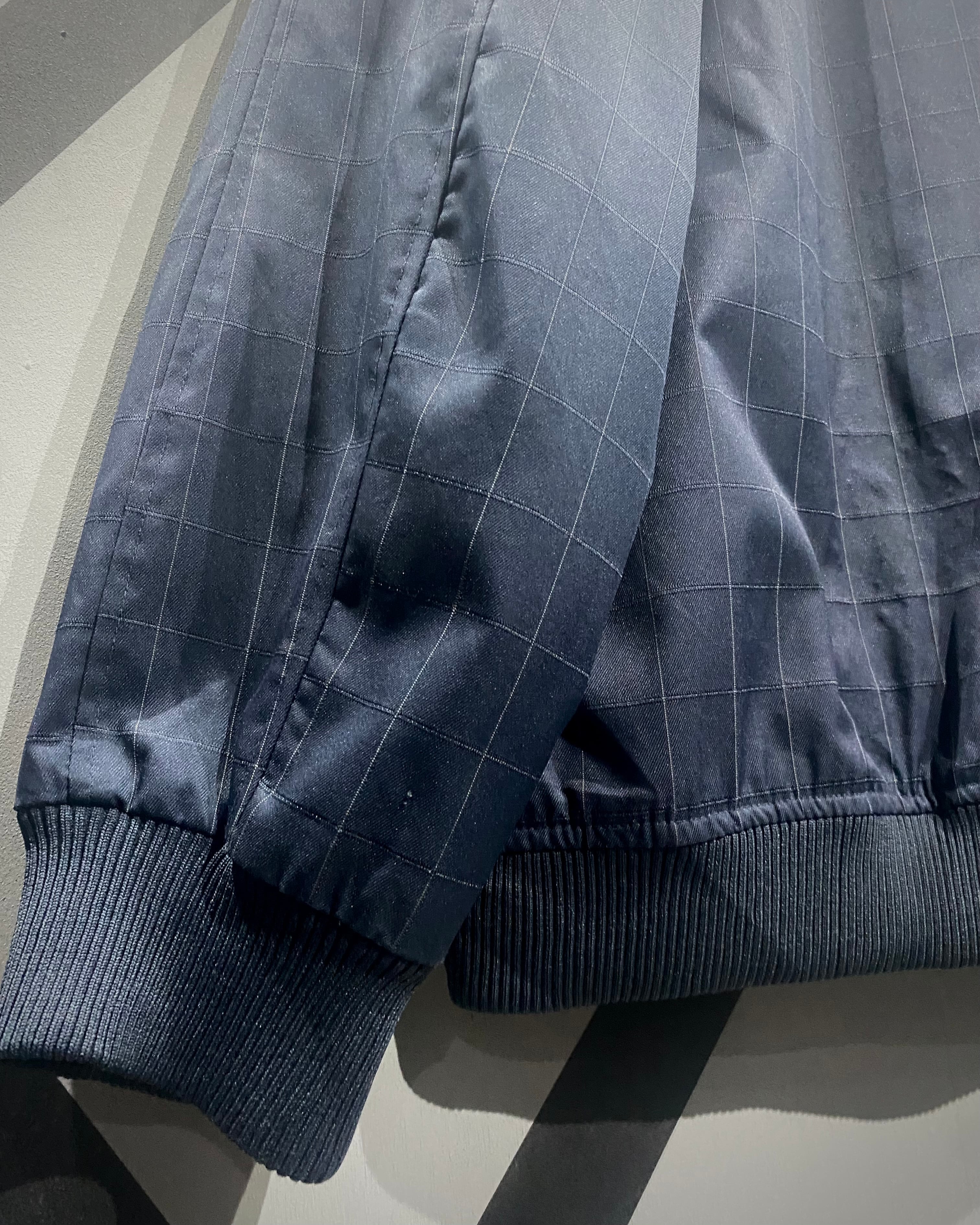 ハリがありながらも柔らかな上質な素材をベースに、細いチェック柄を載せたジップアップジャケット。