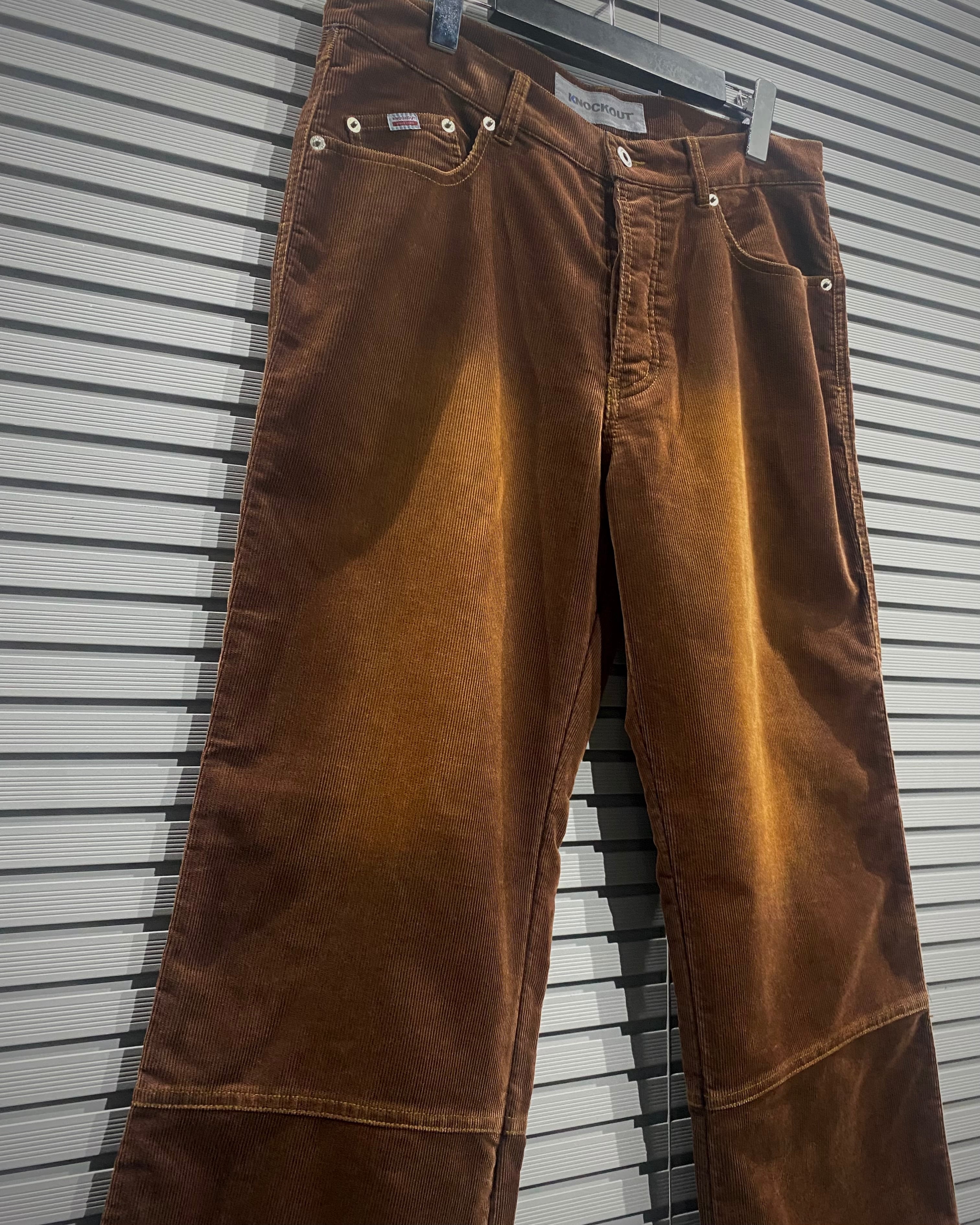 濃淡のメリハリが効いたブラウンコーデュロイは、秋冬のスタイリングを一段深く見せてくれる、バックカルチャー込みで評価の高い"KNOCK OUT"の1着です。