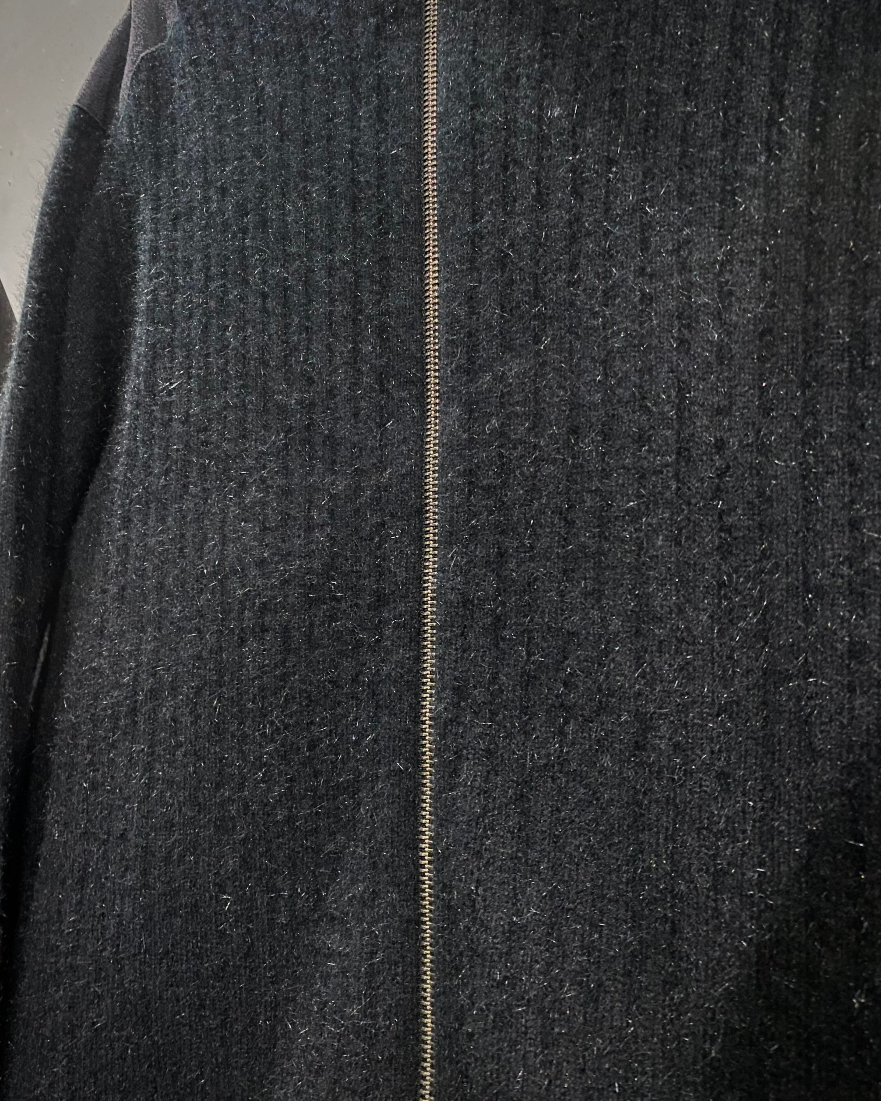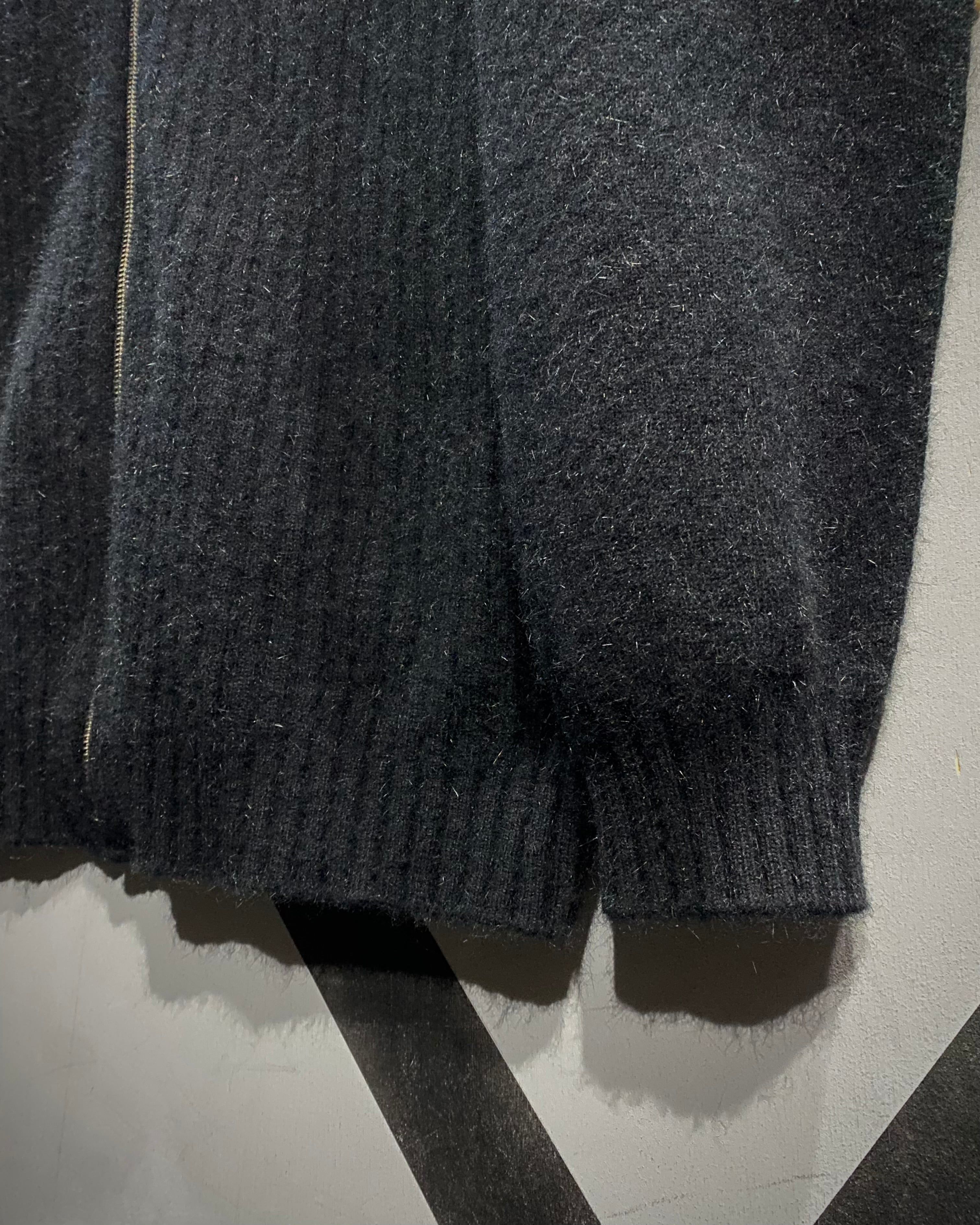 肉厚なメリノウールをベースに、カシミヤより暖かいとされている超高級繊維のポッサムファーをブレンドした、異次元の温かさと軽さを誇るジップニット。